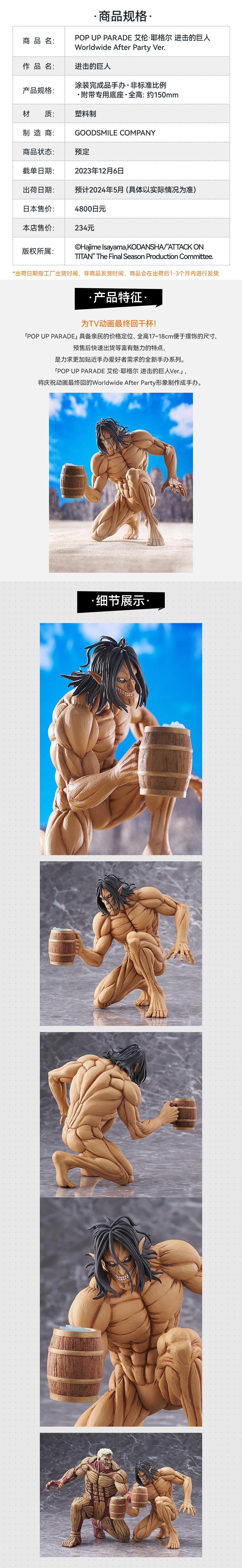 【GSC现货】POP UP PARADE 艾伦·耶格尔 进击的巨人 Worldwide After Party Ver. TV动画完结纪念版