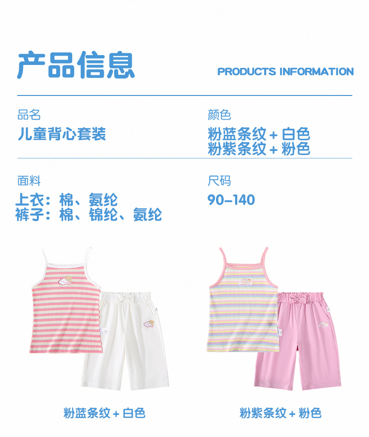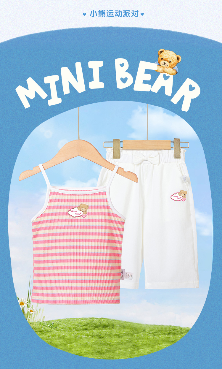 【两件套】【90-140】【精典泰迪】女童夏款吊带短裤清凉套装