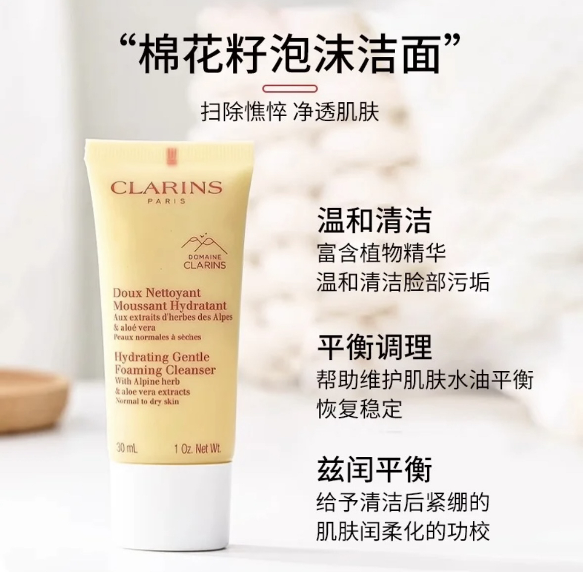 娇韵诗 · 舒柔保湿泡沫洁面乳黄色棉花籽洗面奶 孕妇可用30ml
