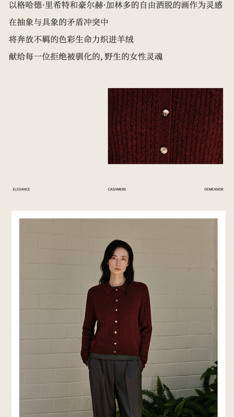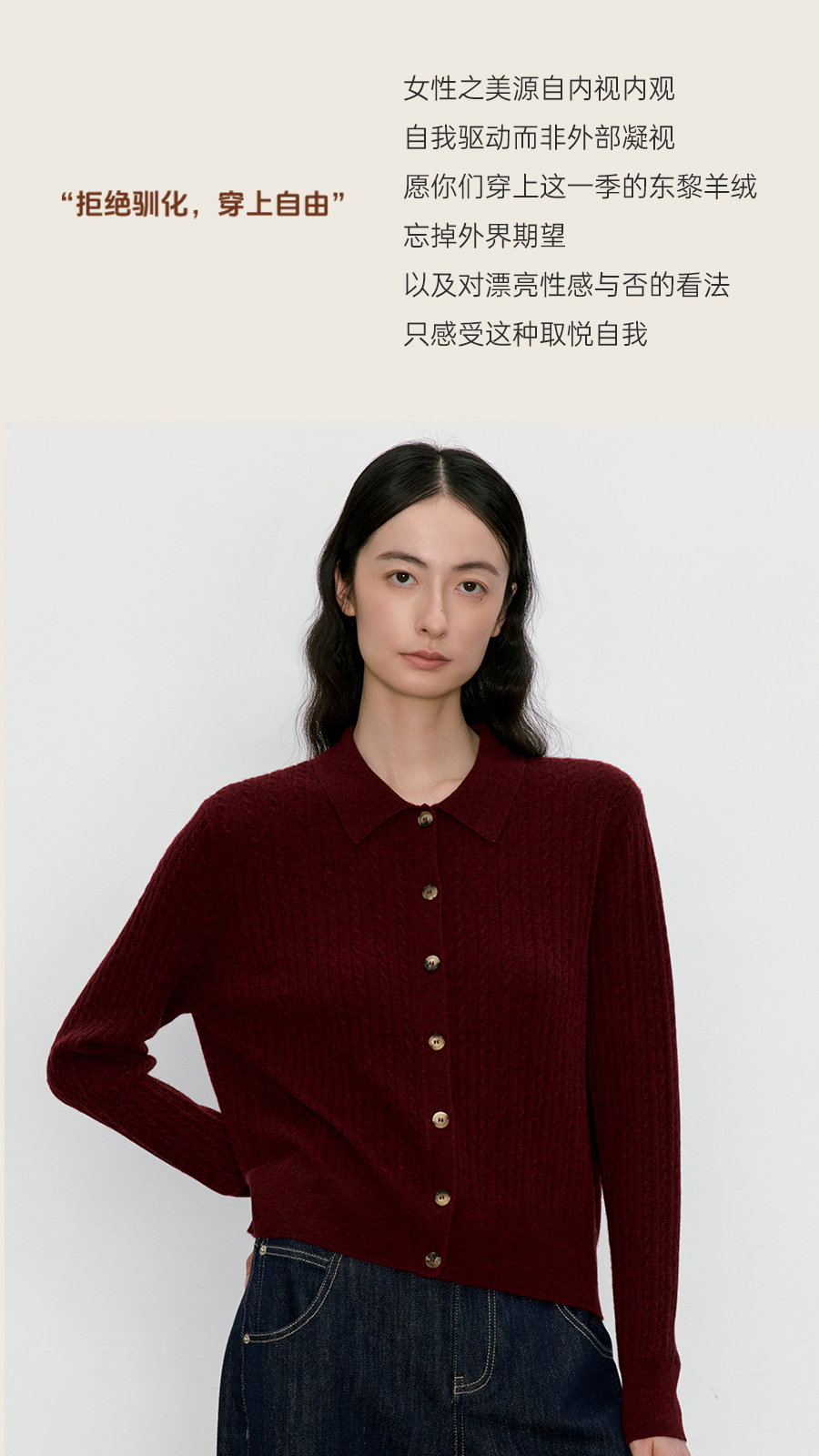 东黎 • 我不被驯化 小山羊绒女士秋季绞花开衫 5165