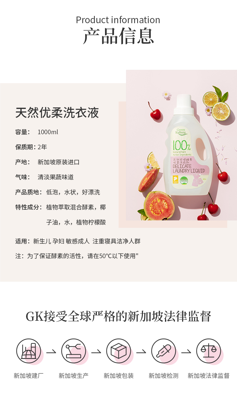 新加坡丨Green Kulture/植物公式 天然优柔洗衣剂1000ML