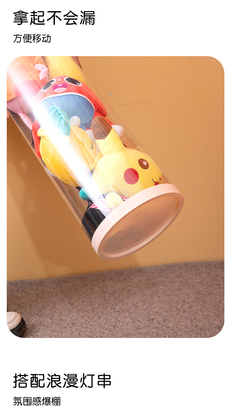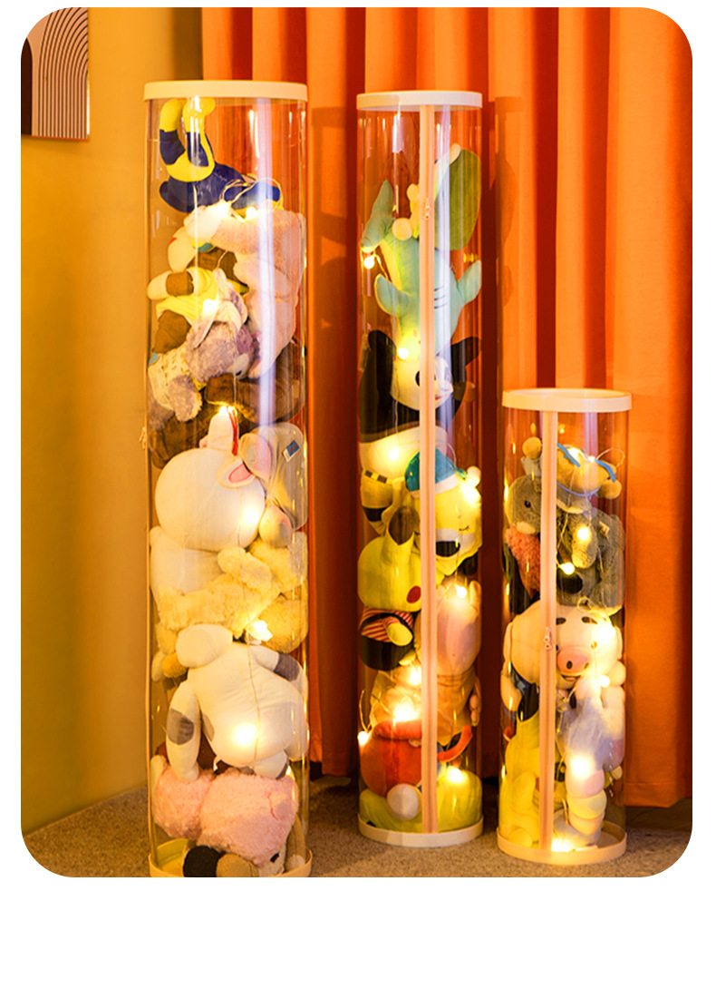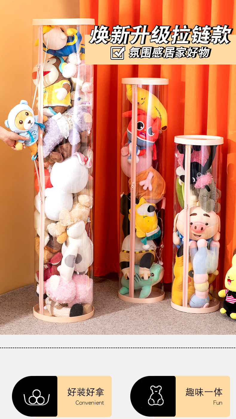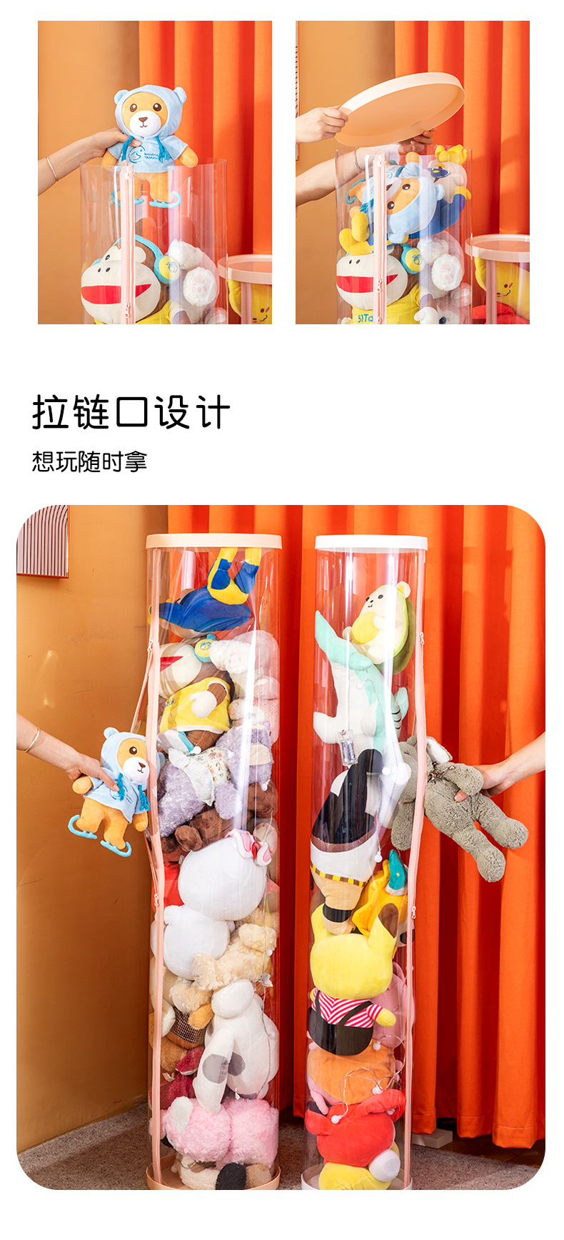 【玩具】拉链款娃娃收纳框 娃娃收纳桶 透明圆柱筐装玩偶桶