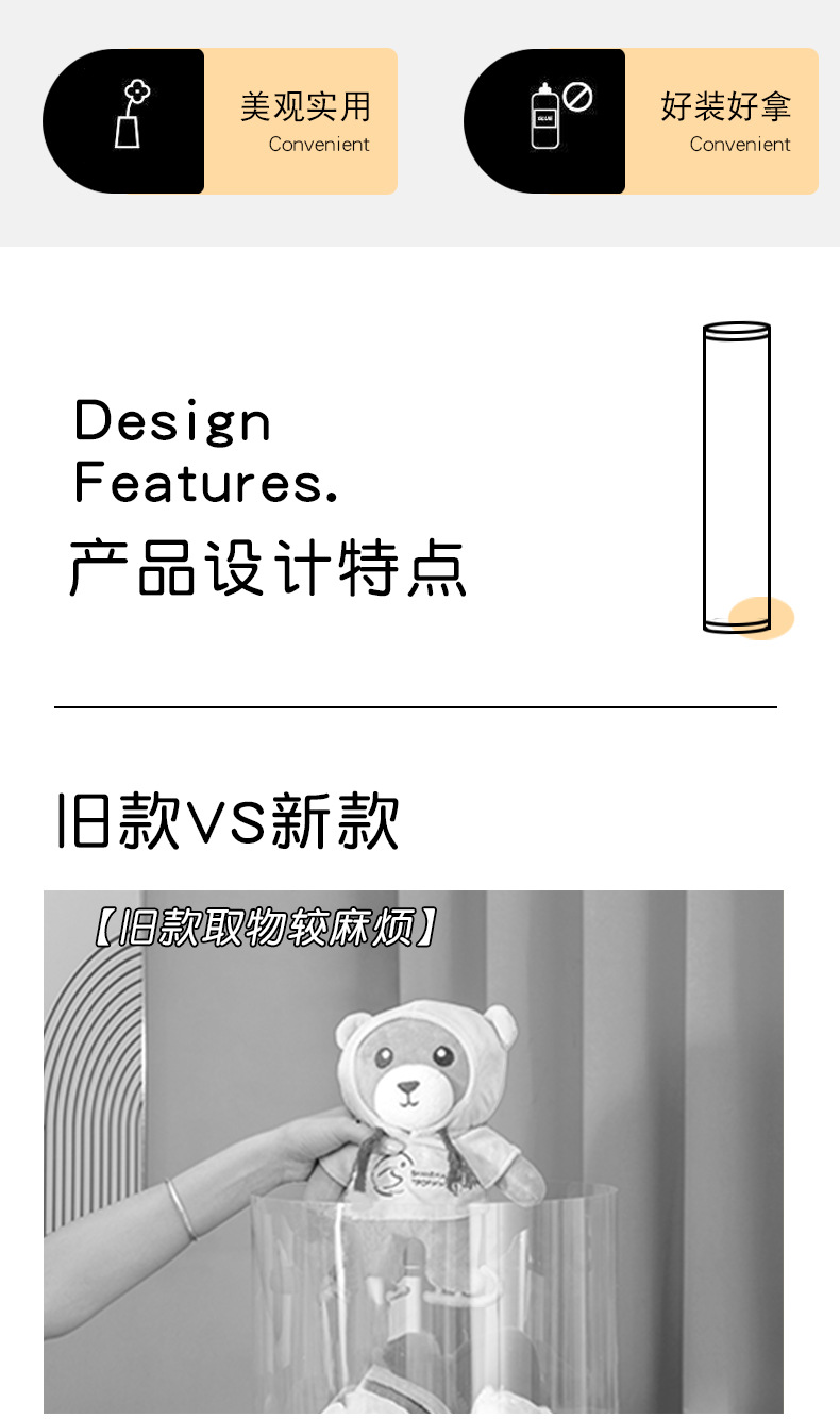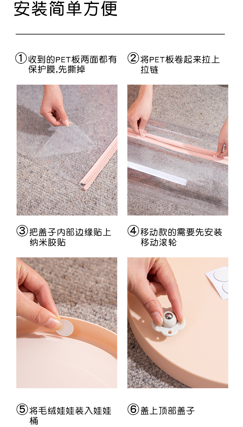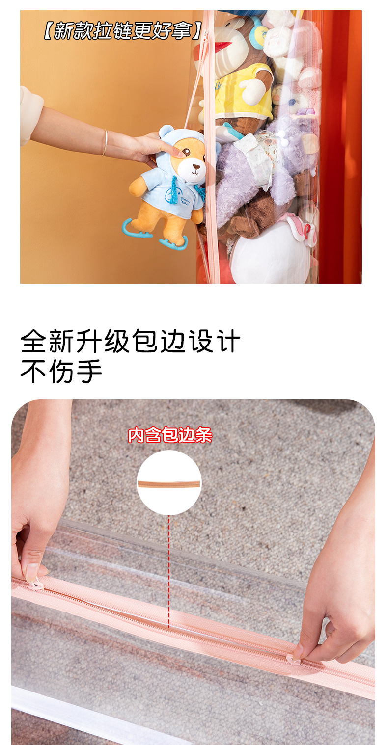 【玩具】拉链款娃娃收纳框 娃娃收纳桶 透明圆柱筐装玩偶桶