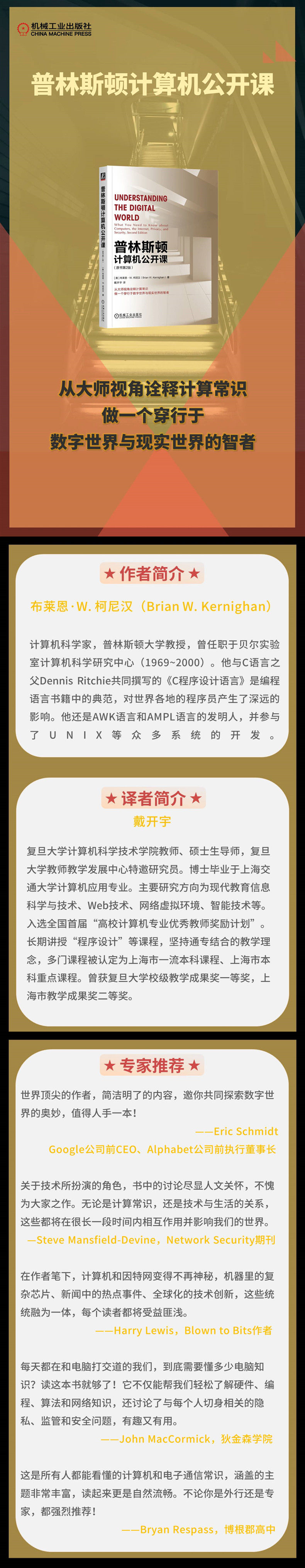 从1999年开始,作者在普林斯顿大学开设了一门名为“我们世界中的计算机”的课程(COS 109:Computers in Our World),这门课向非计算机专业的学生介绍计算机的基本常识,多年来大受学生追捧。本书就是基于这门课程的讲义编写而成的,书中不仅解释了计算机和通信系统的工作原理,还分析了新技术带来的隐私和安全问题。第2版的新增章节讨论了Python编程、人工智能、机器学习以及大数据等内容。本书适合所有希望了解数字世界的读者阅读,通过了解技术的工作原理、起源和未来发展趋势,更好地理解并改变我们身处的世界。