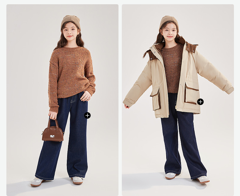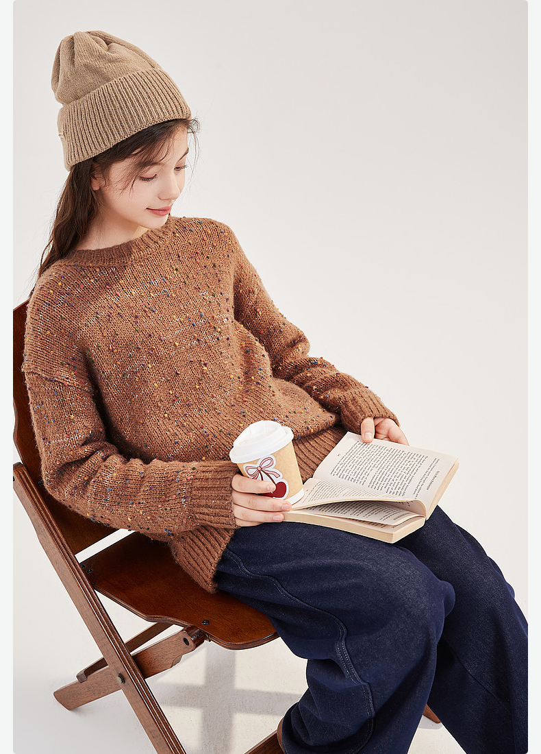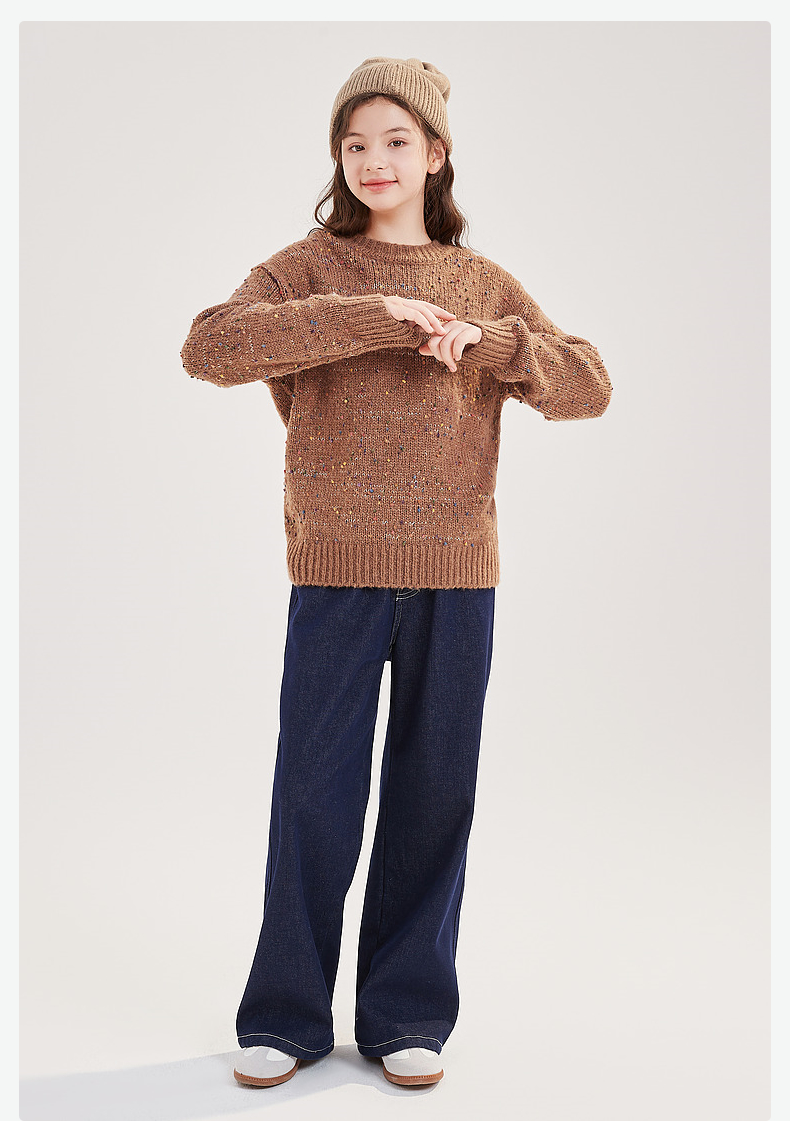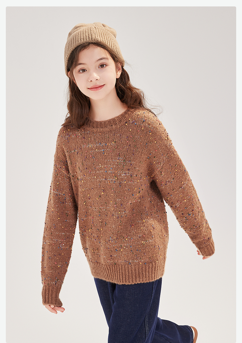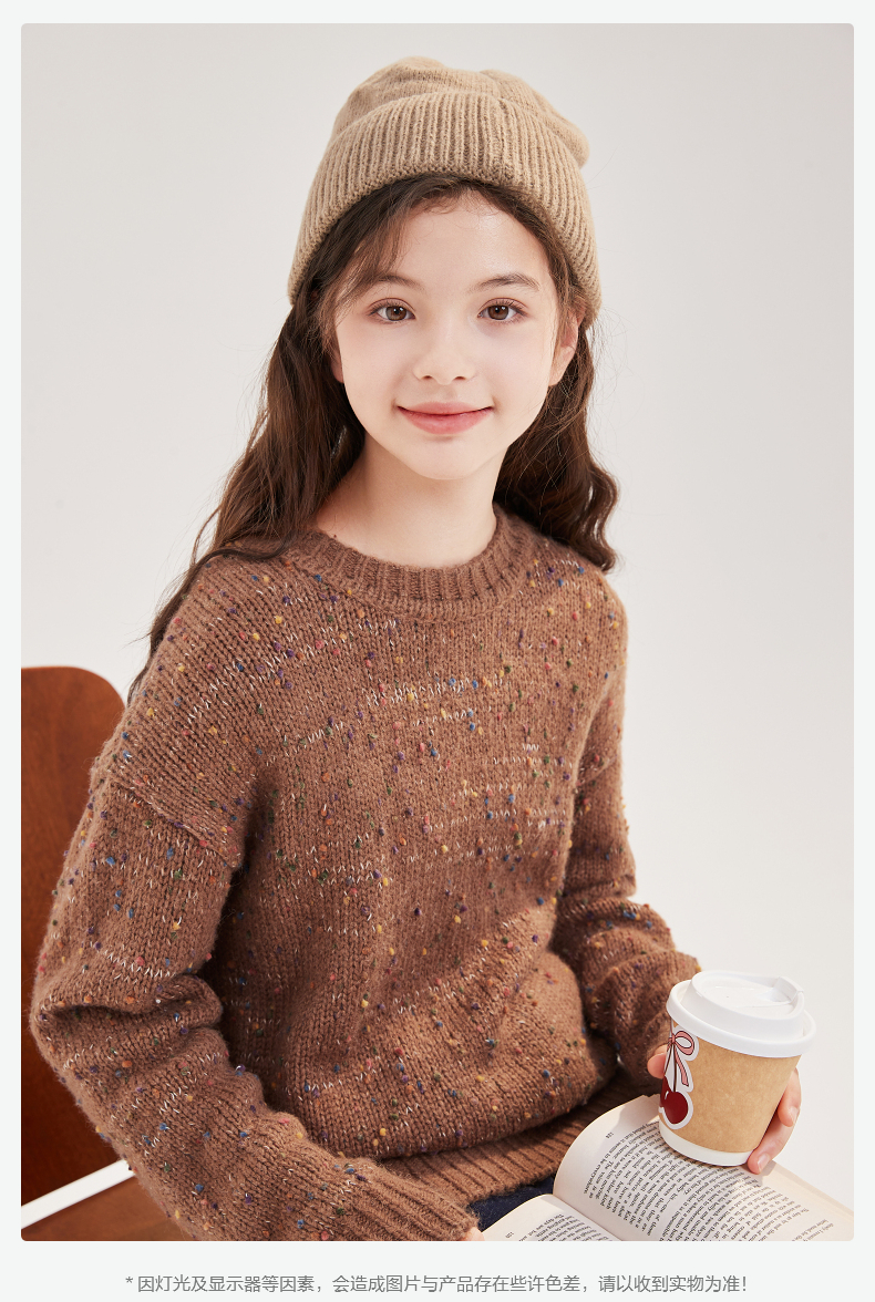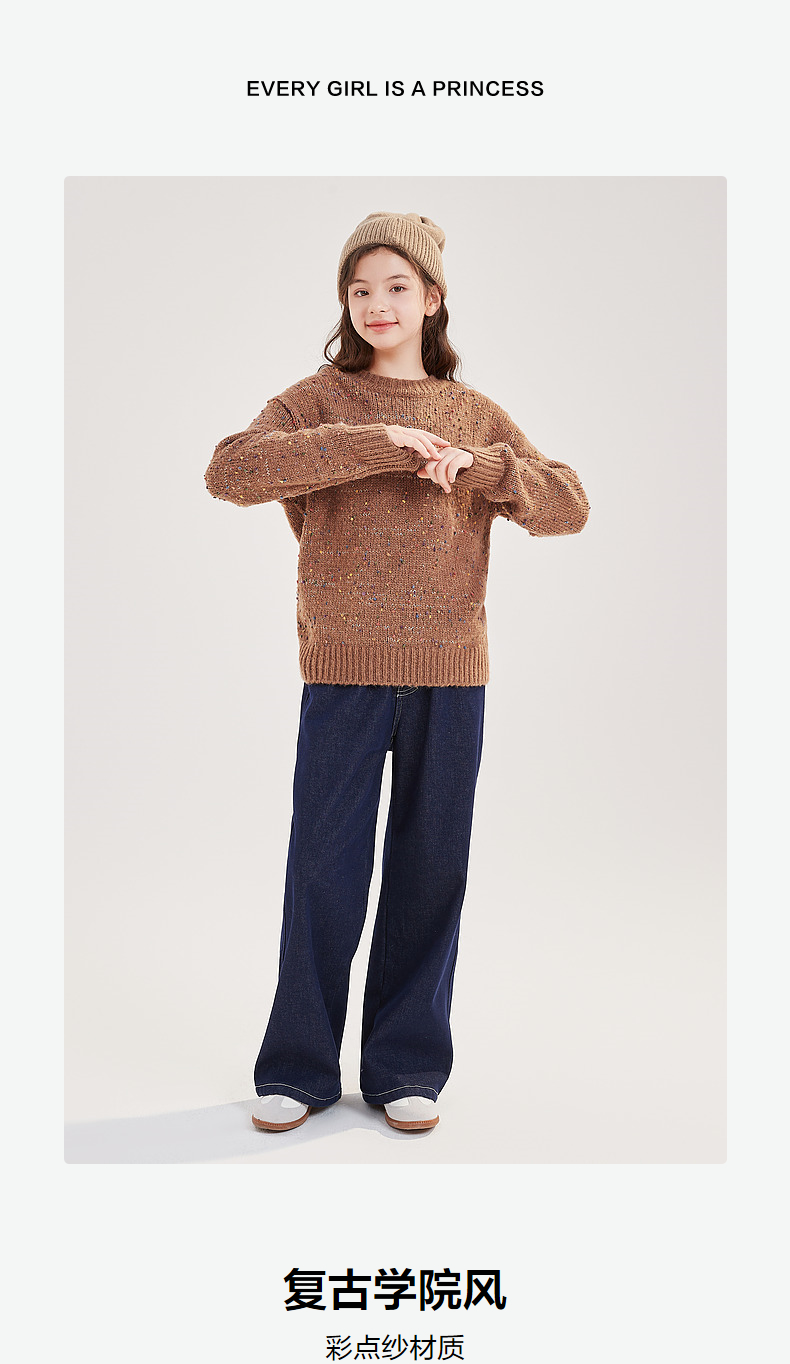 笛莎Deesha青少年女童毛衣2024冬季新款复古学院风圆领毛衣