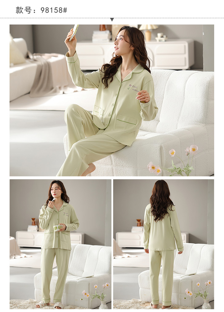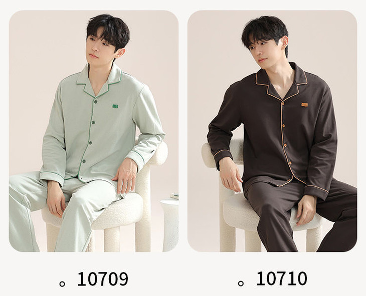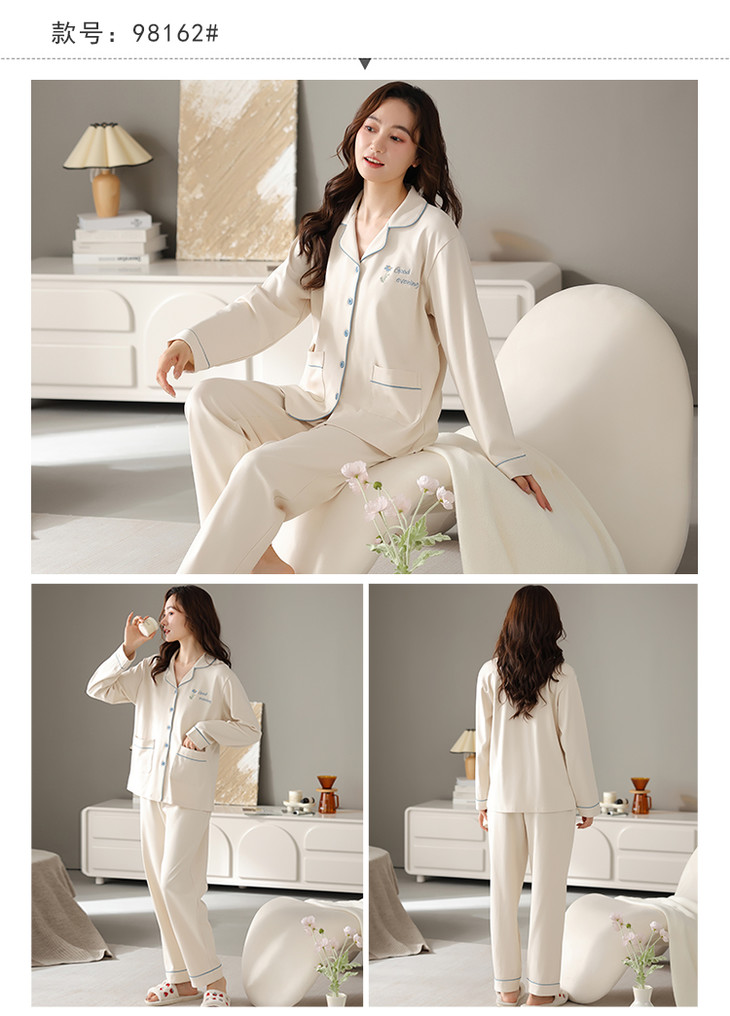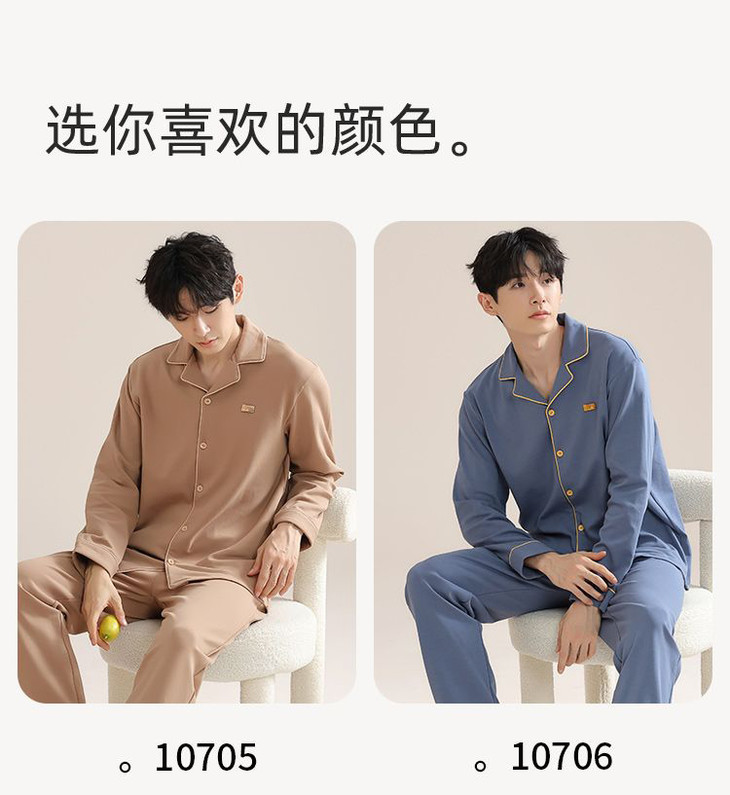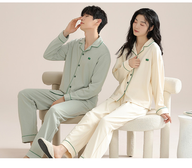 全棉长袖开衫家居服套装 改善睡前肌肤紧绷感 情侣款男女款睡衣