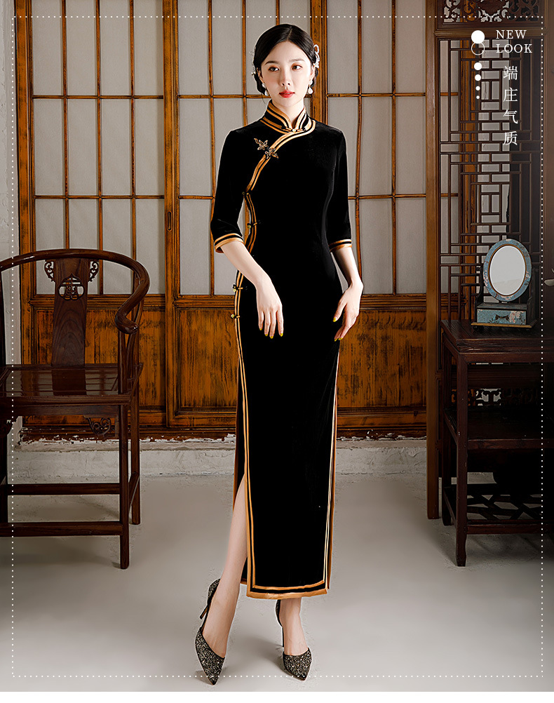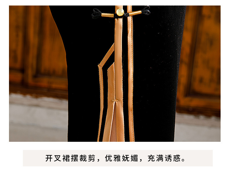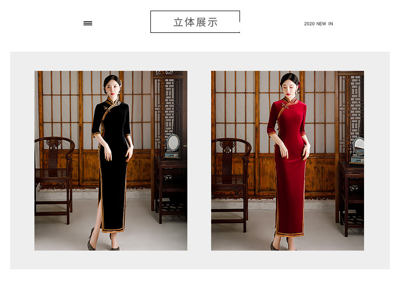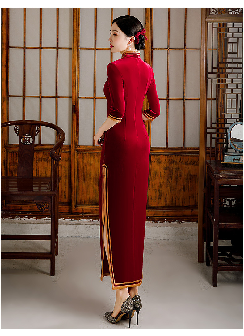 金丝绒旗袍复古改良款连衣裙红色长裙礼服GSJ372