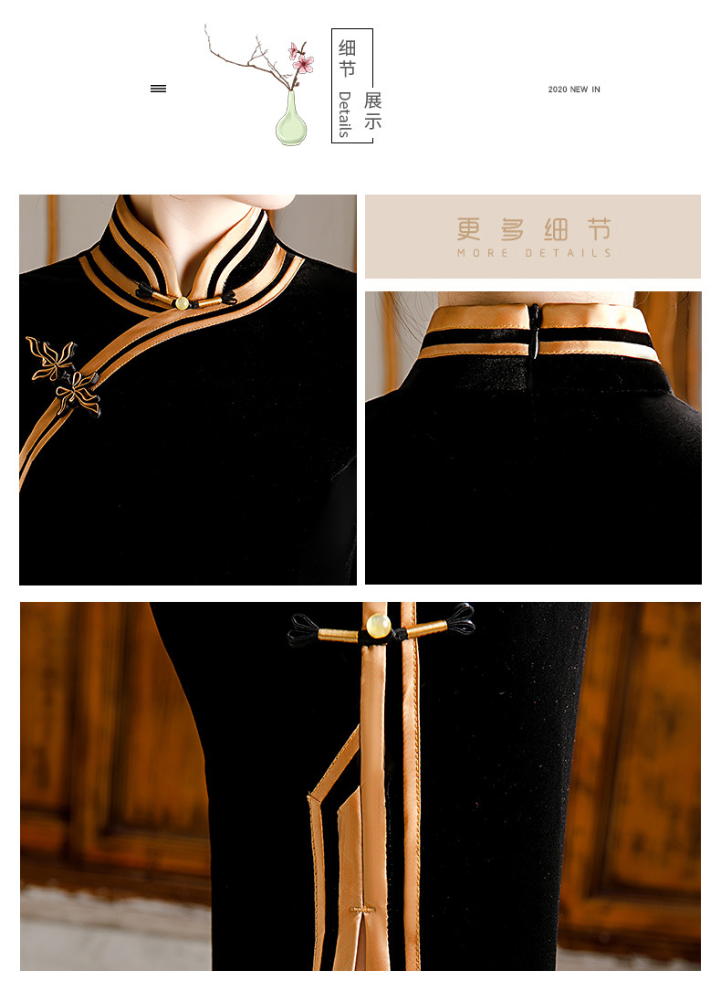 秋冬新款,气质仿水貂复合超柔中长款女士清新年轻款改良旗袍MLS-6826
