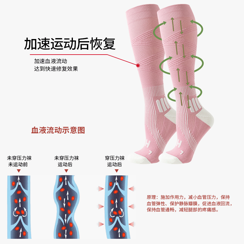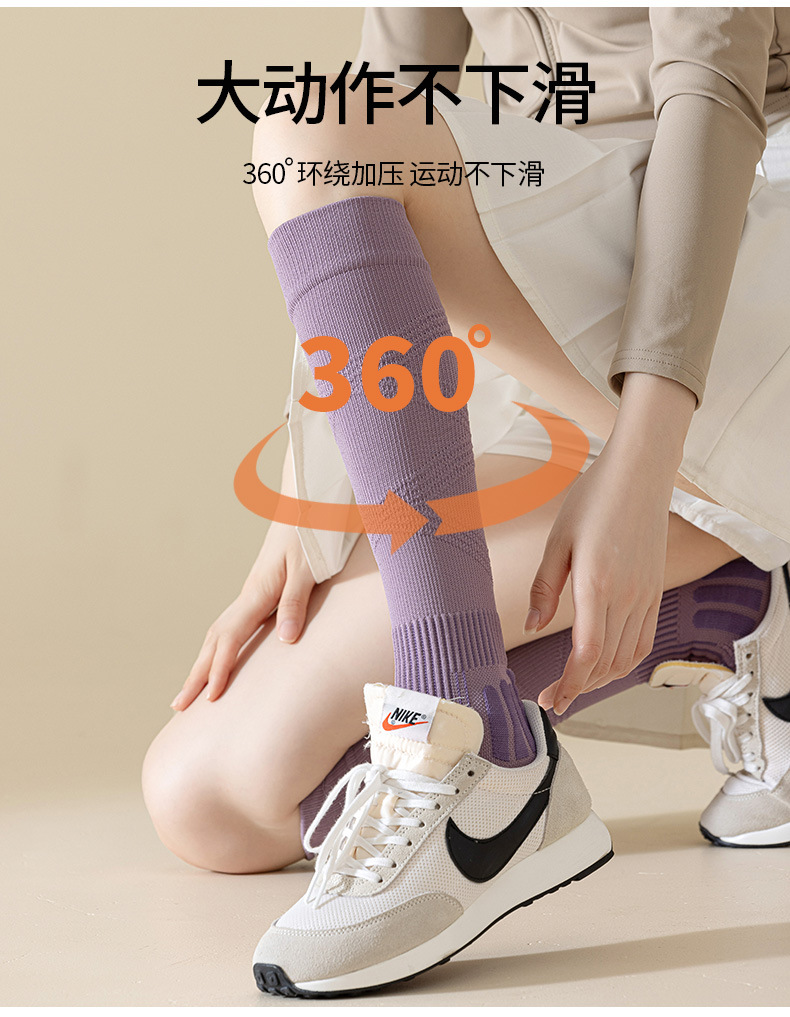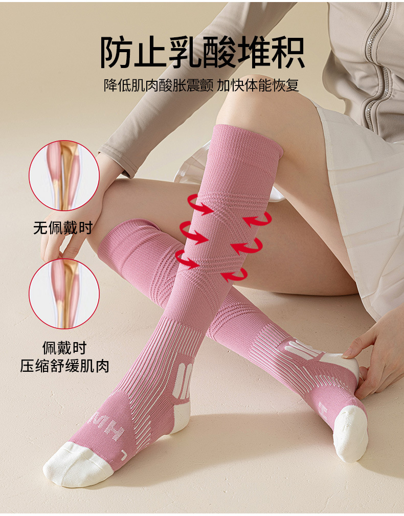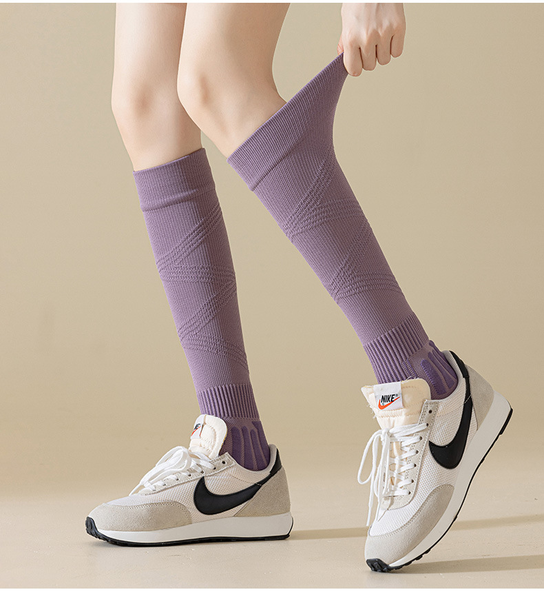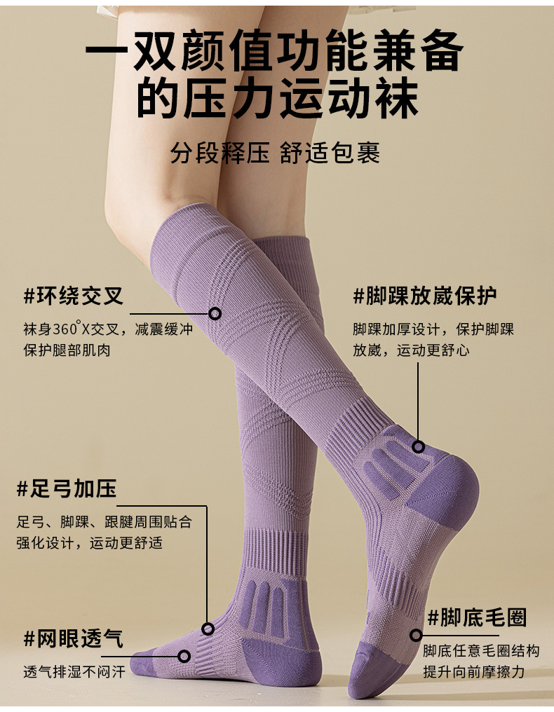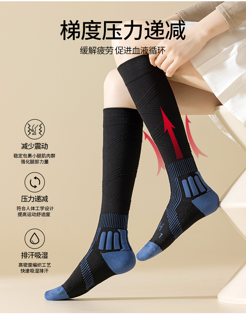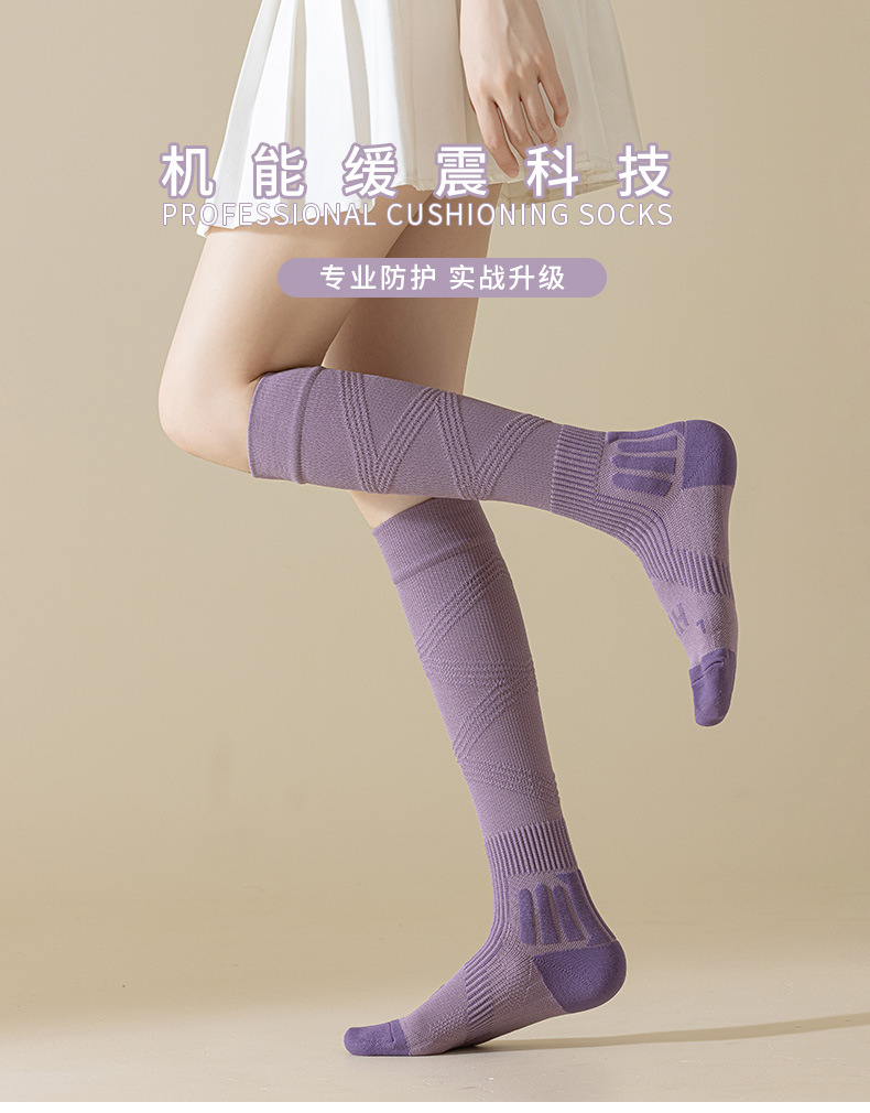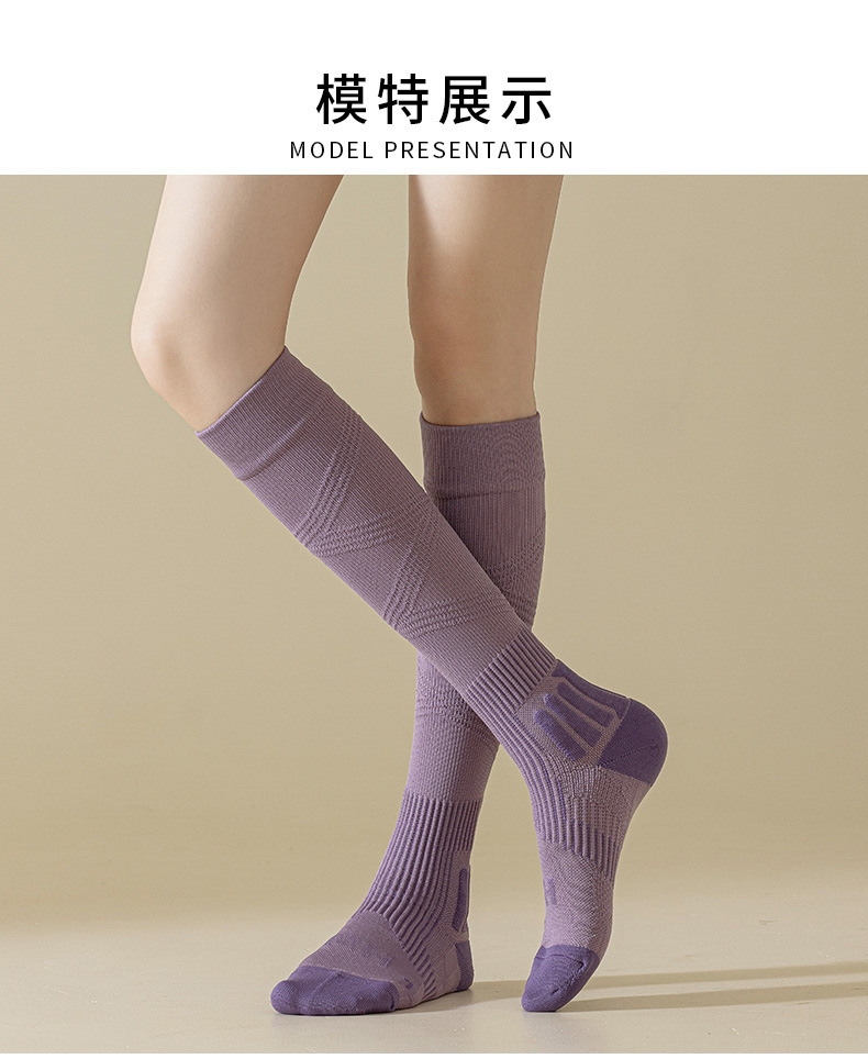 【压力袜专业运动吸汗毛圈弹力袜】秋冬 纯色防臭长筒压缩袜小腿袜女款