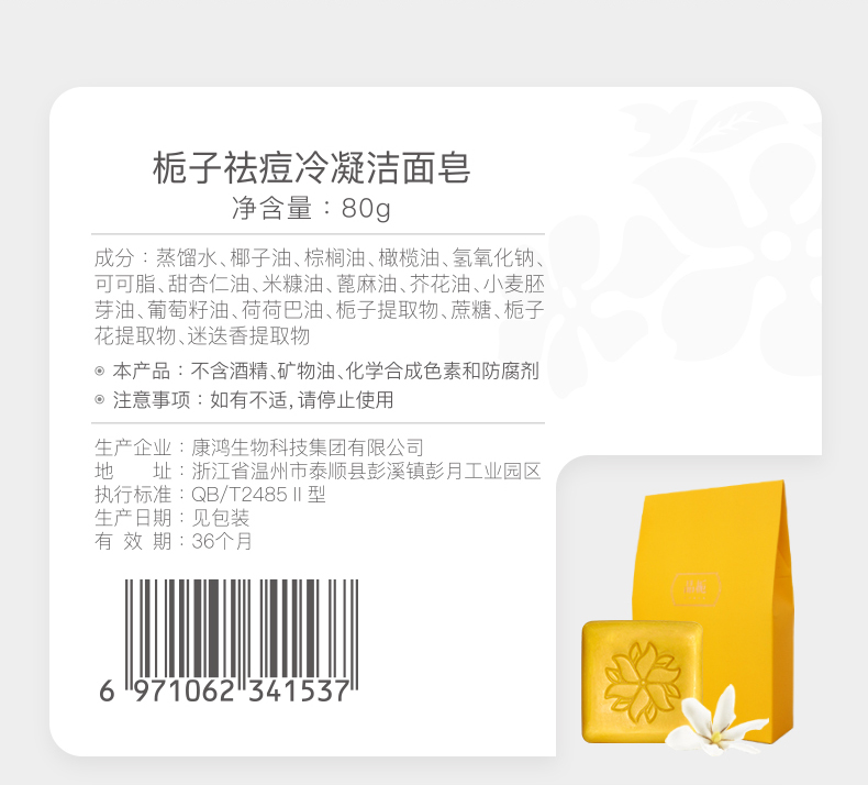 药食同源成分安心养肤栀子祛痘冷凝洁面皂