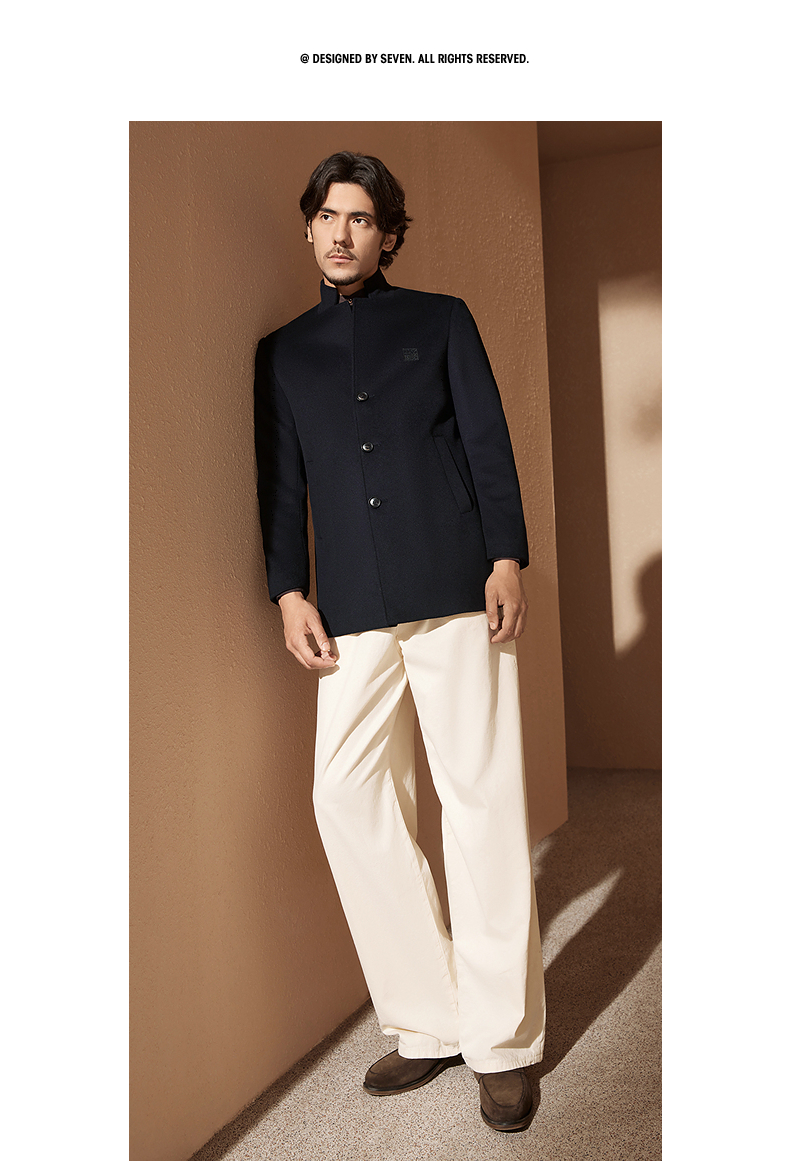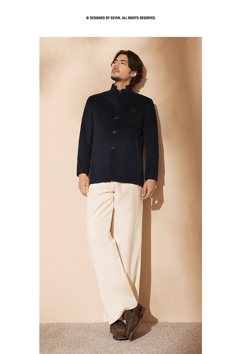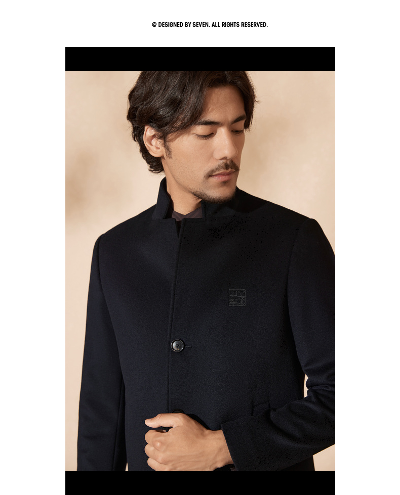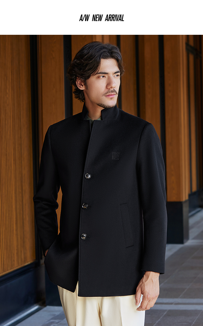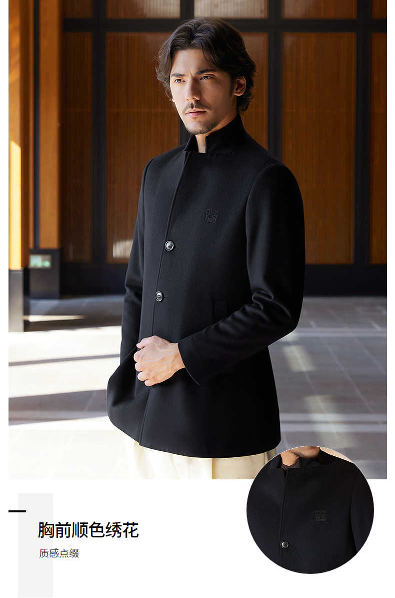 【中华立领】柒牌毛呢大衣男2024秋冬新款商务绅士含羊毛保暖外套 127D70100