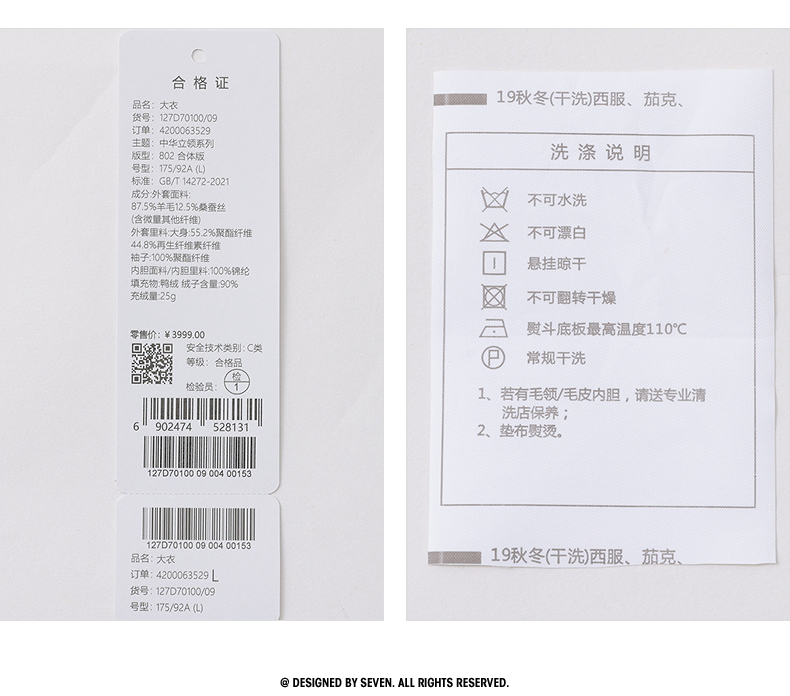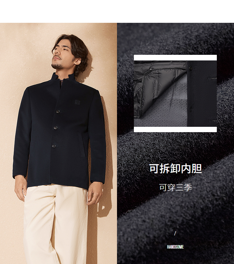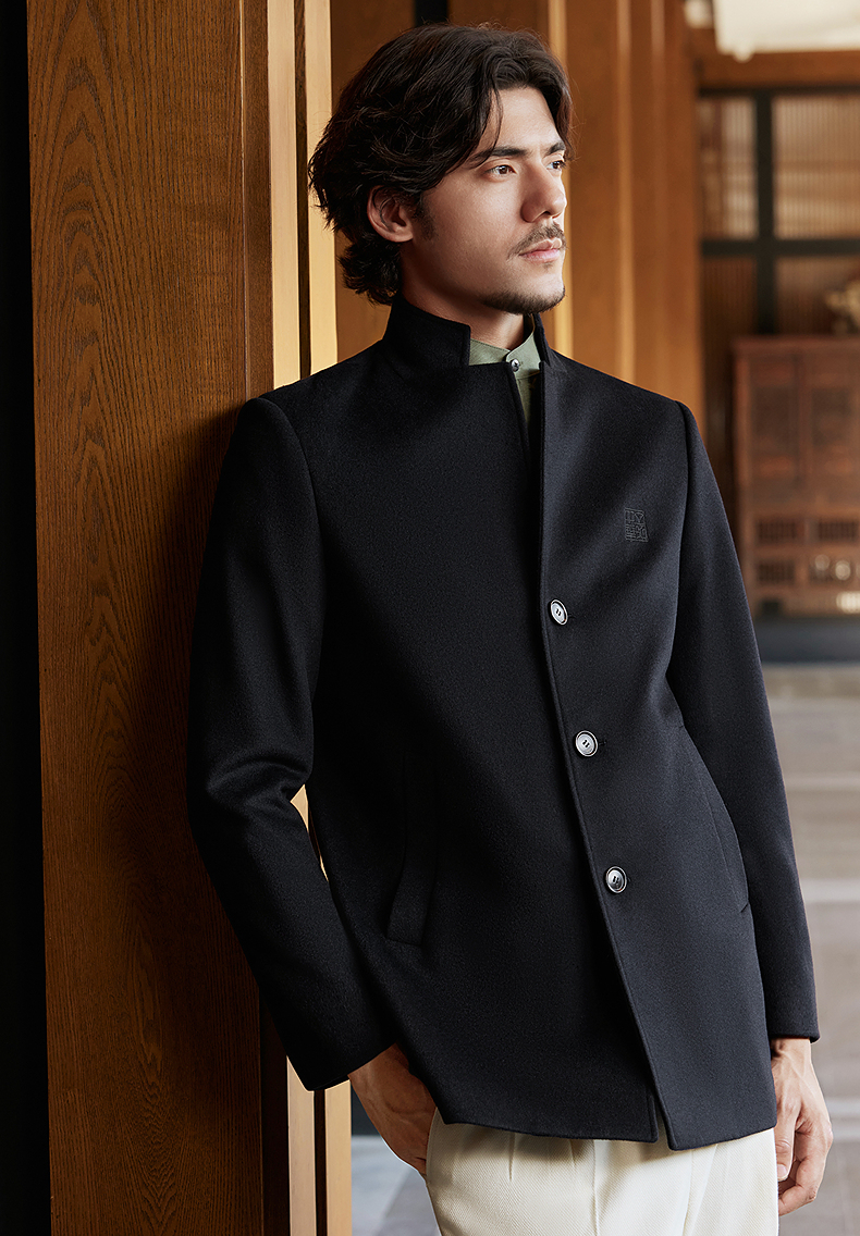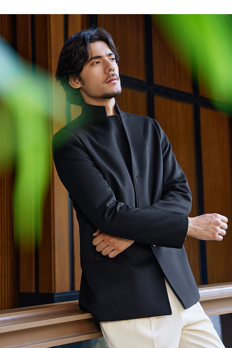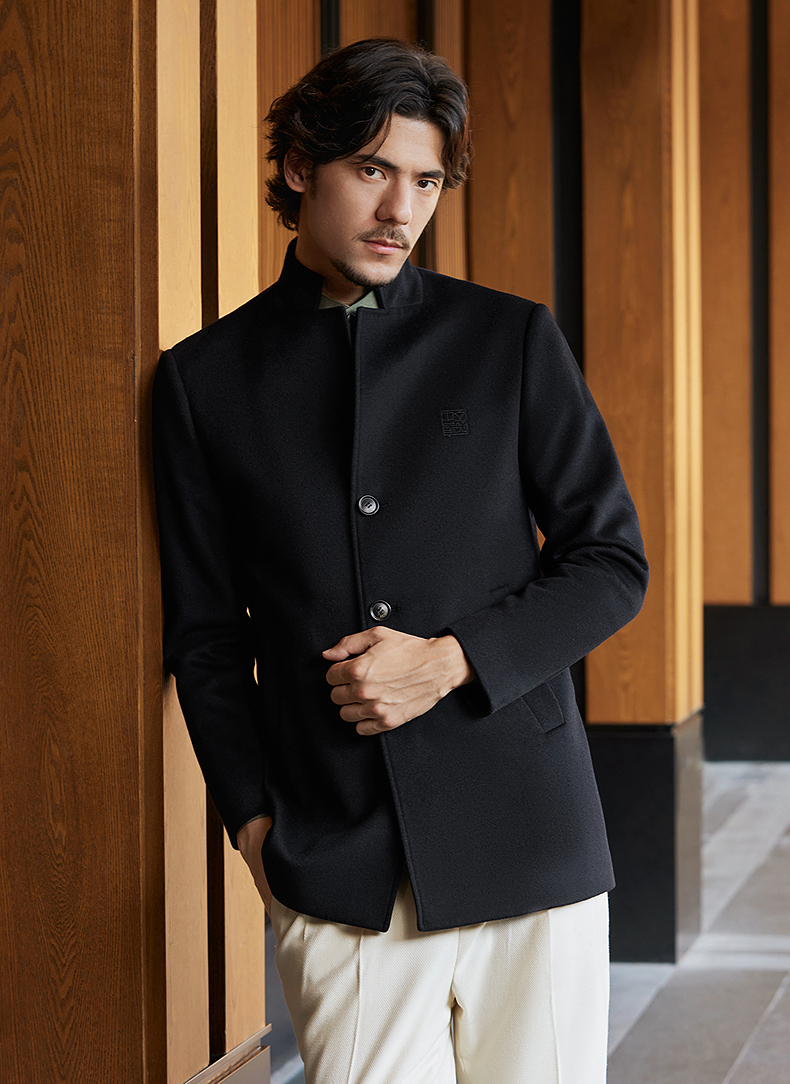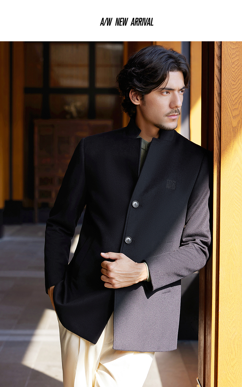 【中华立领】柒牌毛呢大衣男2024秋冬新款商务绅士含羊毛保暖外套 127D70100