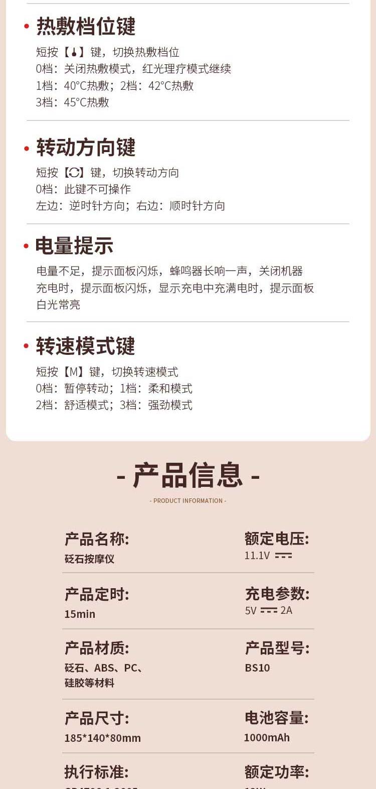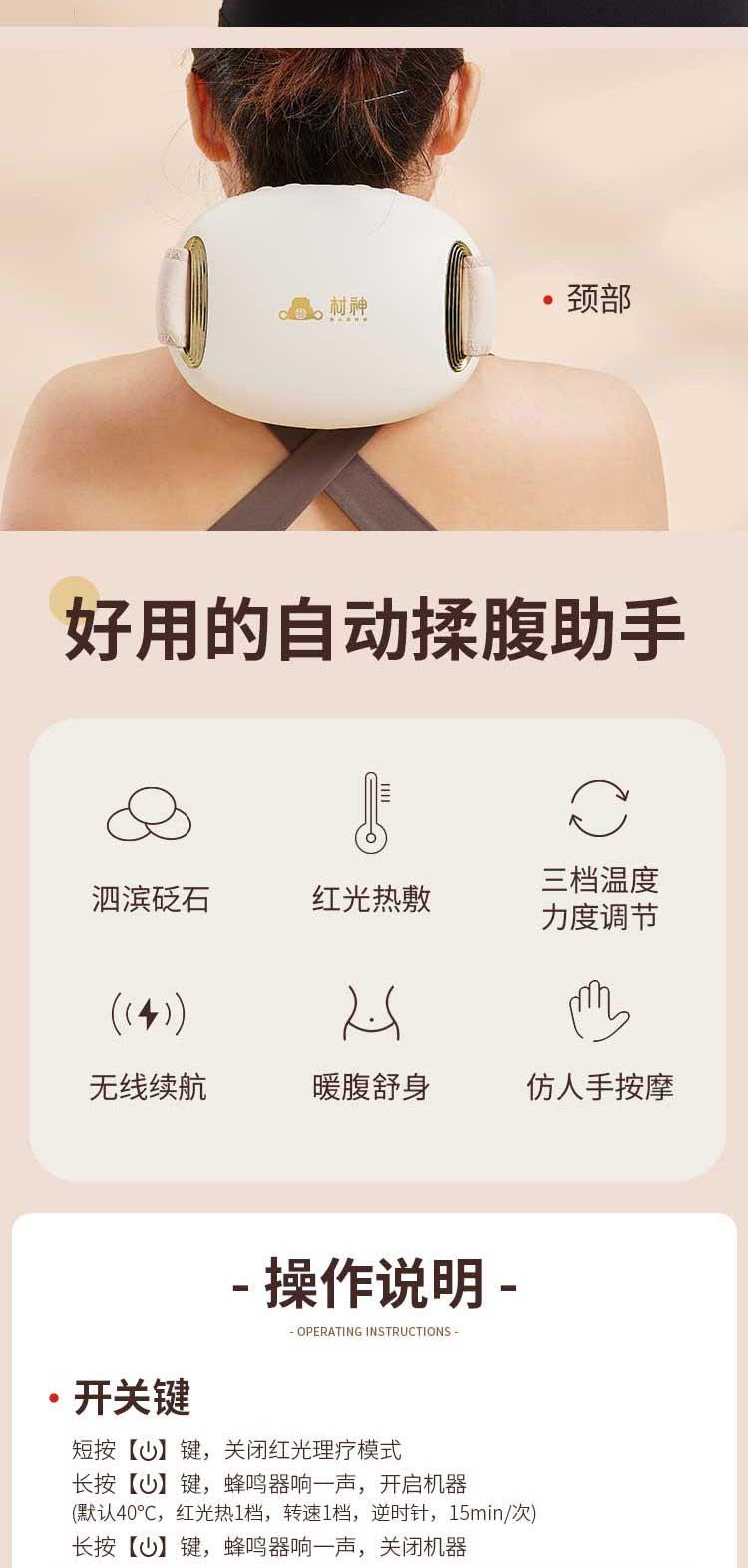 【砭石揉腹仪】 红砭石红外加热 38-42℃三档温控 仿生揉腹顺逆随心