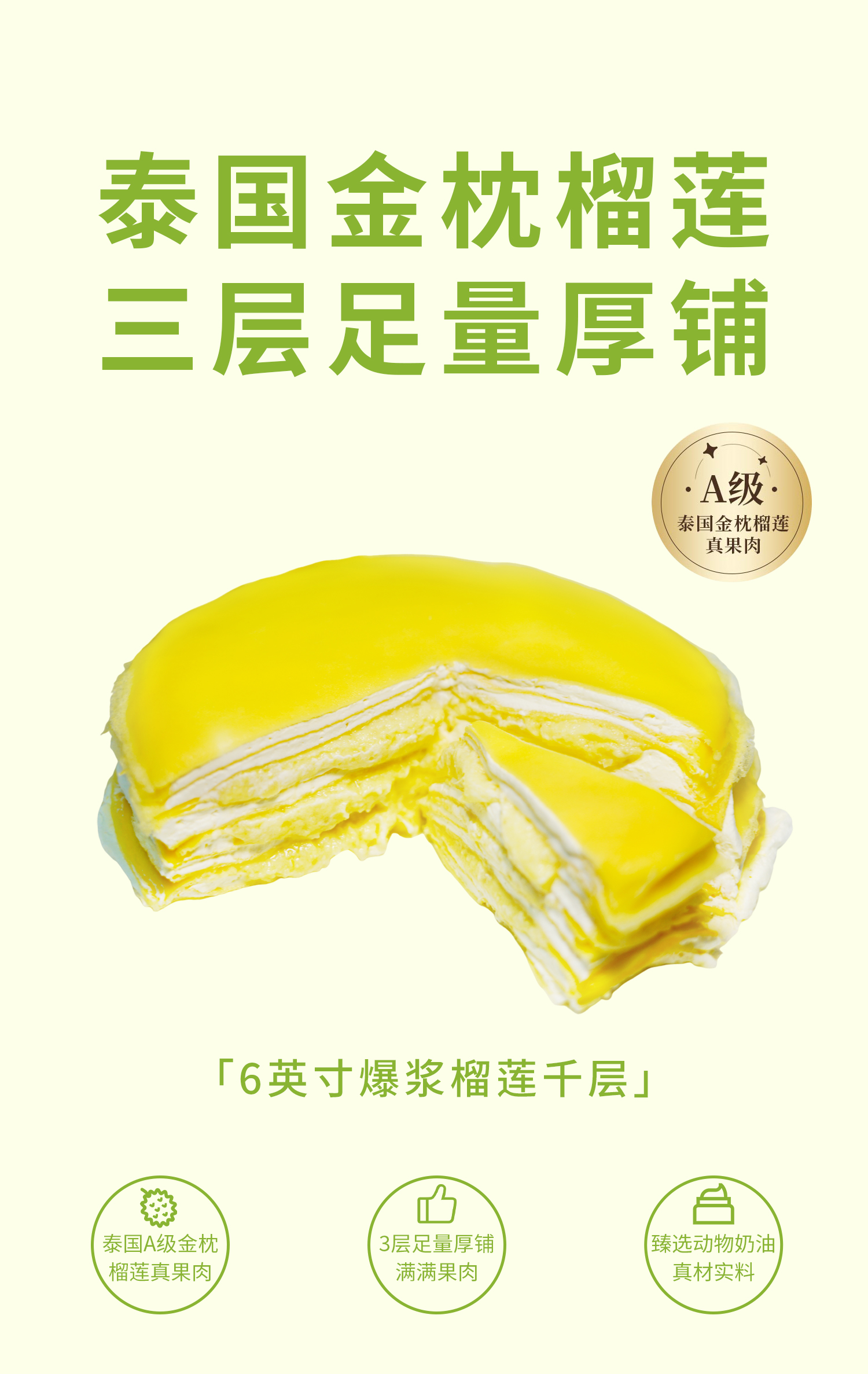 【足量爆浆】6英寸爆浆榴莲千层 果肉多多 动物奶油现做