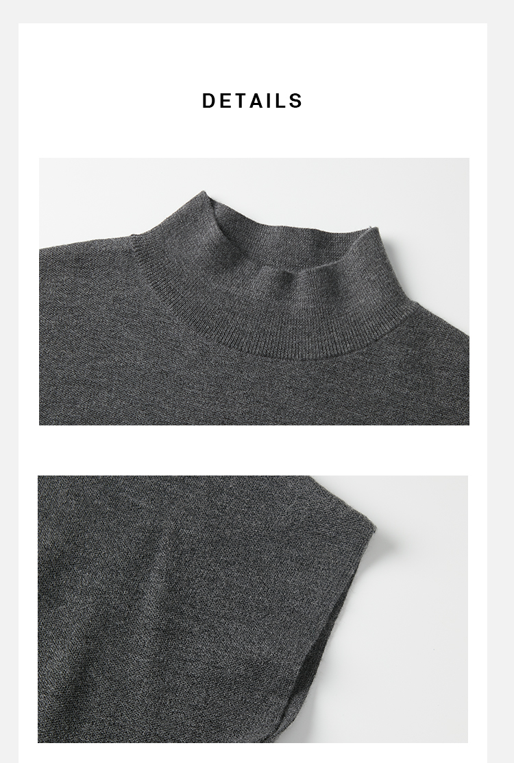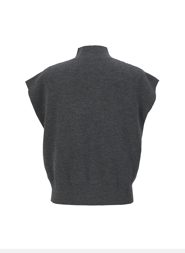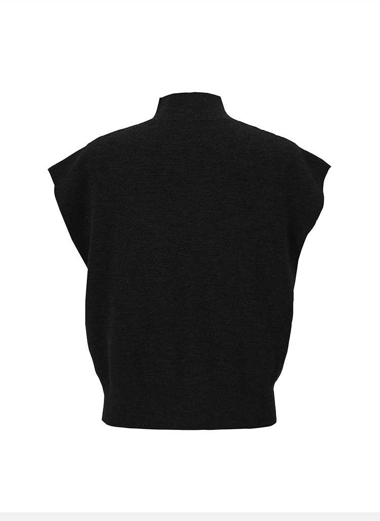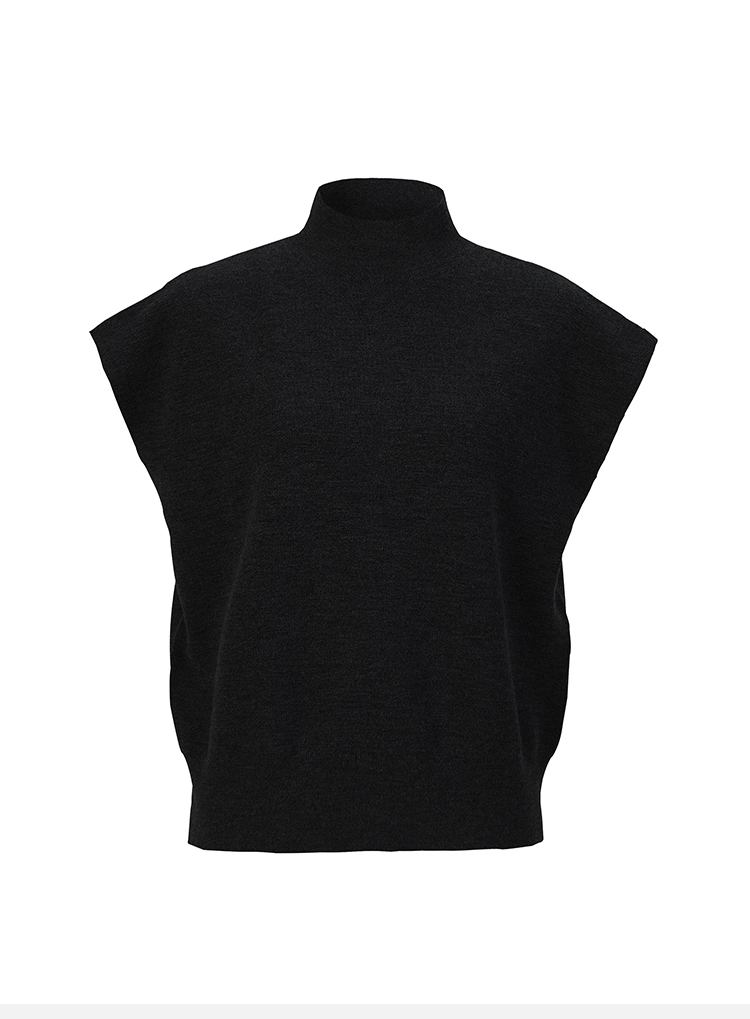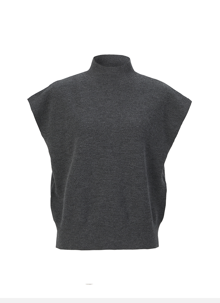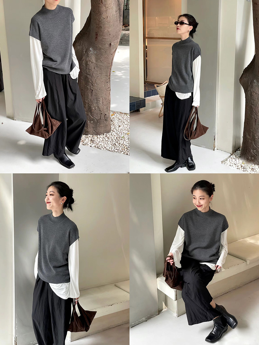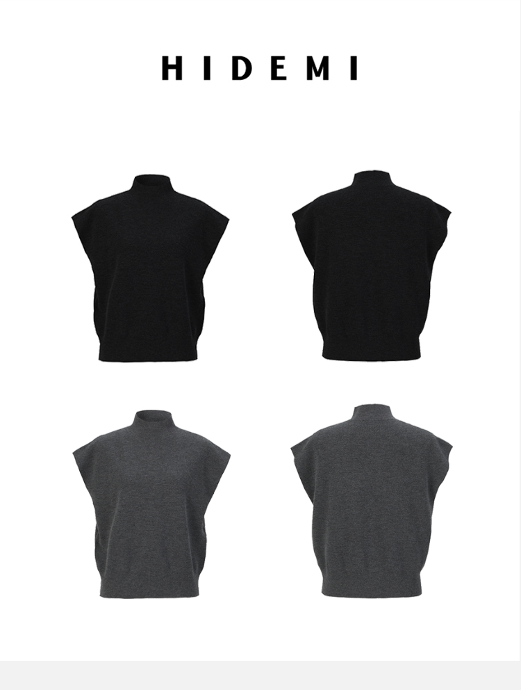 HIDEMI 极简小圆领立领廓形真丝羊毛针织马甲背心 黑色/灰色