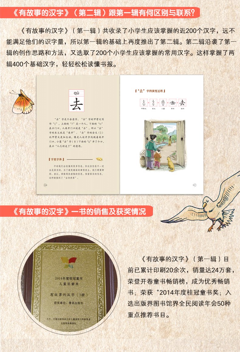 在“屏幕书写”时代,很多人已提笔忘字。如何引导孩子学习汉字,爱上汉字,通过汉字了解中国传统文化?《有故事的汉字》是专门为孩子们创作的一套“儿童版《说文解字》”。《有故事的汉字》(第二辑)沿袭了第一辑的创作思路和方法,在第一辑的基础上,又选取了小学生应该学习和掌握的300余个汉字,对每个汉字讲解其造字本义及演变过程,让小读者彻底弄清楚这个字的前世今生,轻轻松松学好汉字。