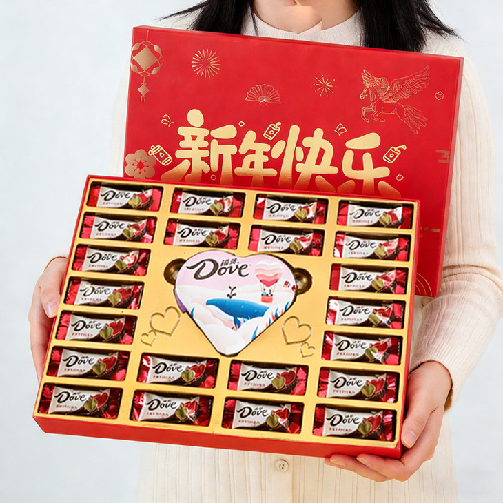 【新年快乐德芙礼盒】心意藏礼里,温暖伴你行 愿美好与幸运常绕你左右💖 一份小惊喜 致我最珍视的人 愿你日日欢喜,岁岁无忧 配置:德芙巧克力*25颗 搭配礼袋*1 礼盒尺寸:32*23*4cm