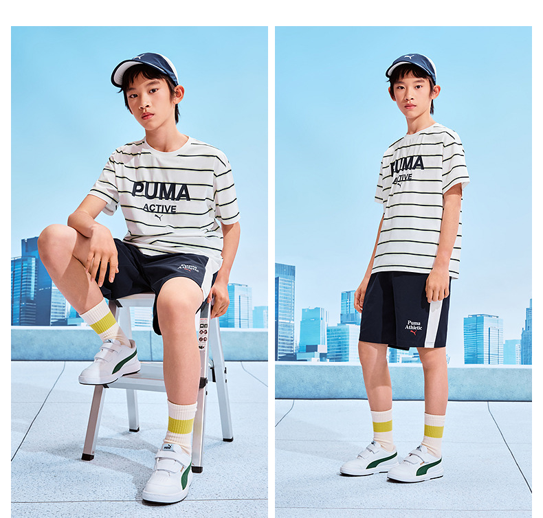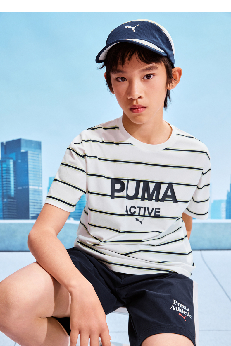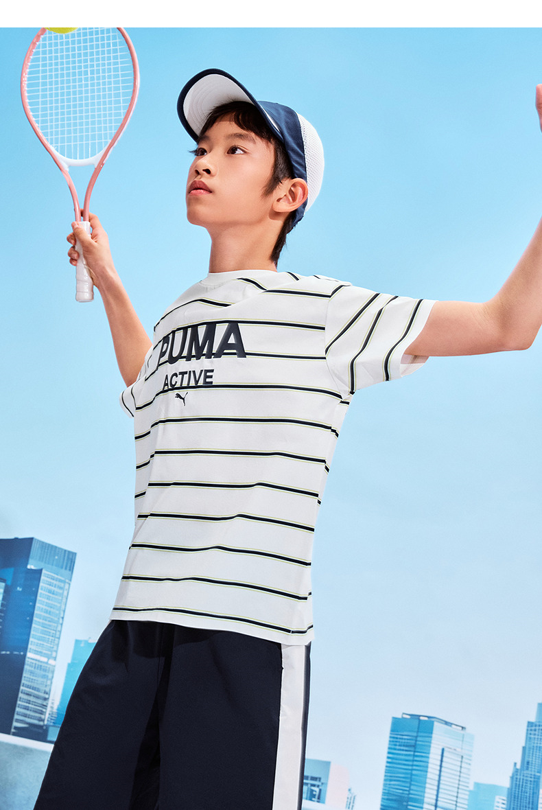 PUMA彪马童装2026夏季新款儿童短袖T恤经典条纹休闲时尚