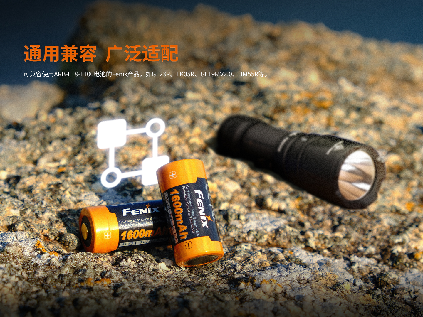 Fenix菲尼克斯ARB-L18-1600锂电池18350多重安全保障技术可充电锂电池
