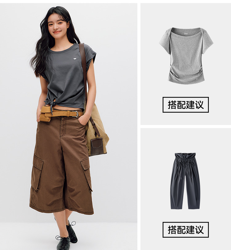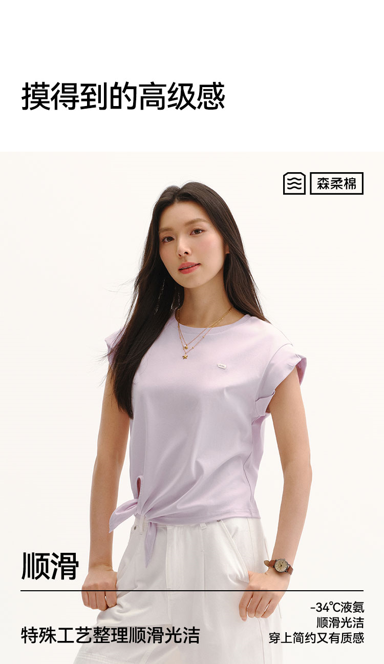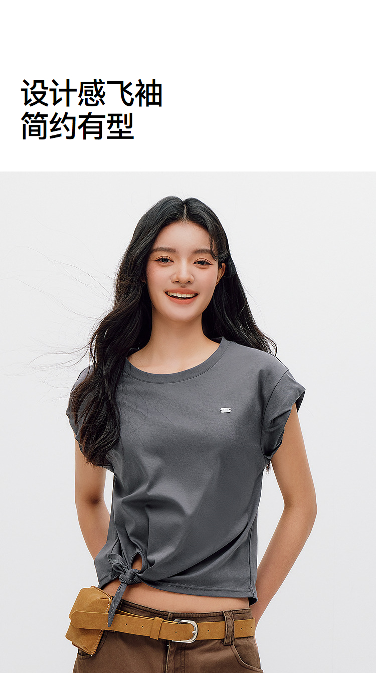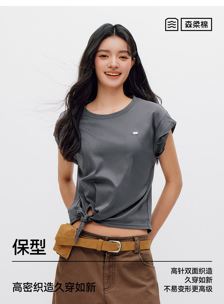 森柔|商场同款森马T恤女夏短款小飞袖打结2026新款设计感百搭衣服