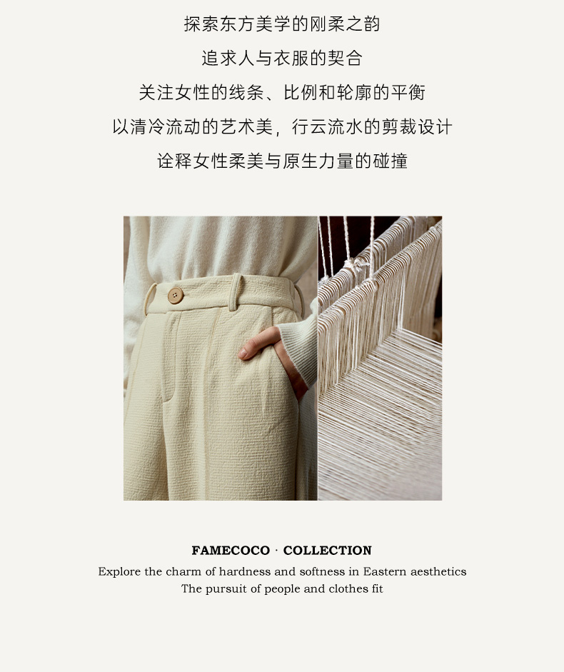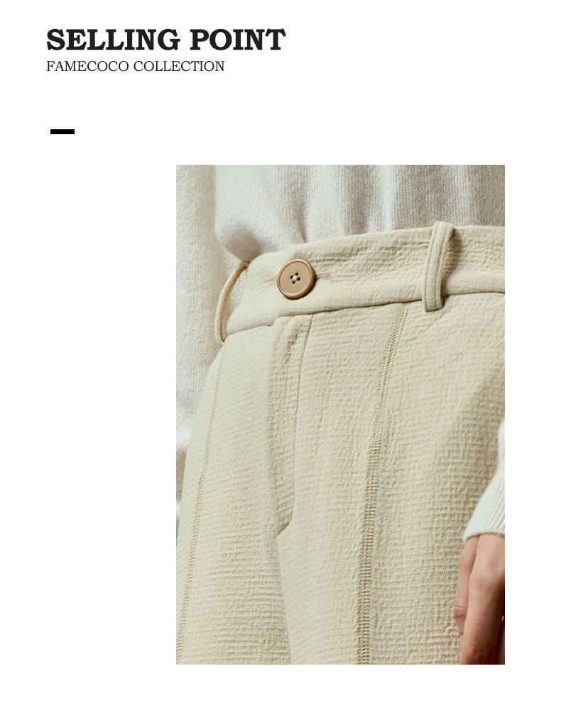 Famecoco范可儿简约通勤直筒裤宽松垂坠感棉质阔腿裤FAC8GA012