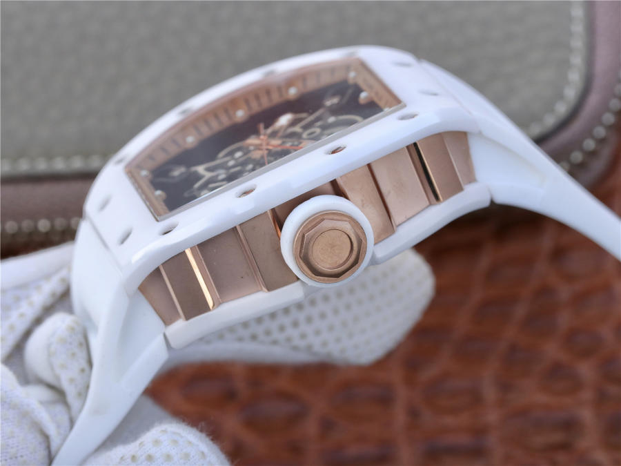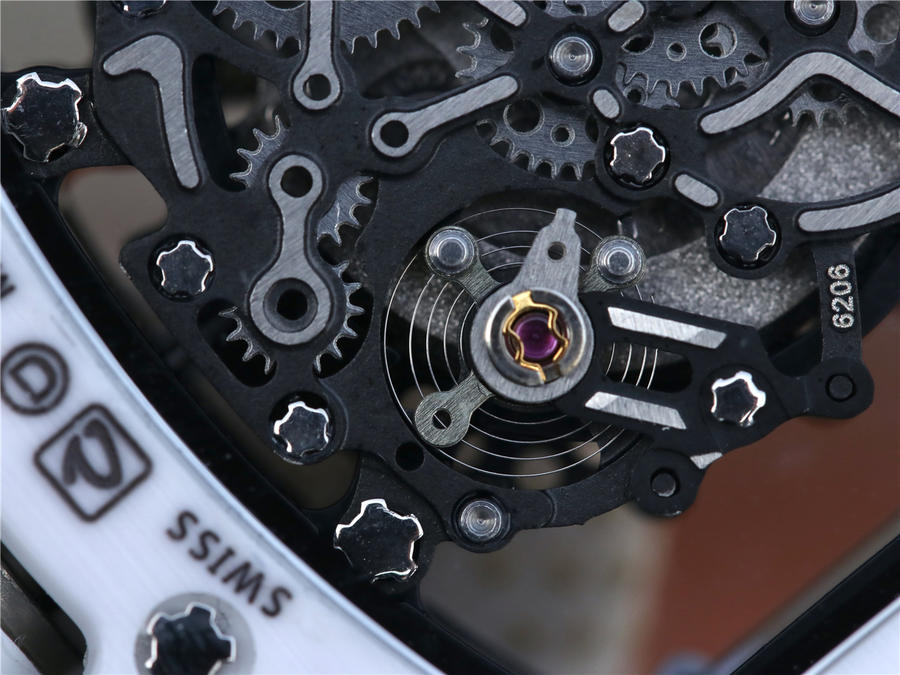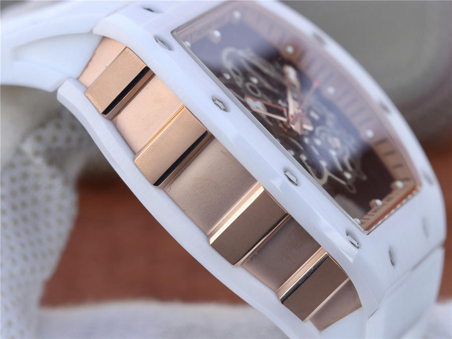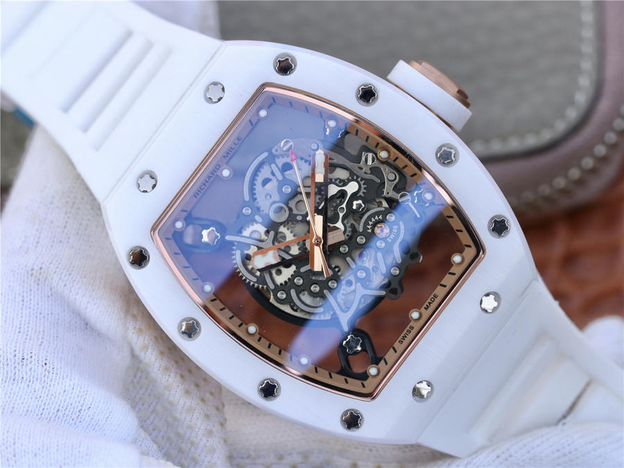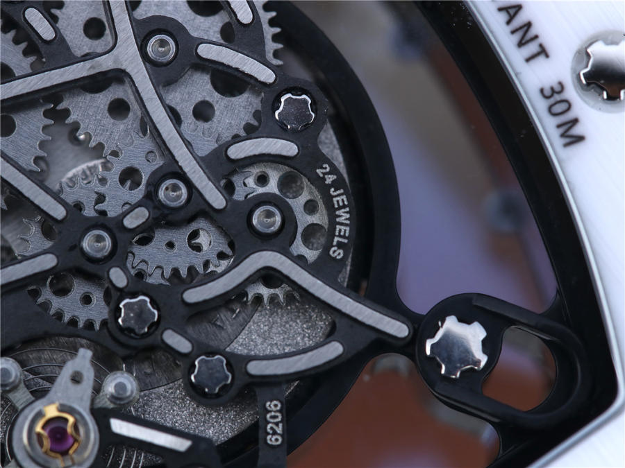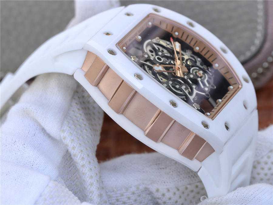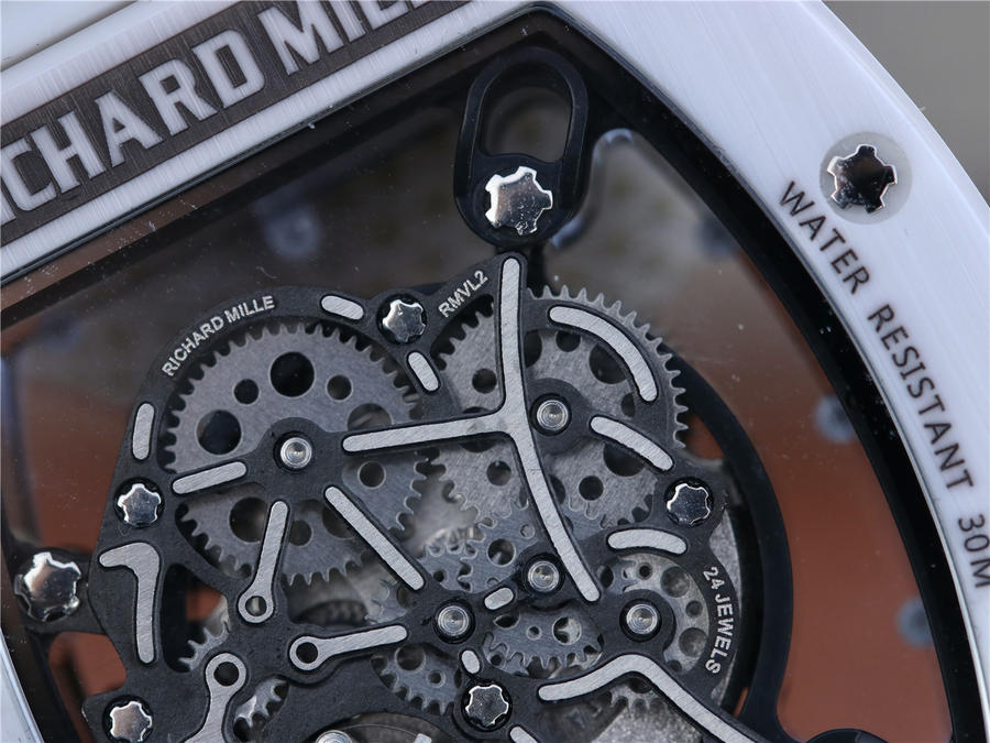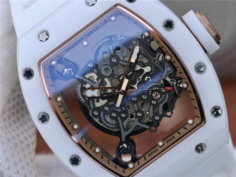 RM理查徳米勒RM055 表圈和底盖采用纳米陶瓷复合材料,具有耐划伤性和抗变色性,且陶瓷纹理清晰,外观臻于 。无表盘设计