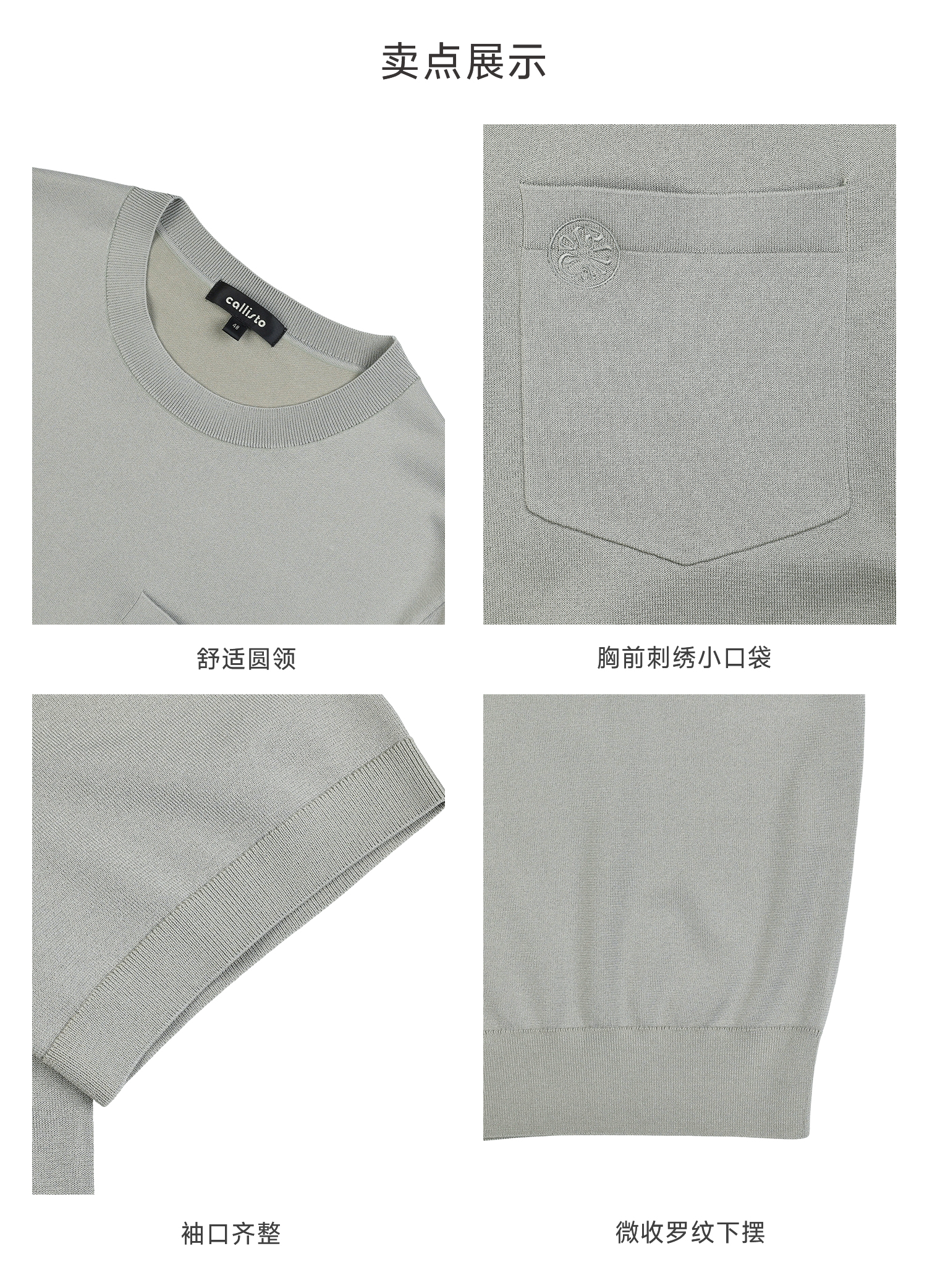 callisto绿色进口三醋酸混纺针织短袖T恤
