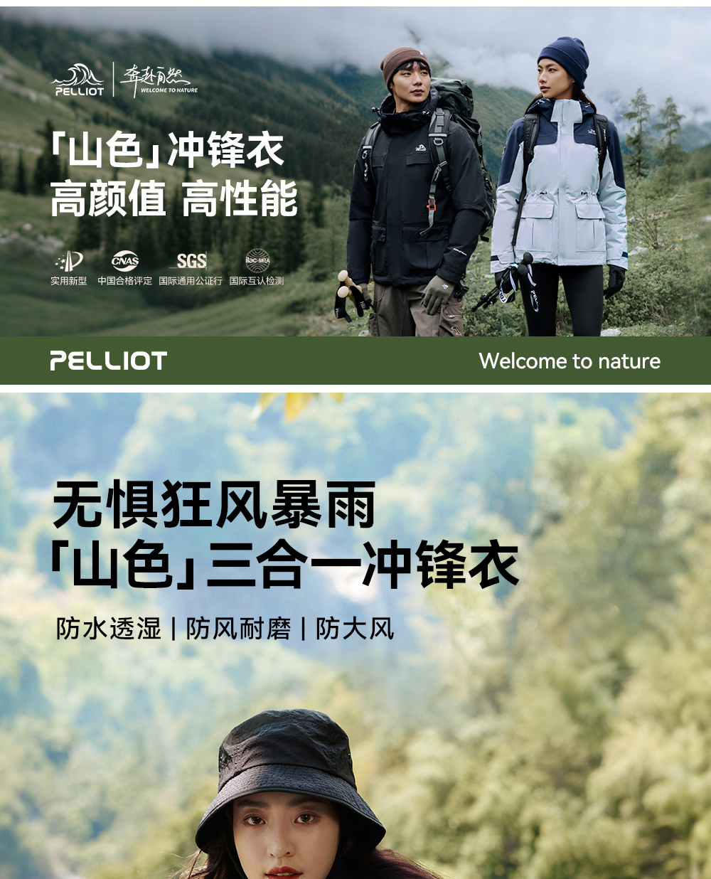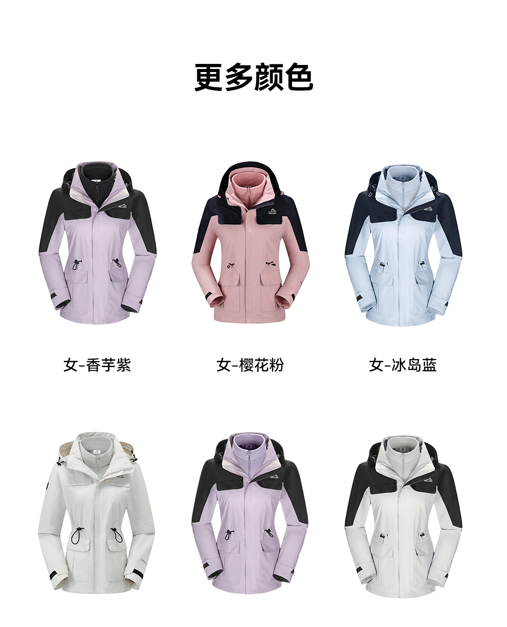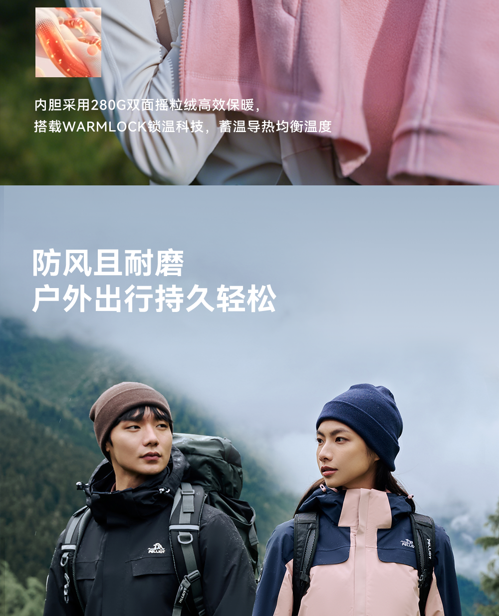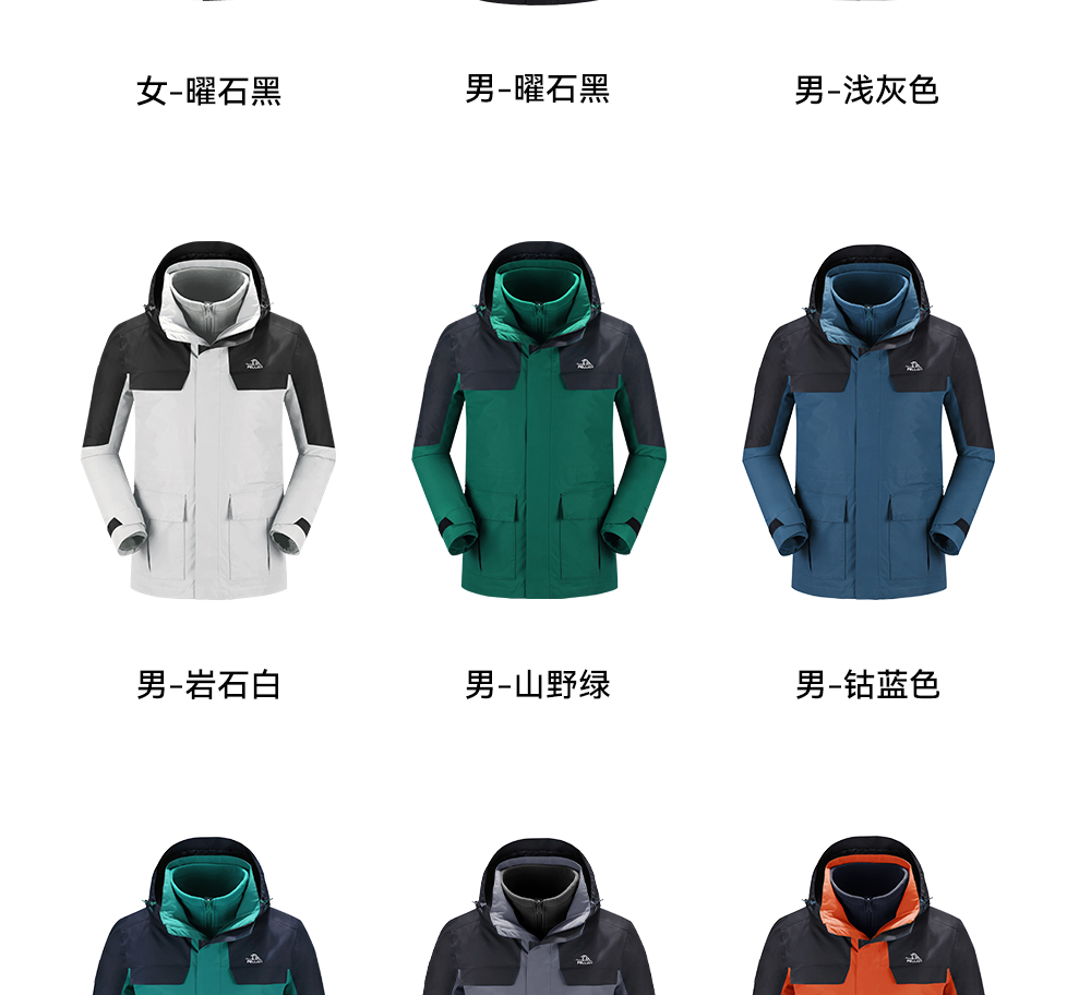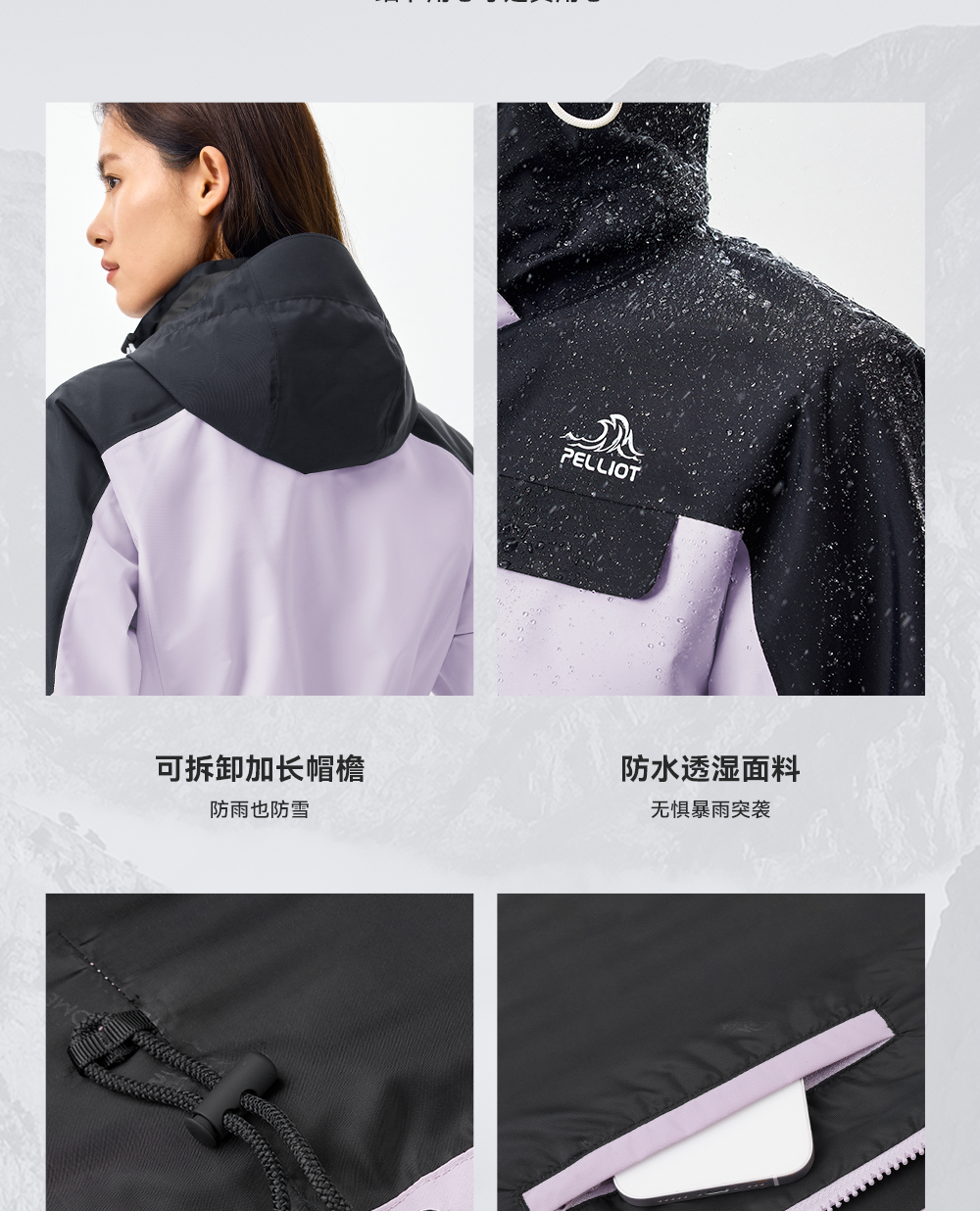 【山色】伯希和户外冲锋衣女新款三合一防风防雨徒步登山服外套男