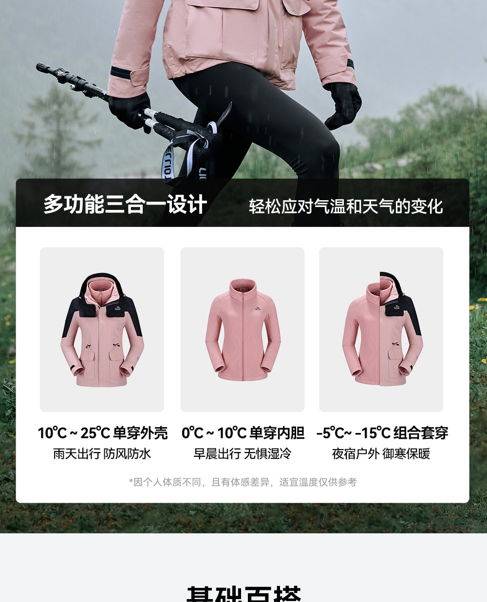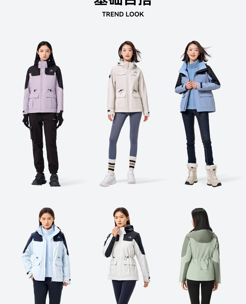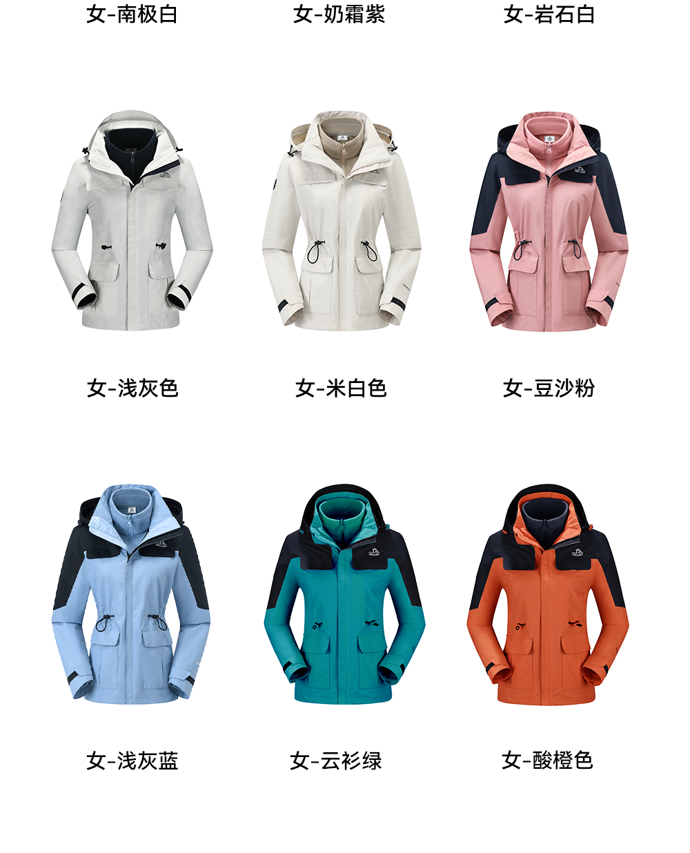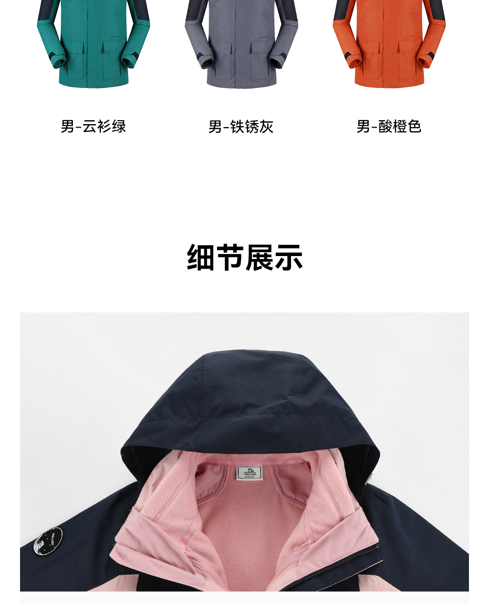 【山色】伯希和户外冲锋衣女新款三合一防风防雨徒步登山服外套男
