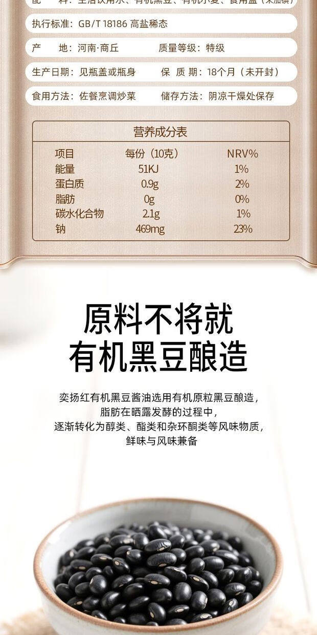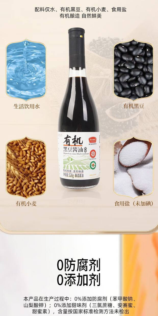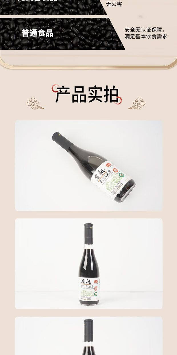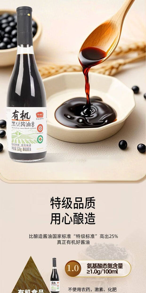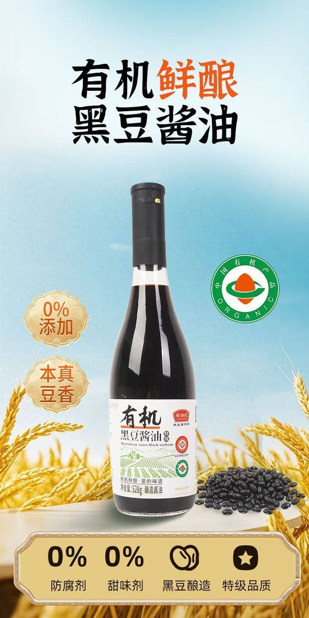 有机黑豆酱油528g酿造生抽0添加味精家用调味炒菜提鲜官方旗舰店