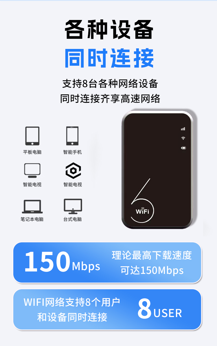 新款升级芯片,信号接收强,电信和联通双网络,可以随意切换,自带电池,出门携带更方便