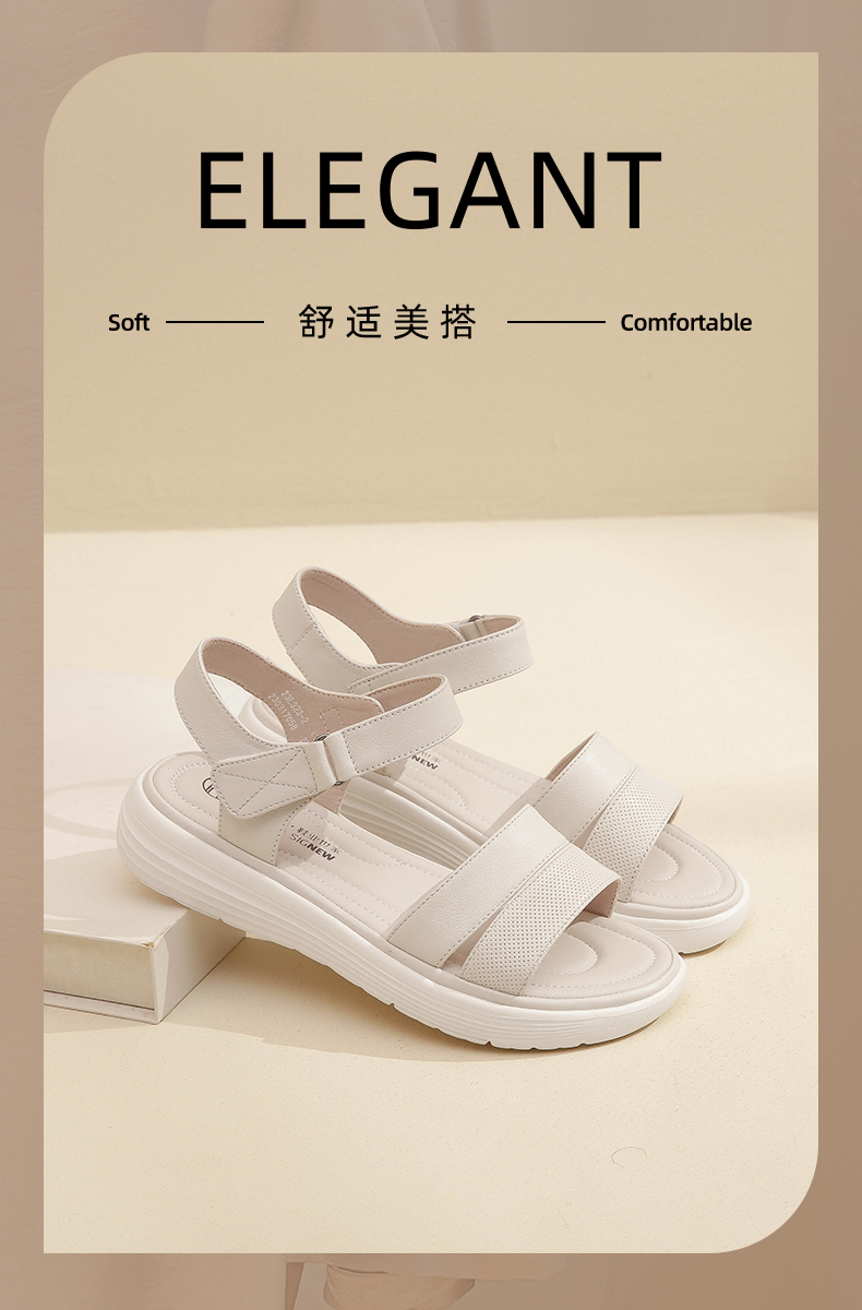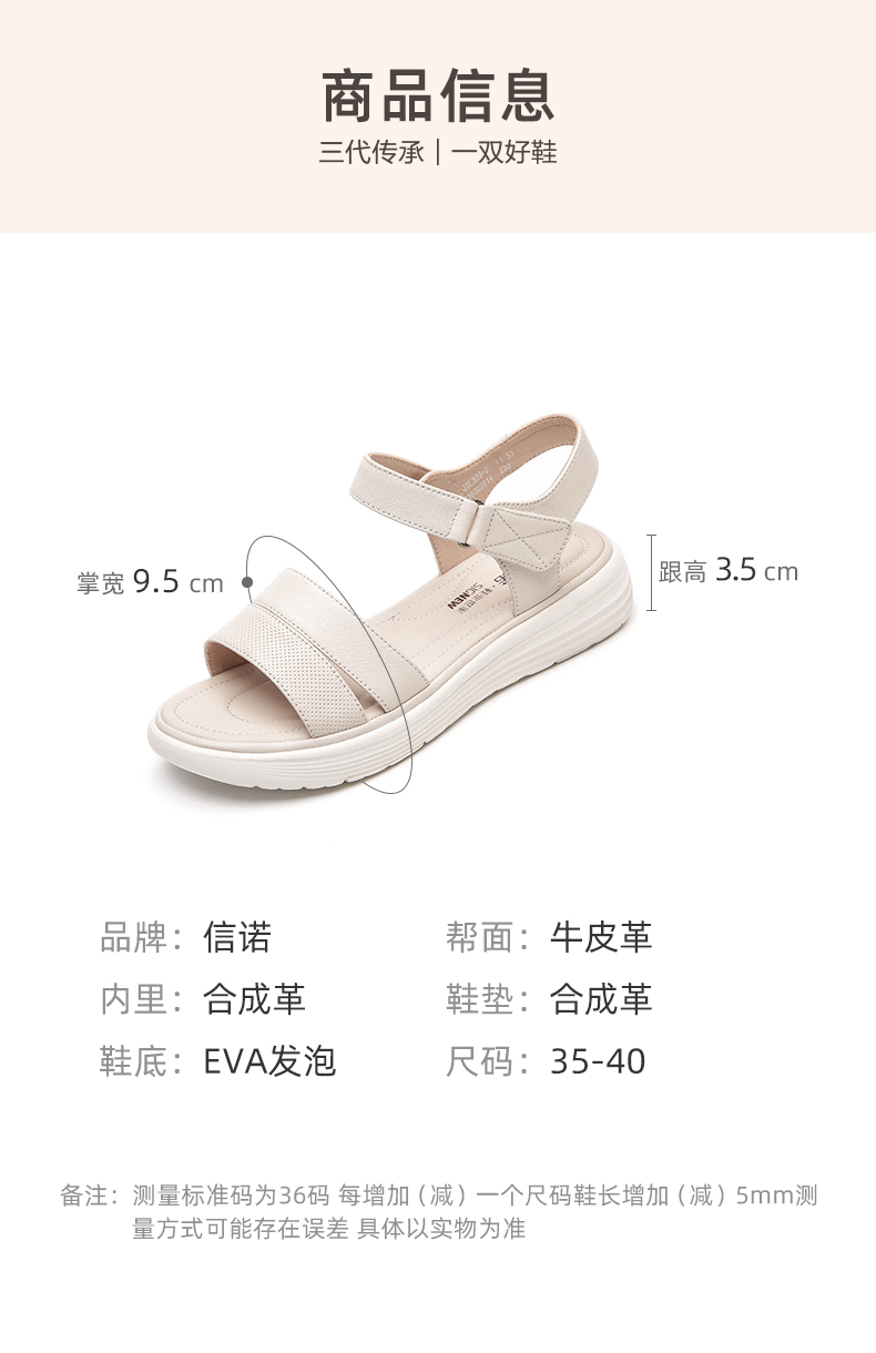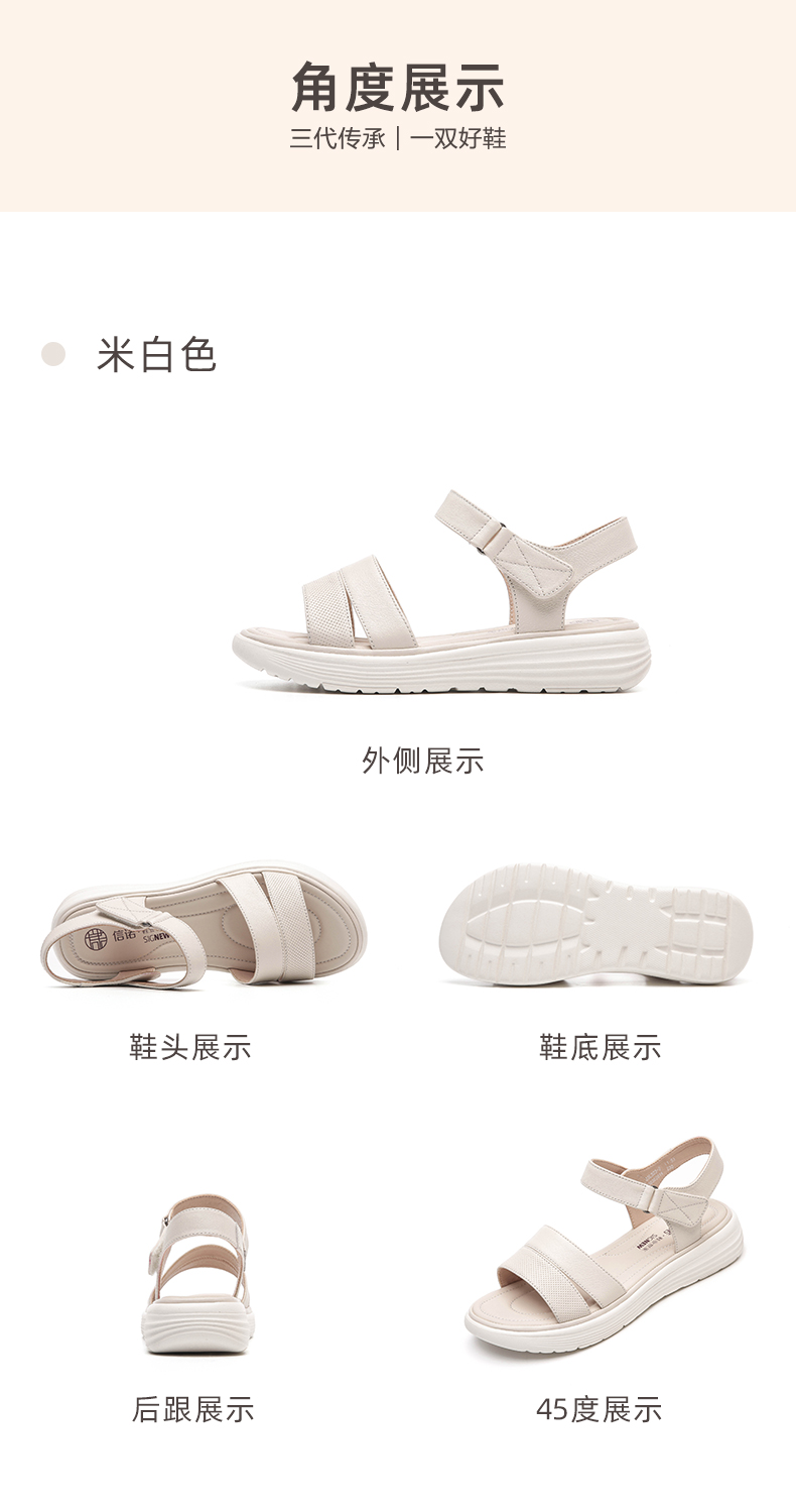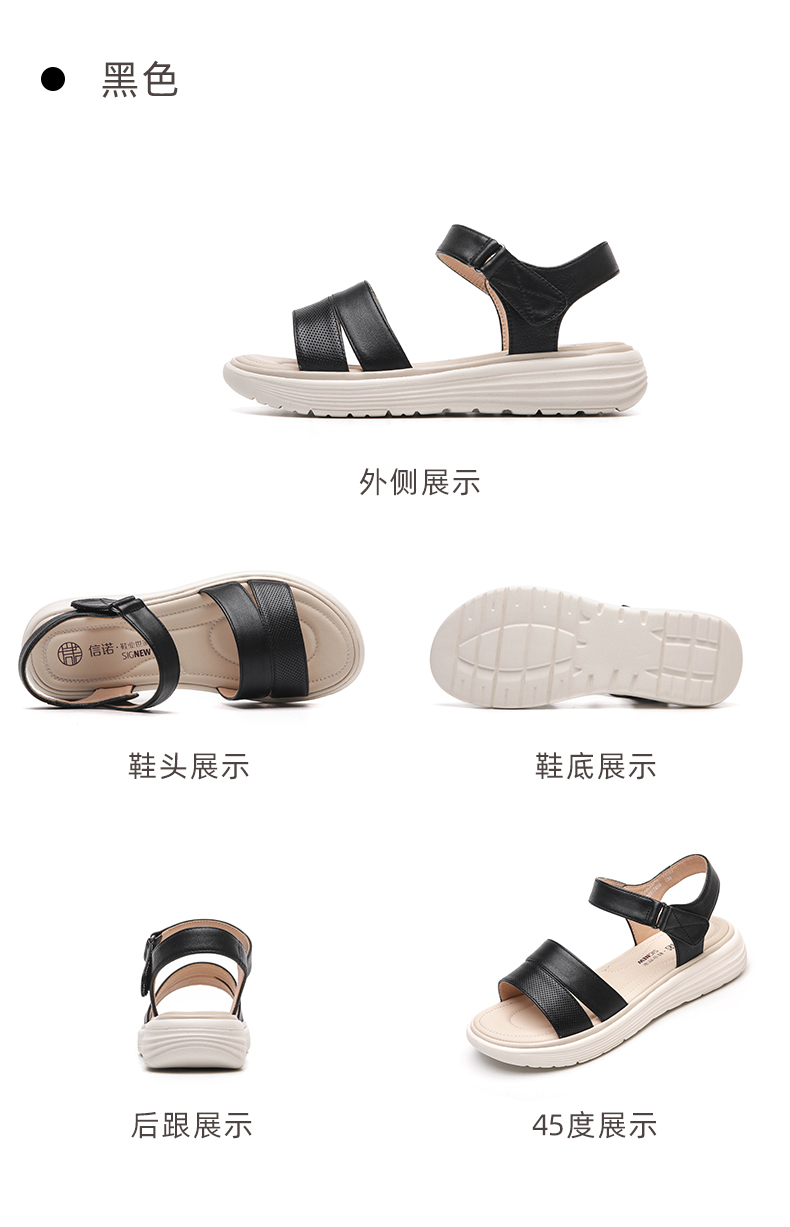 信诺真皮超轻软底凉鞋女士2023年新款夏季厚底平底舒适防滑妈妈鞋23L323-2