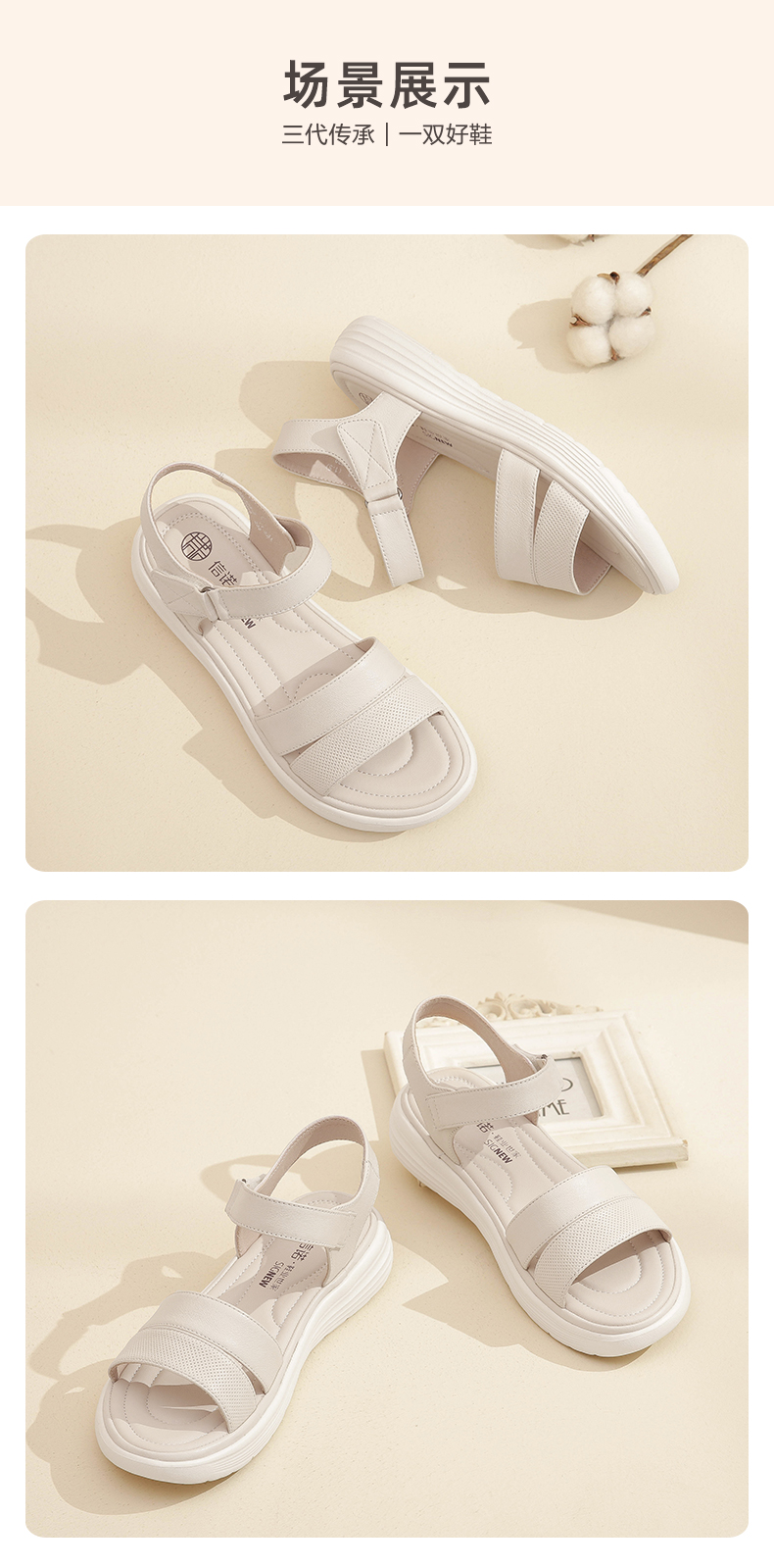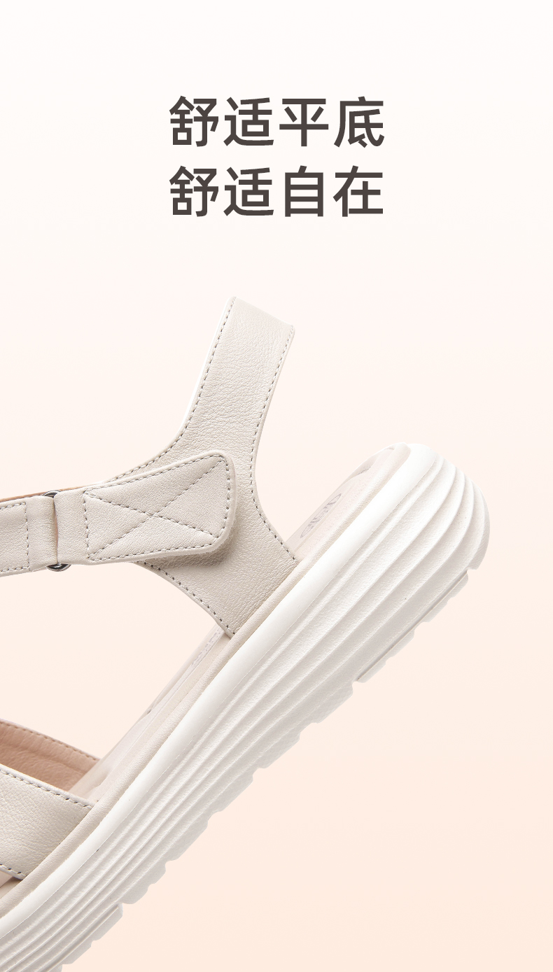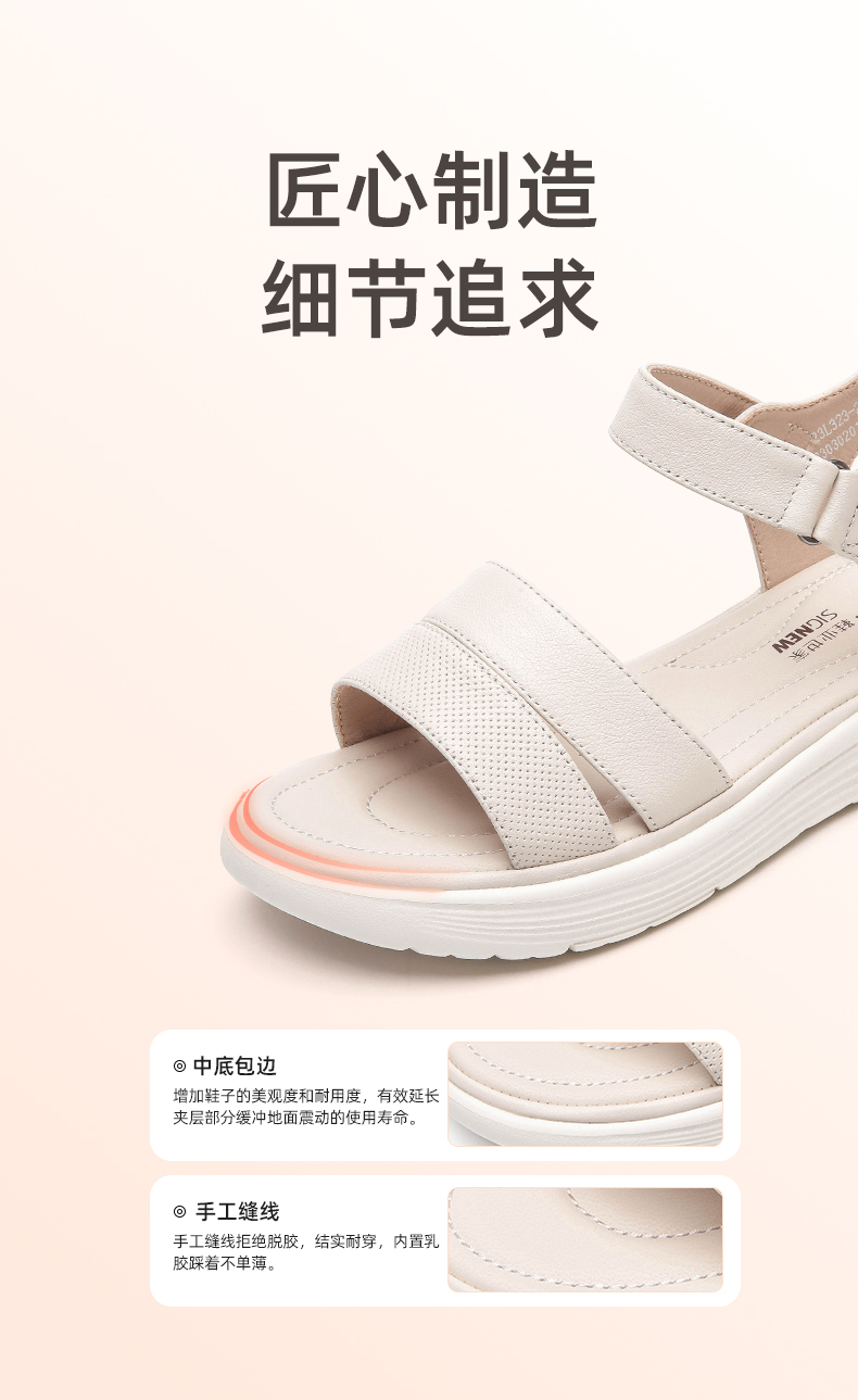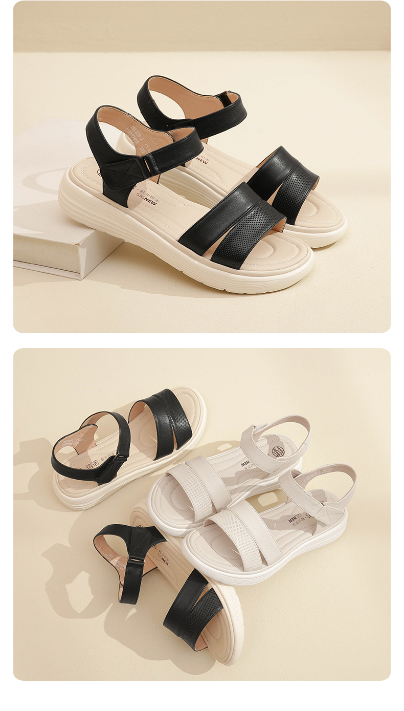 信诺真皮超轻软底凉鞋女士2023年新款夏季厚底平底舒适防滑妈妈鞋23L323-2