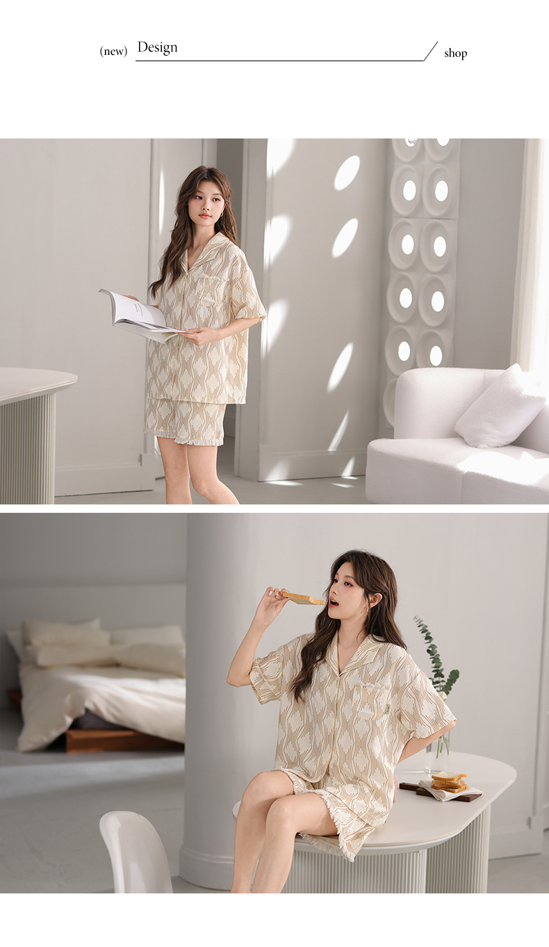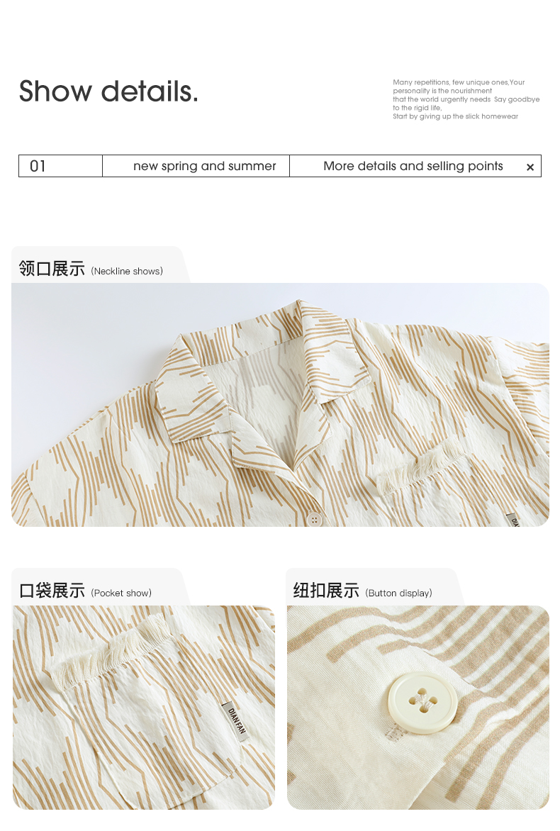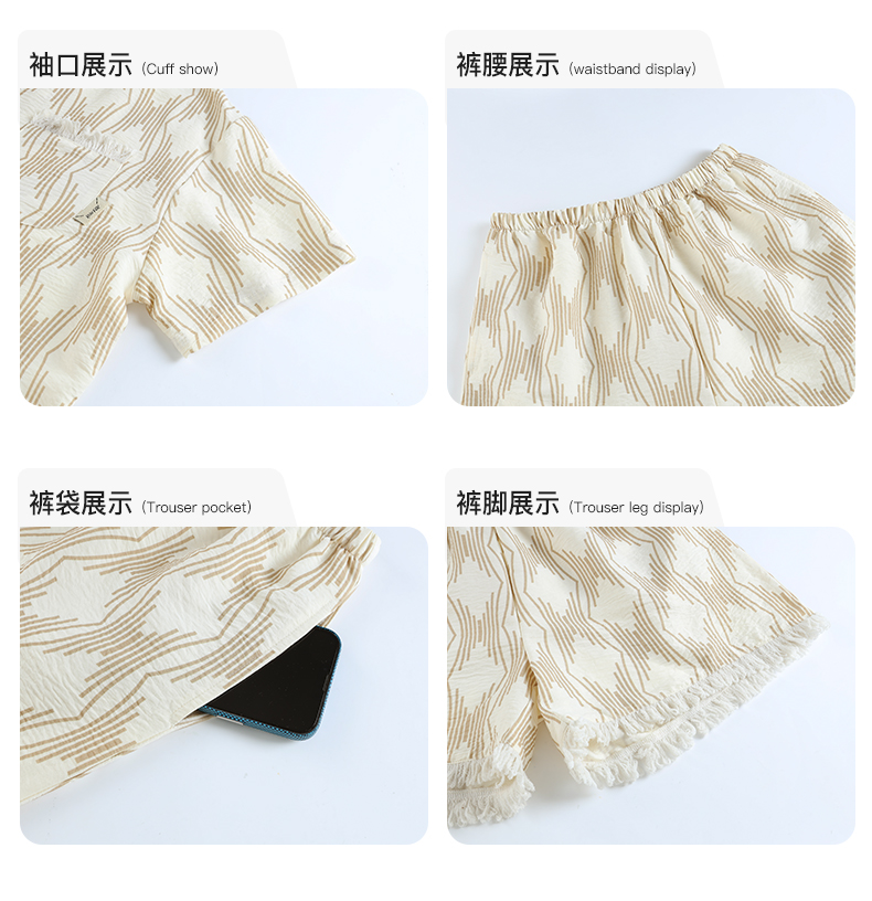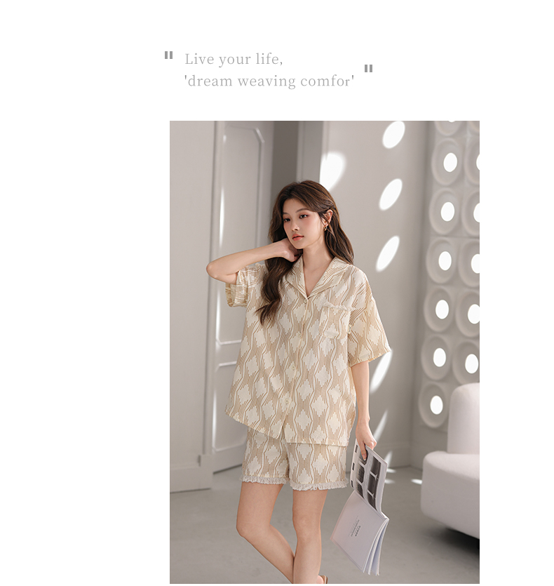 可人儿小众设计师新款泡泡绵女士睡衣夏季短袖可外出家居服套装