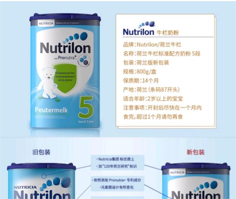 【中欧班列精选】HNMG 荷兰牛栏奶粉Nutrilon 5段(2-7岁)800G 新版