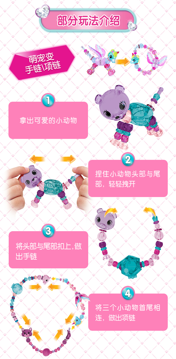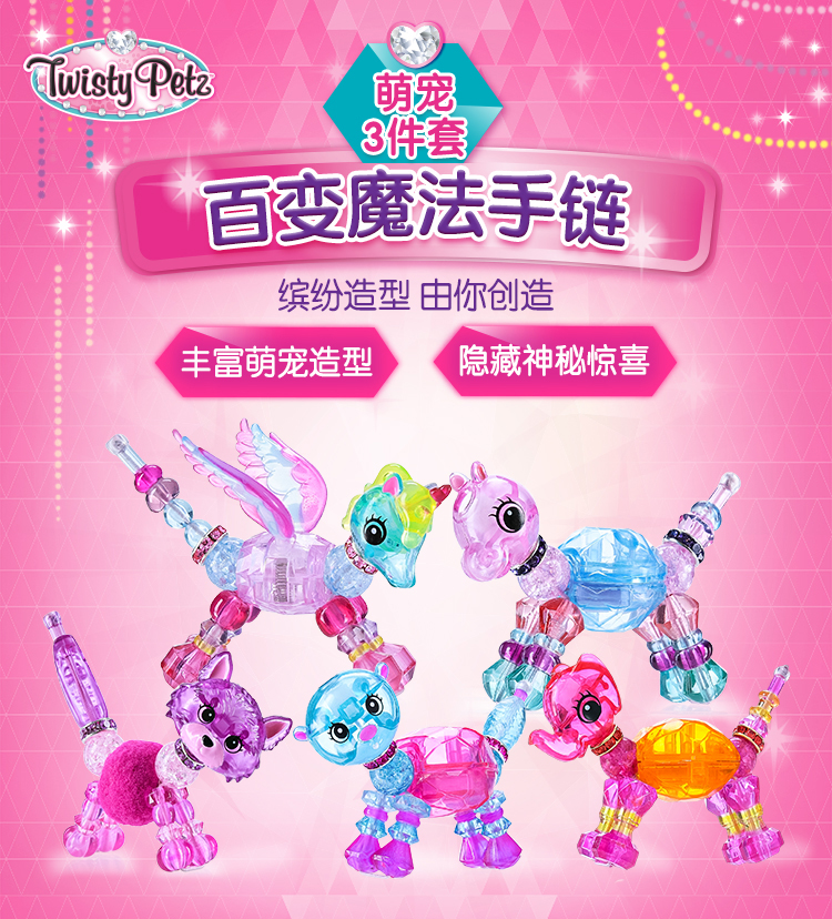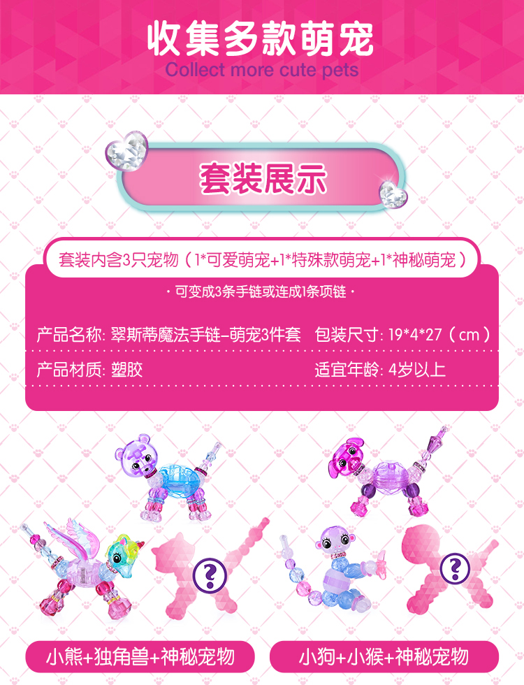 斯平马斯特Spin Master 翠斯蒂魔法手链萌宠3件套盲盒小动物儿童DIY手工串珠玩具