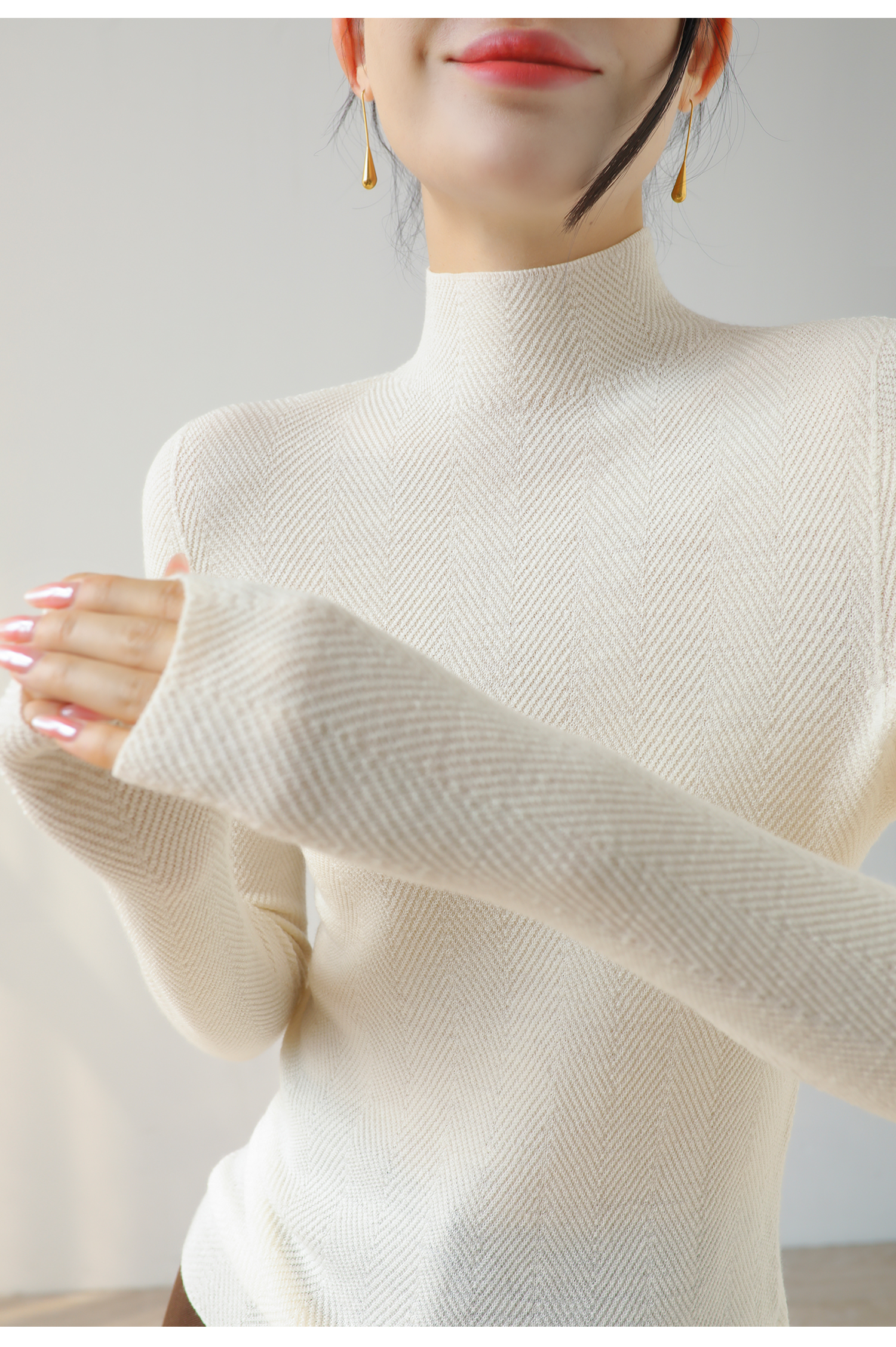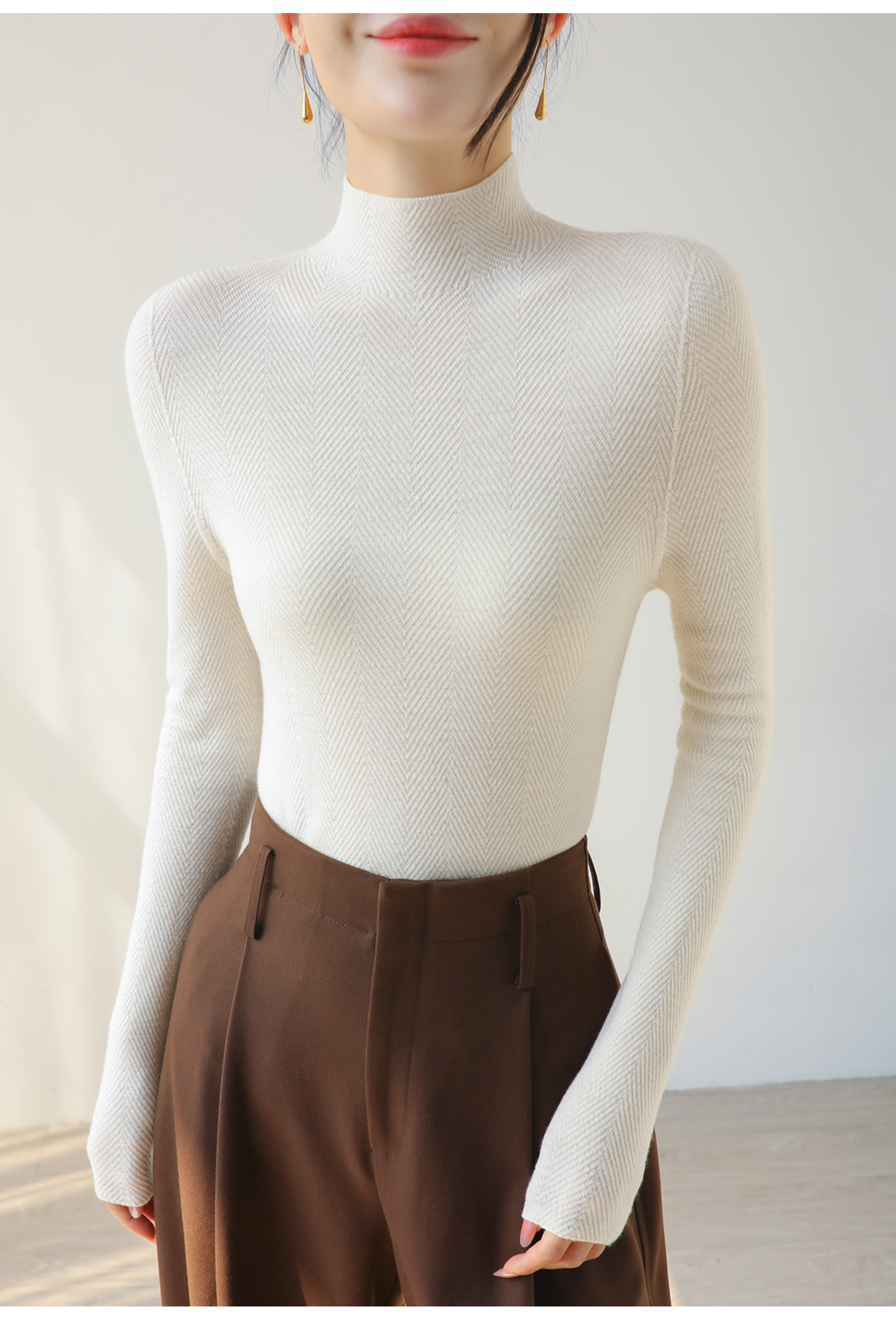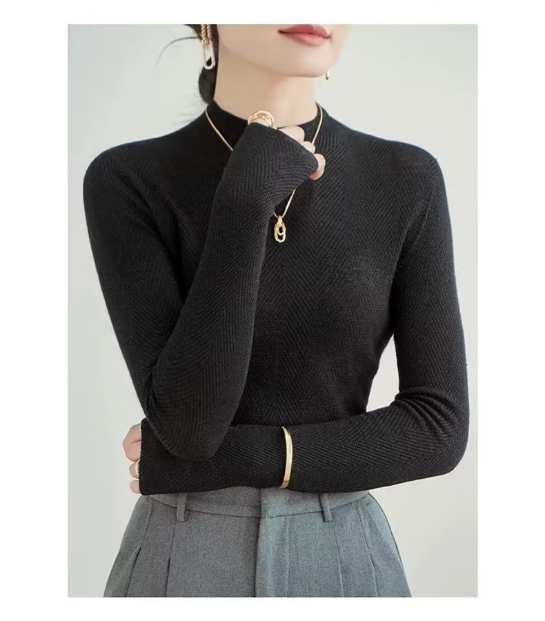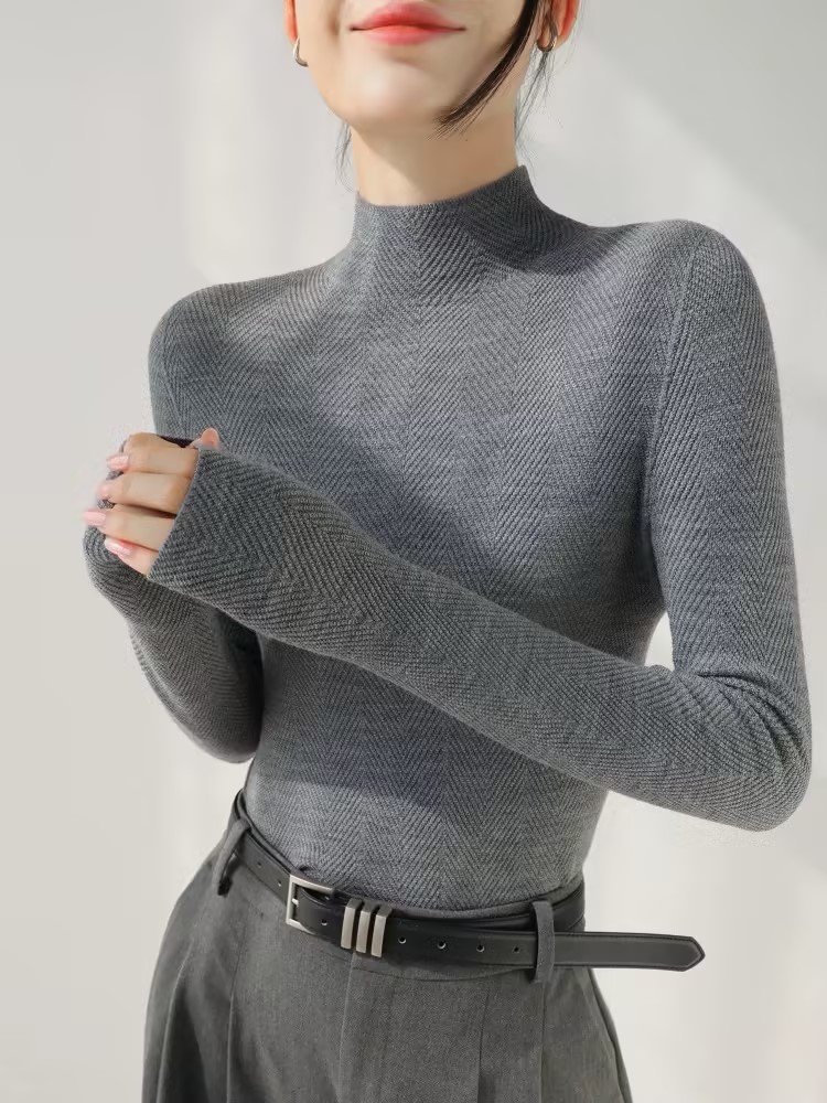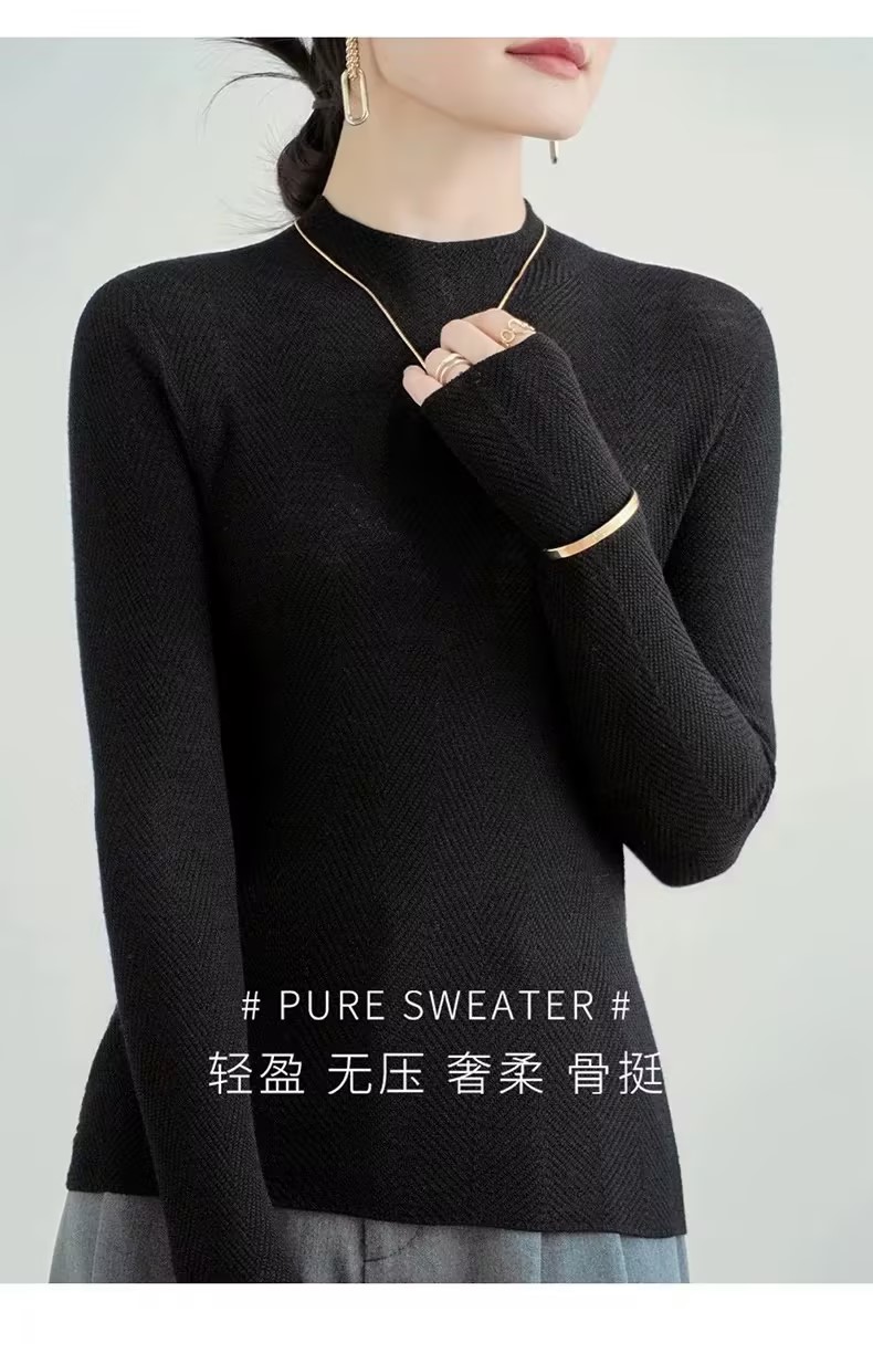 100%美利奴羊毛针织衫 轻盈无压 暖软热感 无缝一体成型 水波纹肌理 气质半高领 米思阳2025秋冬新款 舒适保暖 高弹力针织打底衫5016