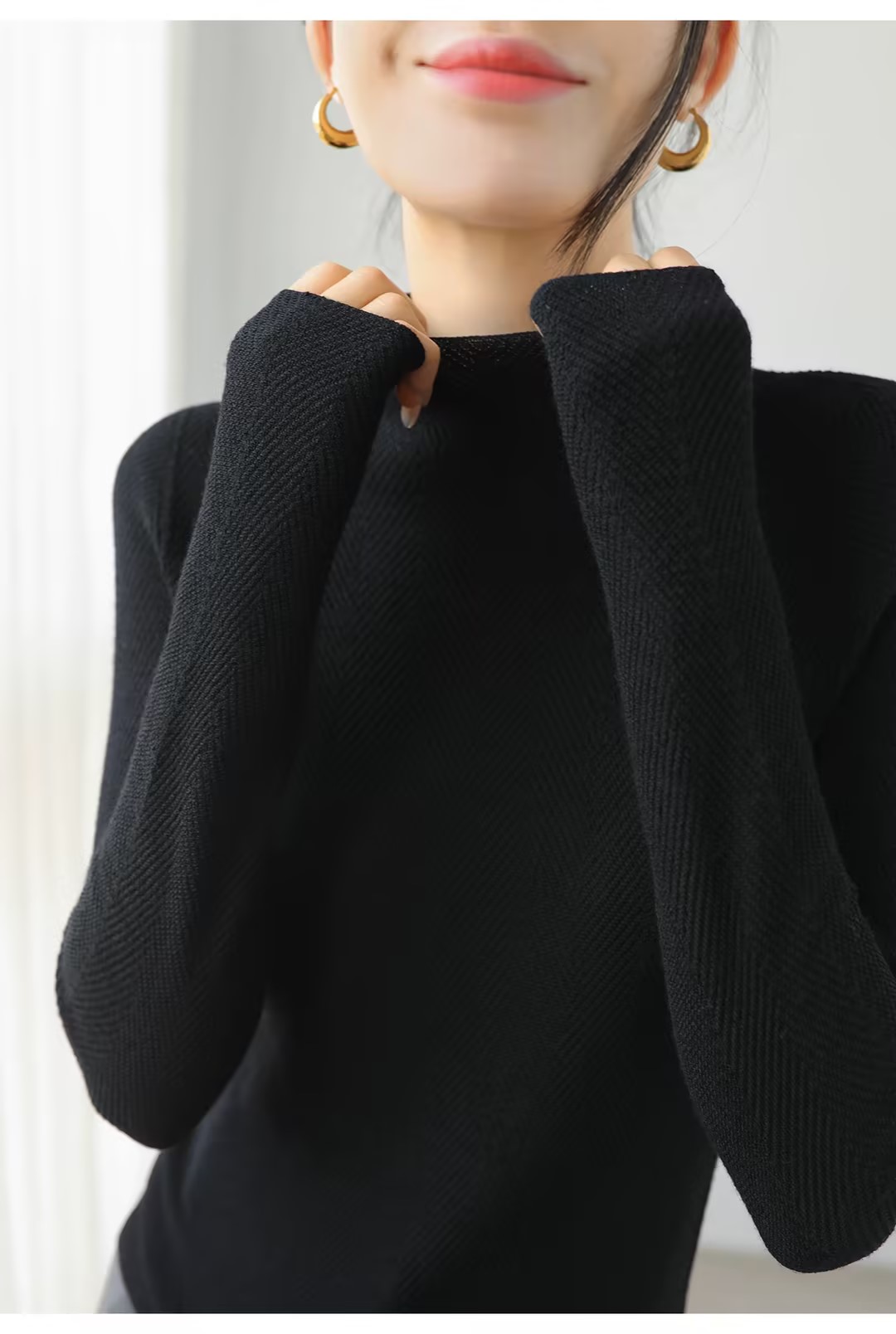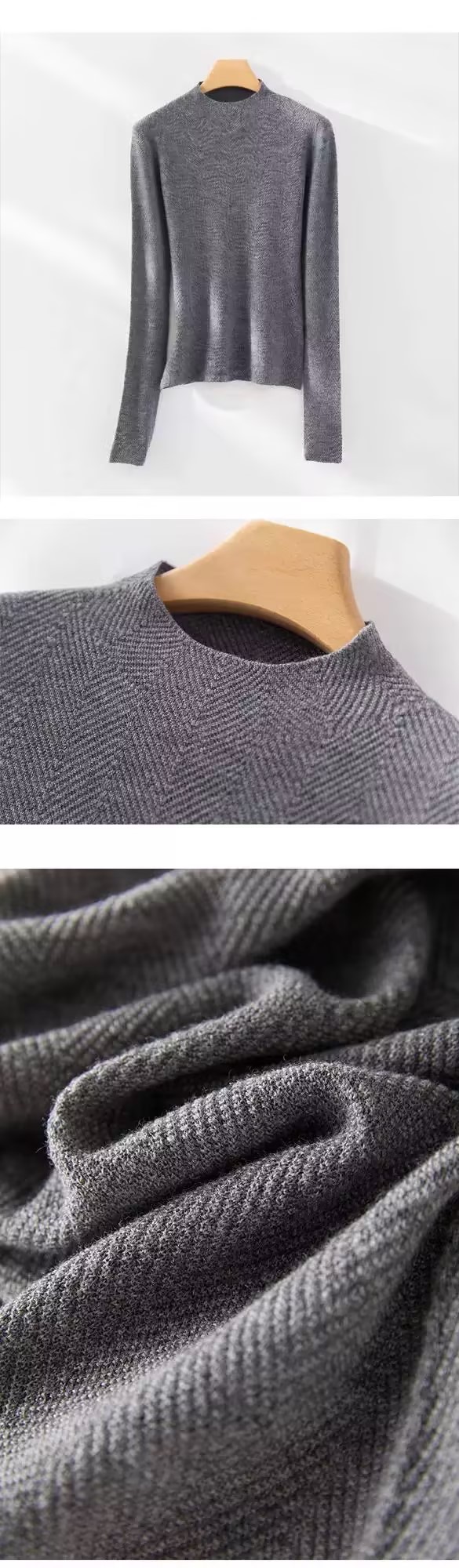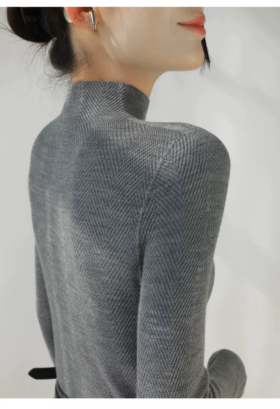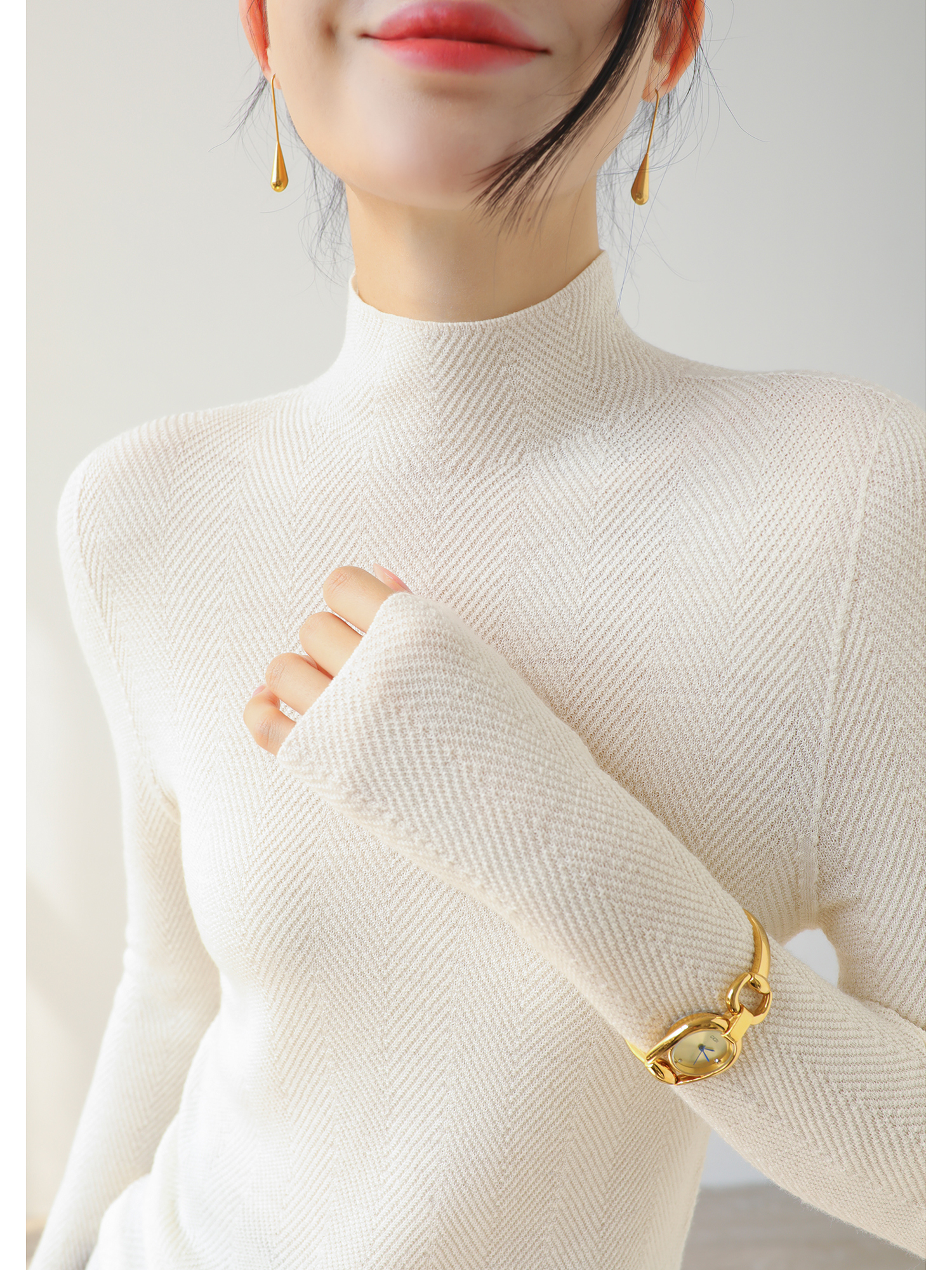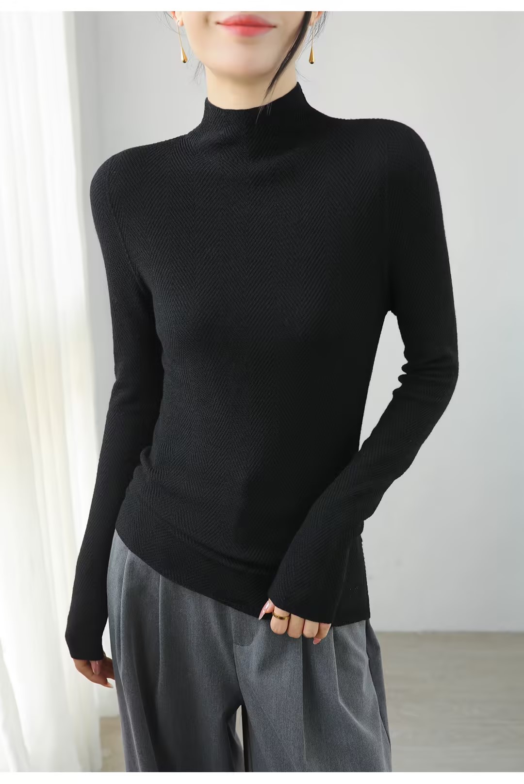 100%美利奴羊毛针织衫 轻盈无压 暖软热感 无缝一体成型 水波纹肌理 气质半高领 米思阳2025秋冬新款 舒适保暖 高弹力针织打底衫5016