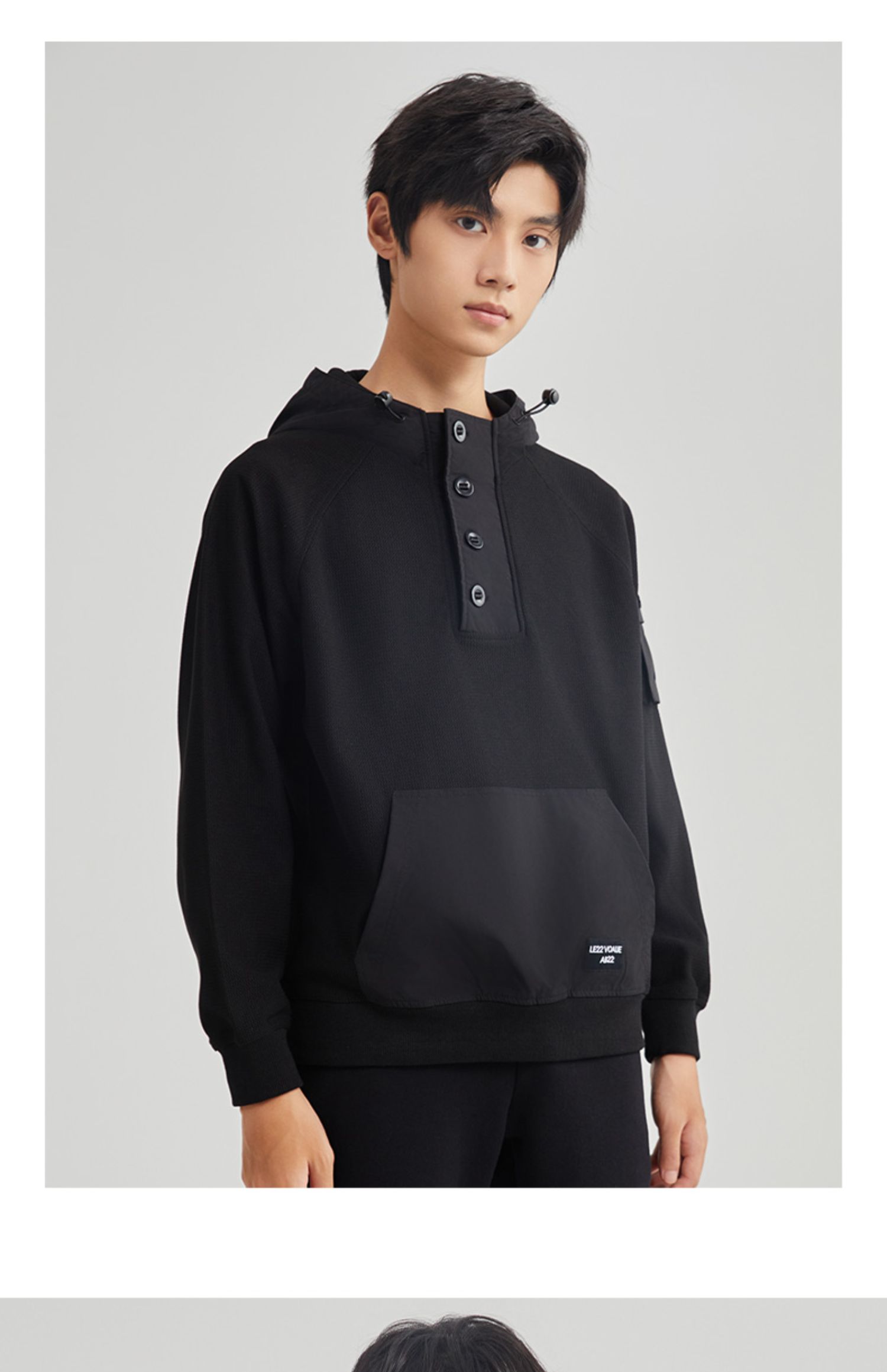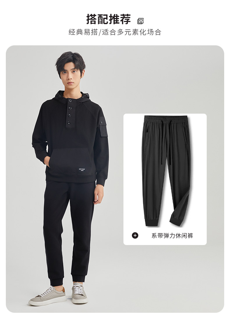 圣得西男士时尚连帽休闲卫衣2025秋季新款中青年百搭字母装饰外套