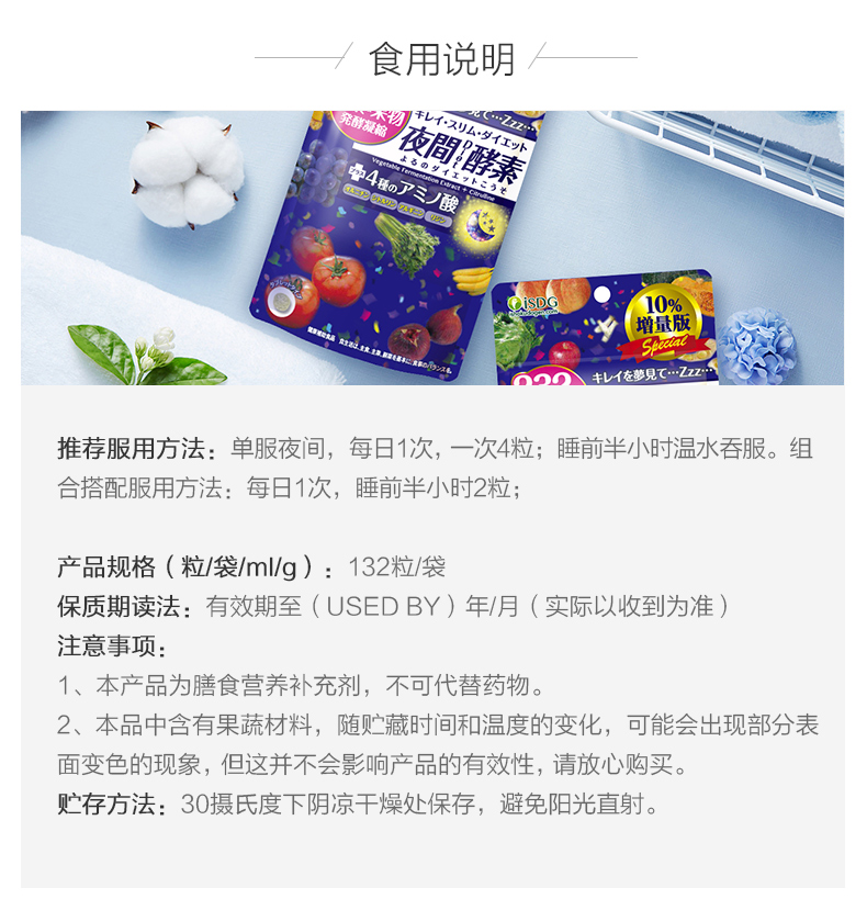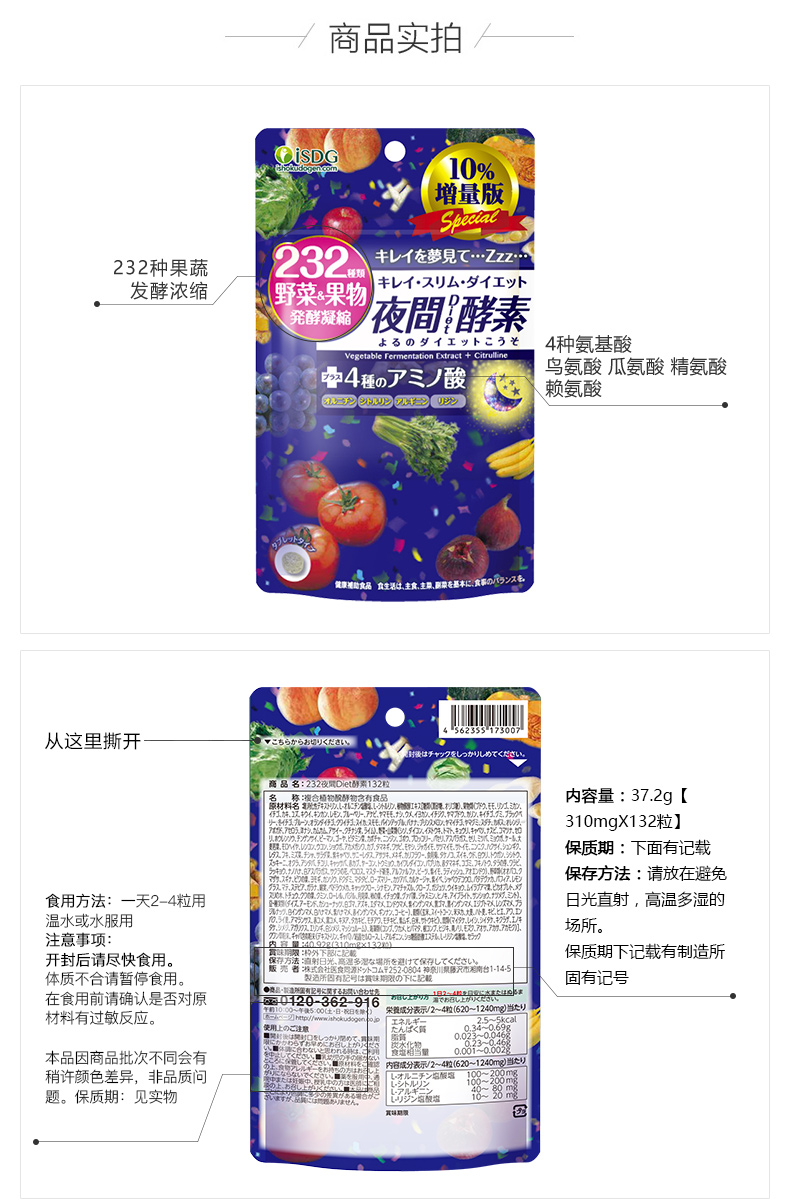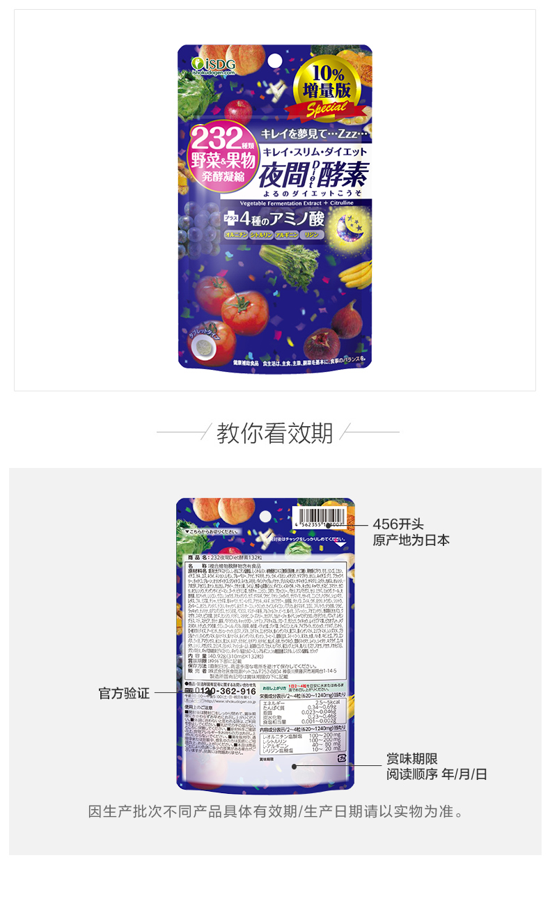 【品牌直营】ISDG日本进口232种果蔬酵素夜间酵素水果植物孝素非粉果冻132粒 2028-01-19到期