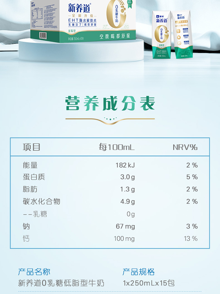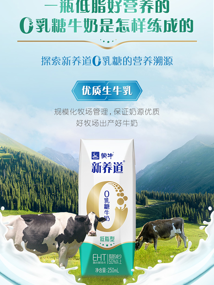 蒙牛 新养道 零乳糖低脂型牛奶(无乳糖好吸收)250ml*15 礼盒装