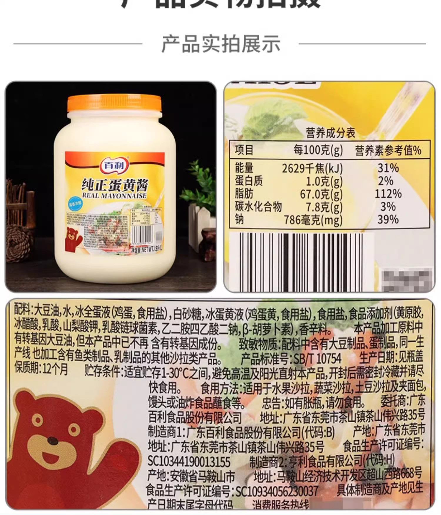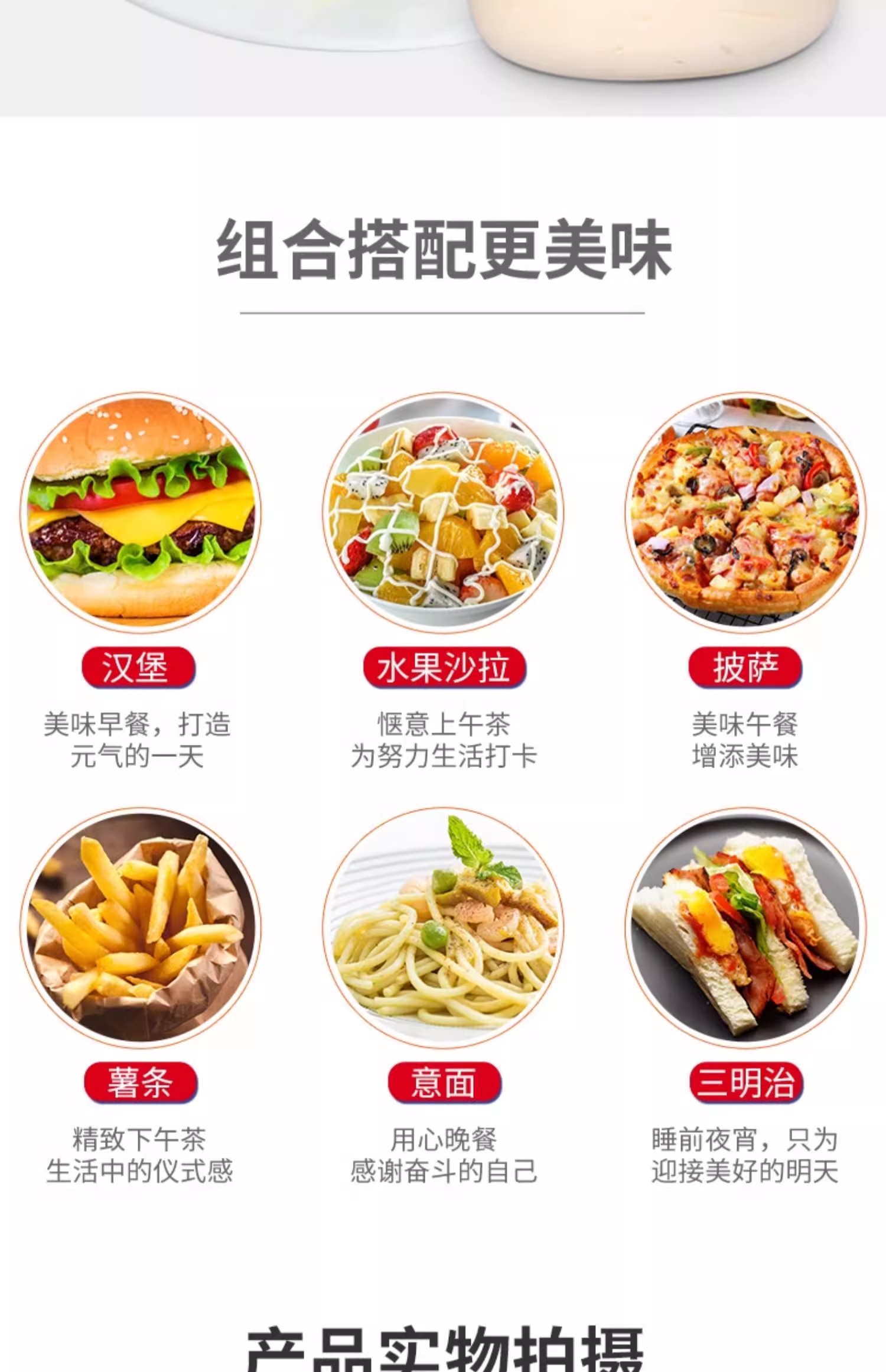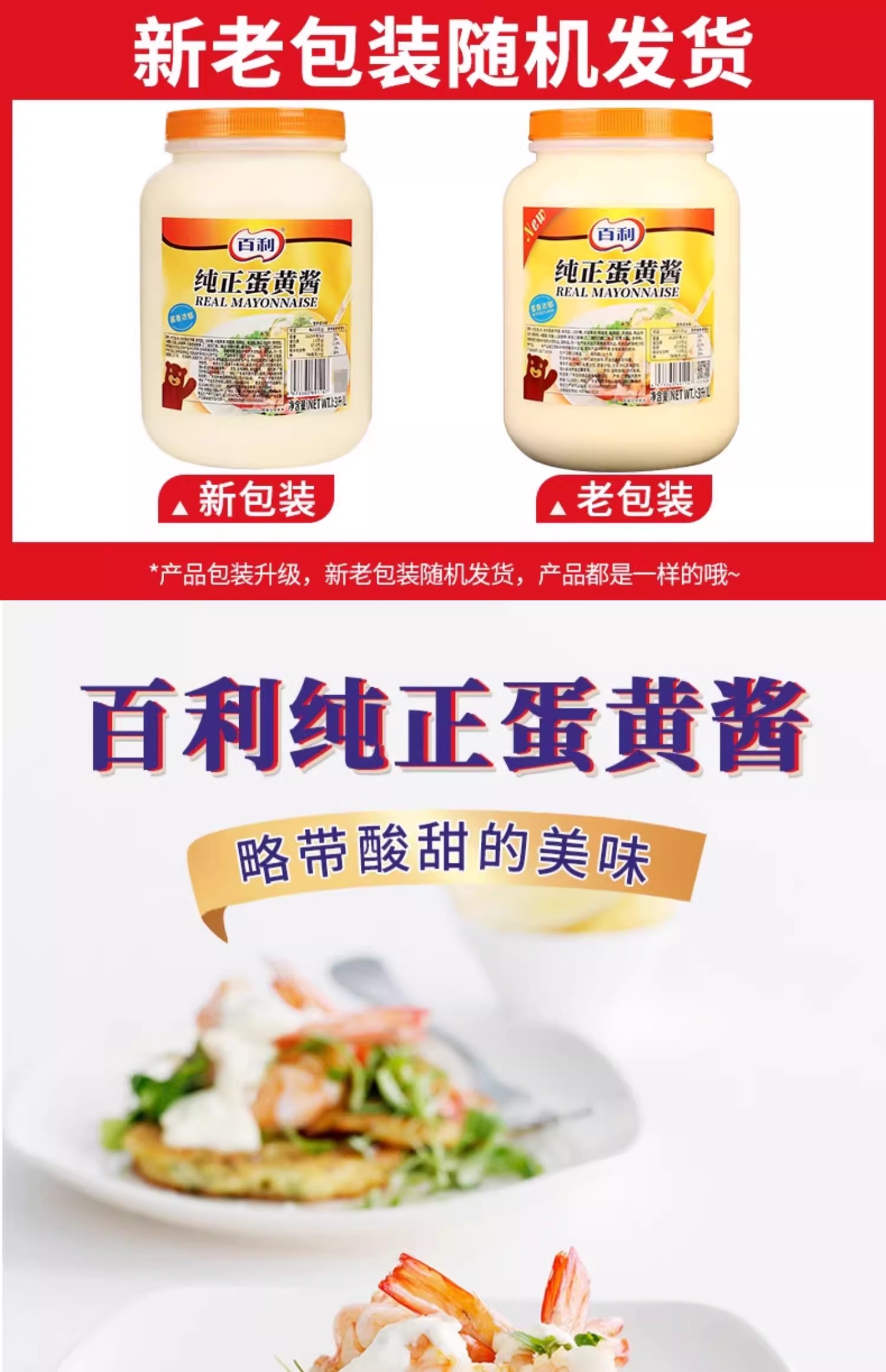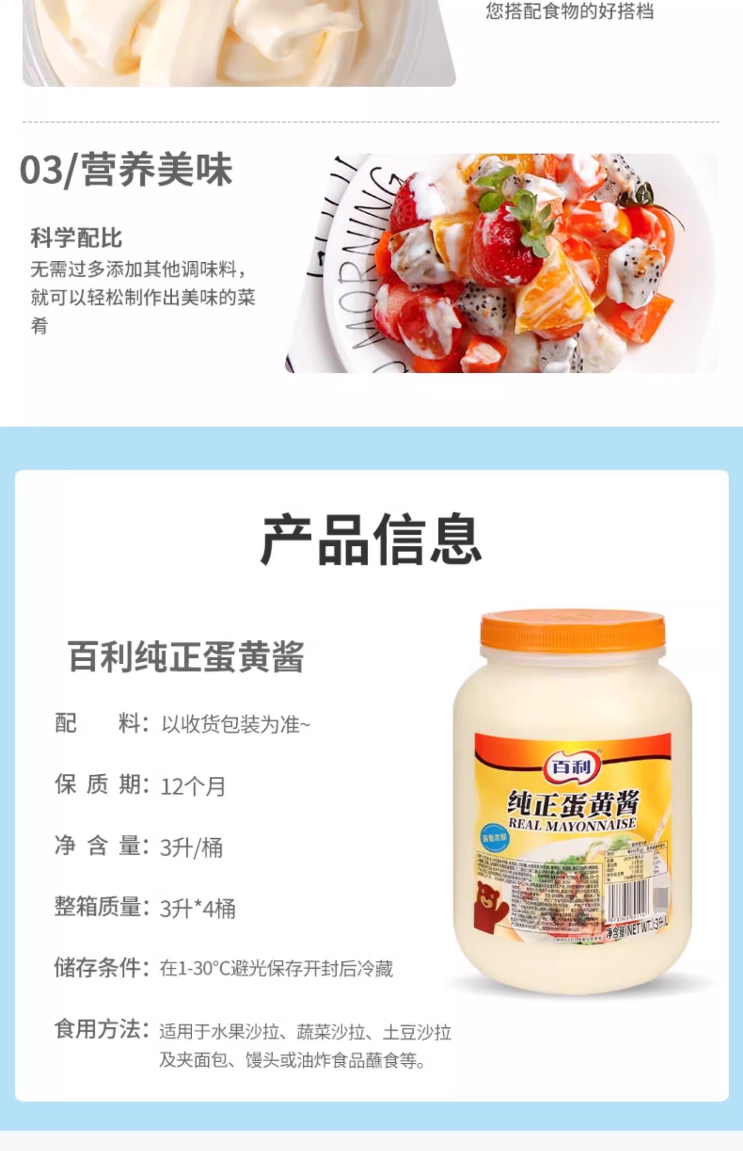 百利纯正蛋黄酱3L 蔬菜水果土豆沙拉酱汉堡三明治面包商用色拉酱