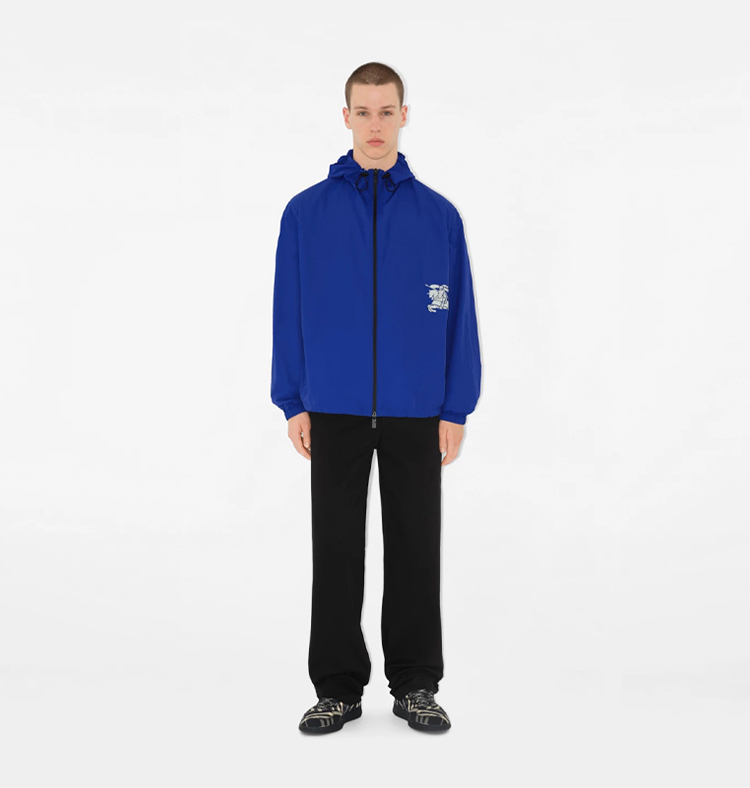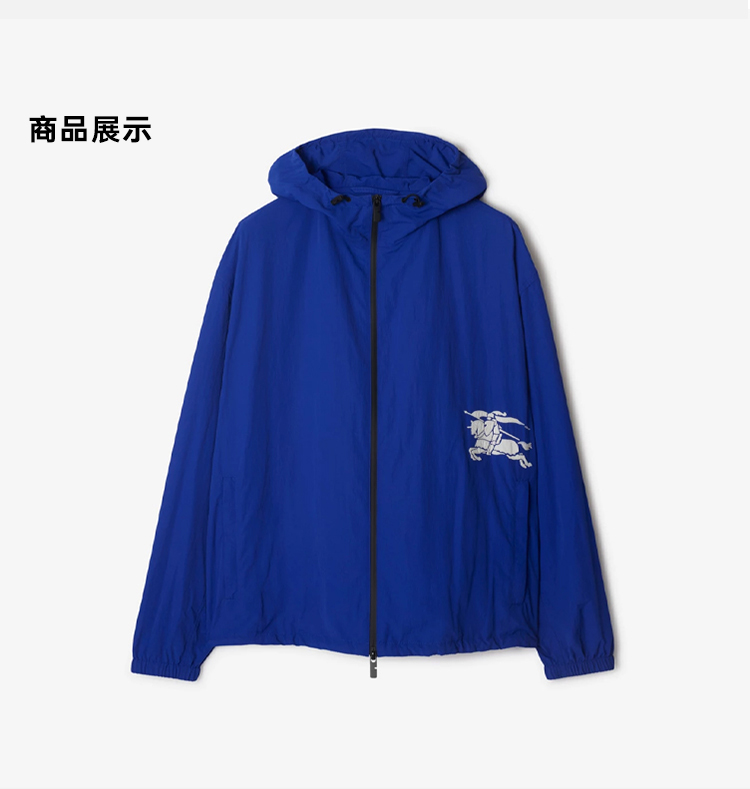 【一】BURBERRY 巴宝莉 男士马术骑士徽标印花尼龙连帽外套 蓝色 8104612 B7323