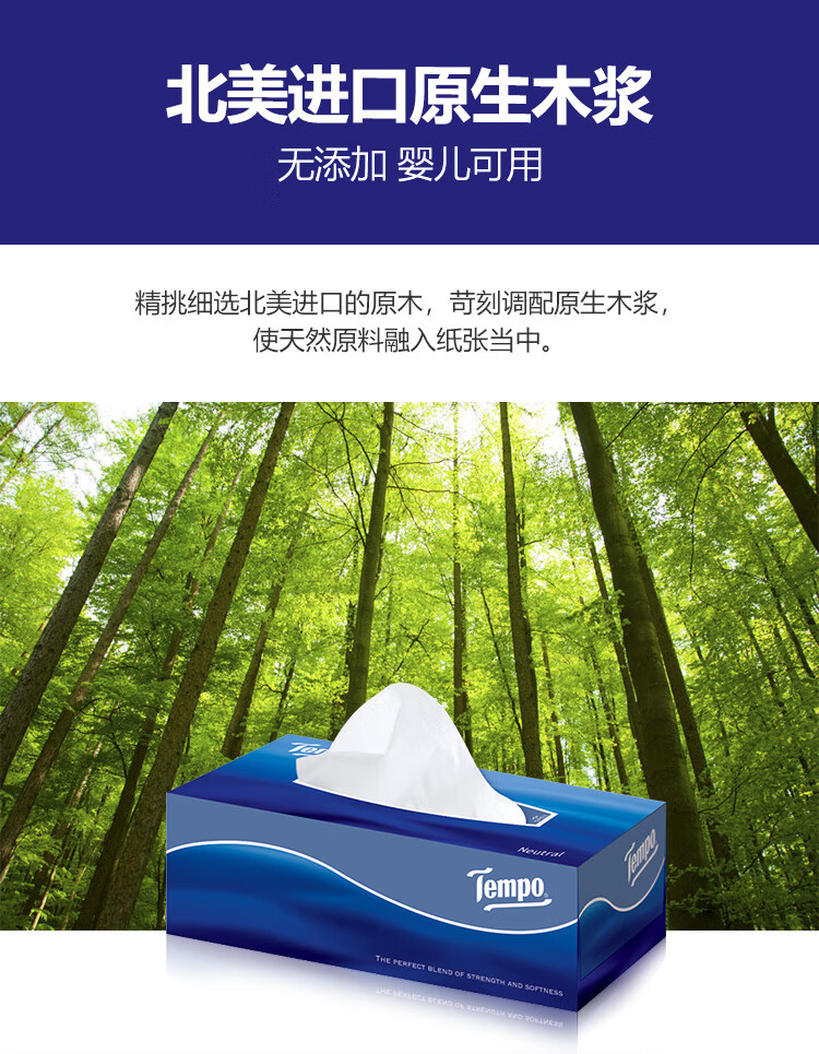 得宝(Tempo)高端商务抽纸盒抽3层90抽*32盒T2274(整箱)