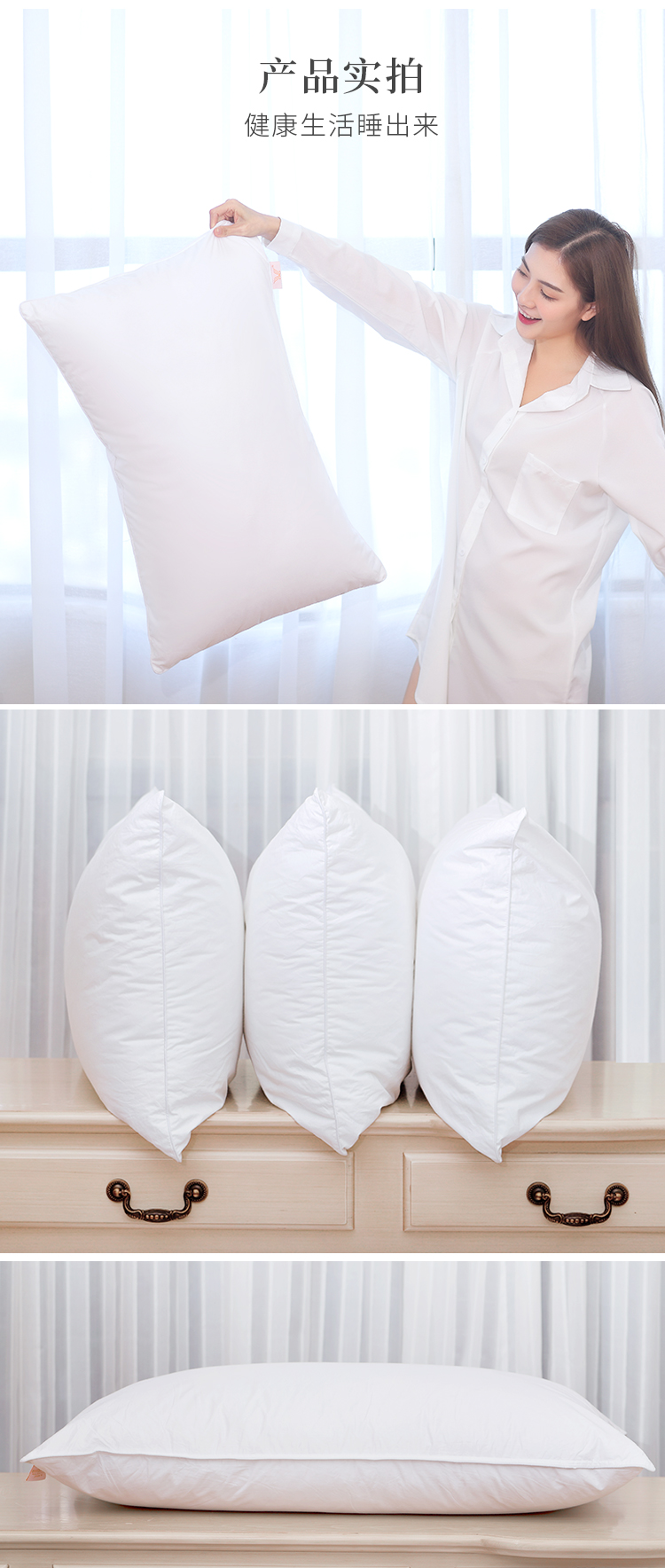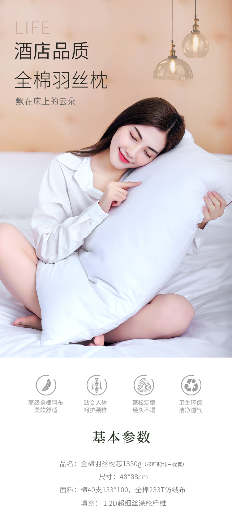 【会员专享】全棉羽丝绒枕 蓬松柔软 高性价比 48*88cm (含枕套)单个装