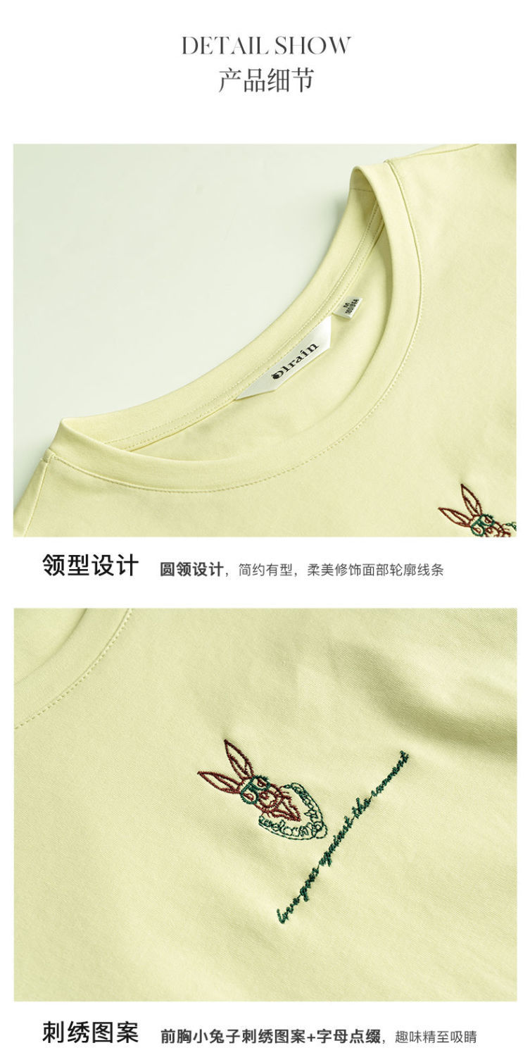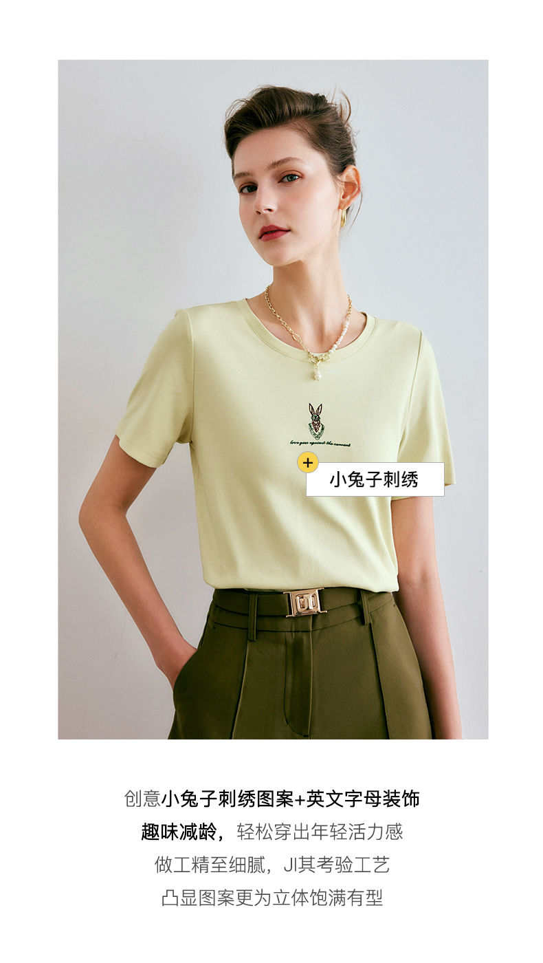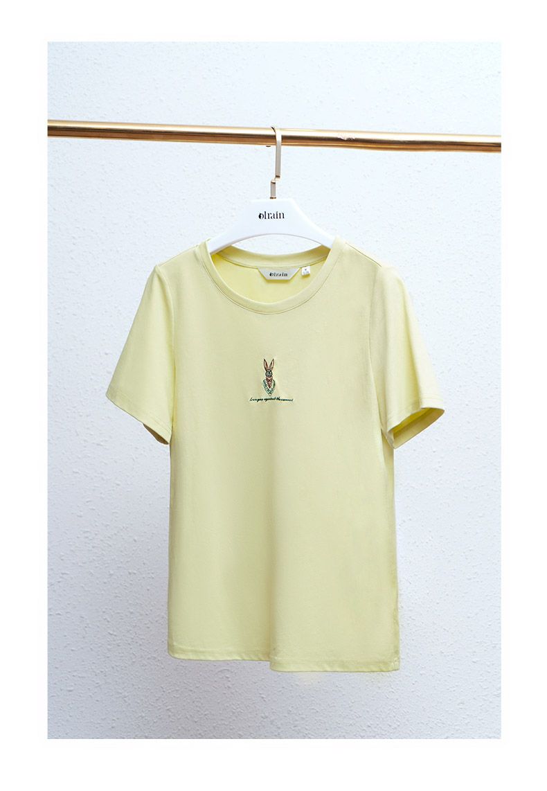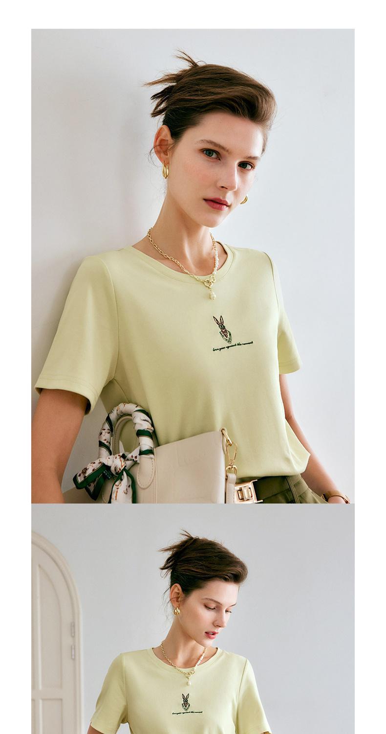 欧芮儿刺绣短袖T恤女夏季2022年新款时尚兔子冰爽双面针织上衣