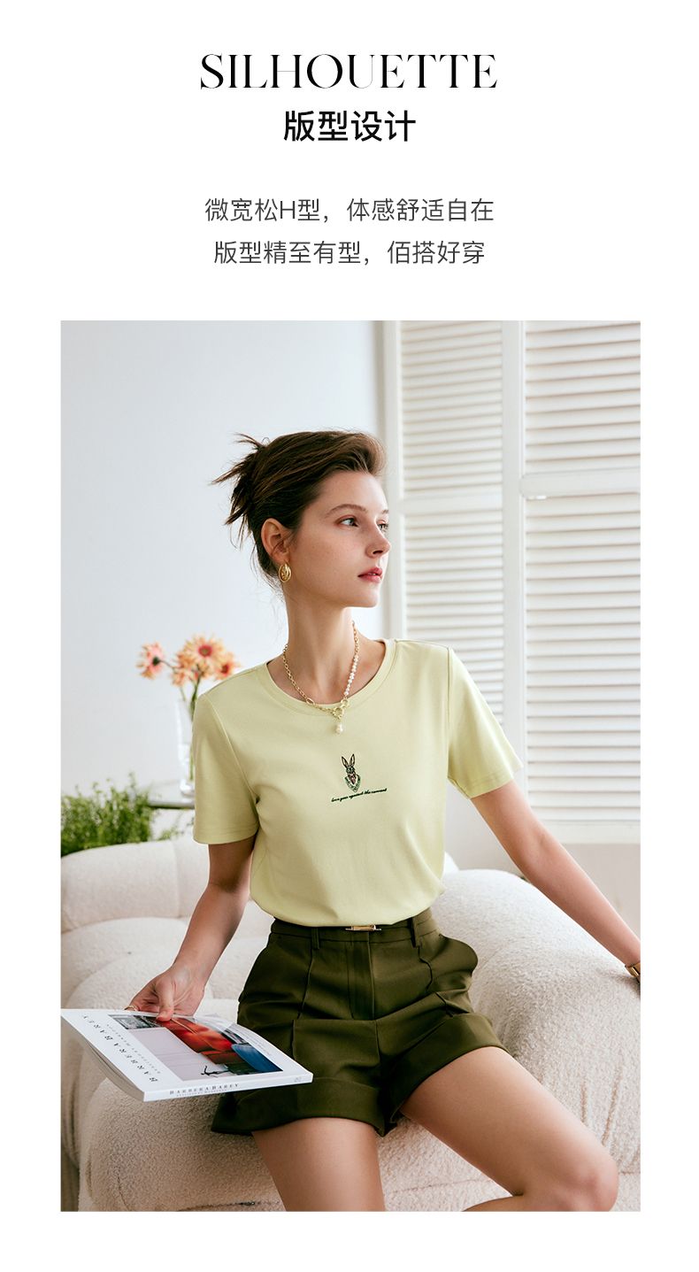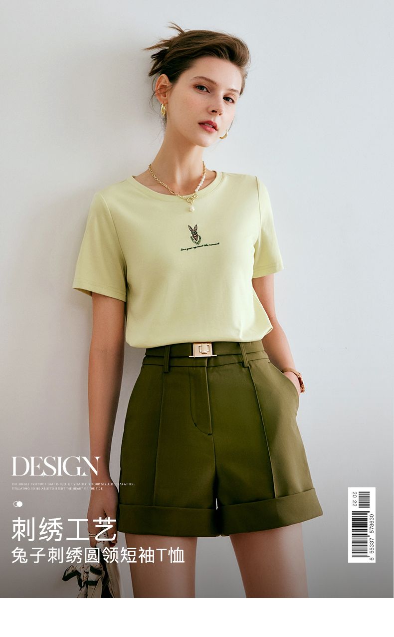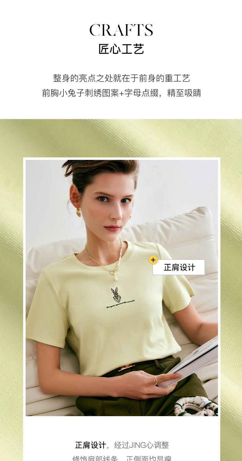 欧芮儿刺绣短袖T恤女夏季2022年新款时尚兔子冰爽双面针织上衣