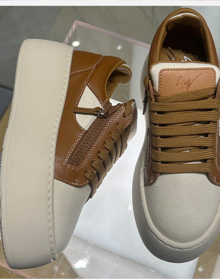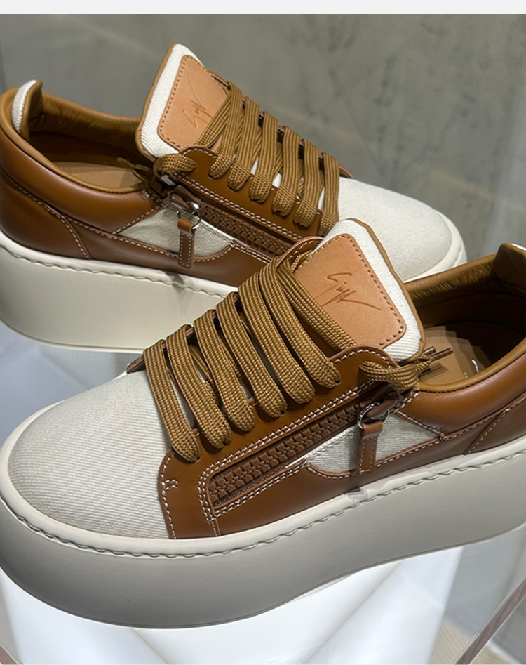 Giuseppe Zanotti 女士签名徽标皮革休闲运动鞋 棕色 RS50011002