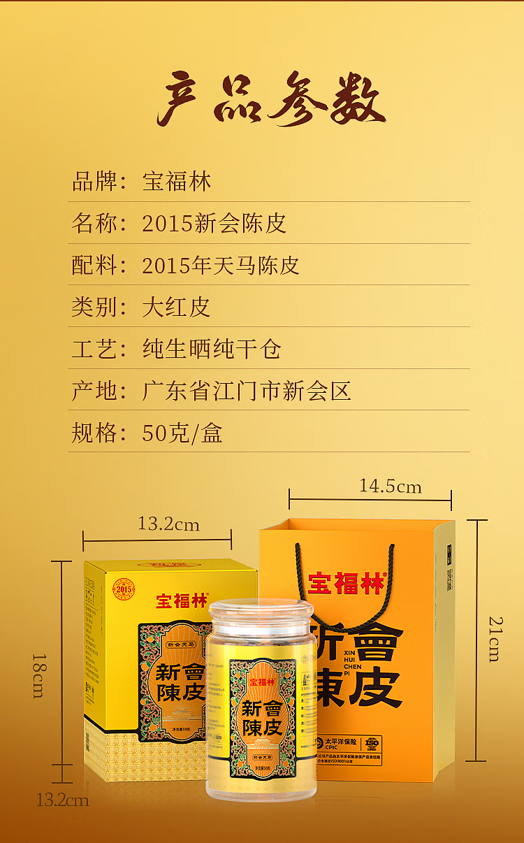 宝福林2015年新会陈皮50g/盒(新老包装随机发 送礼品袋)