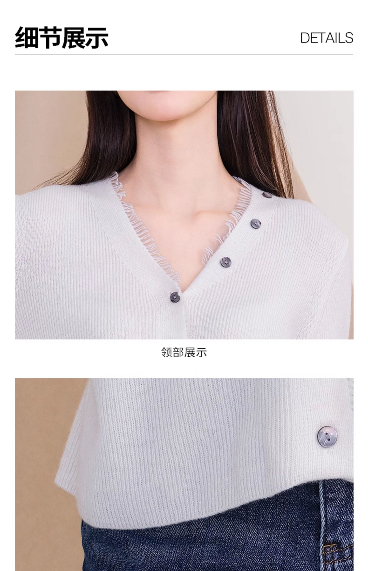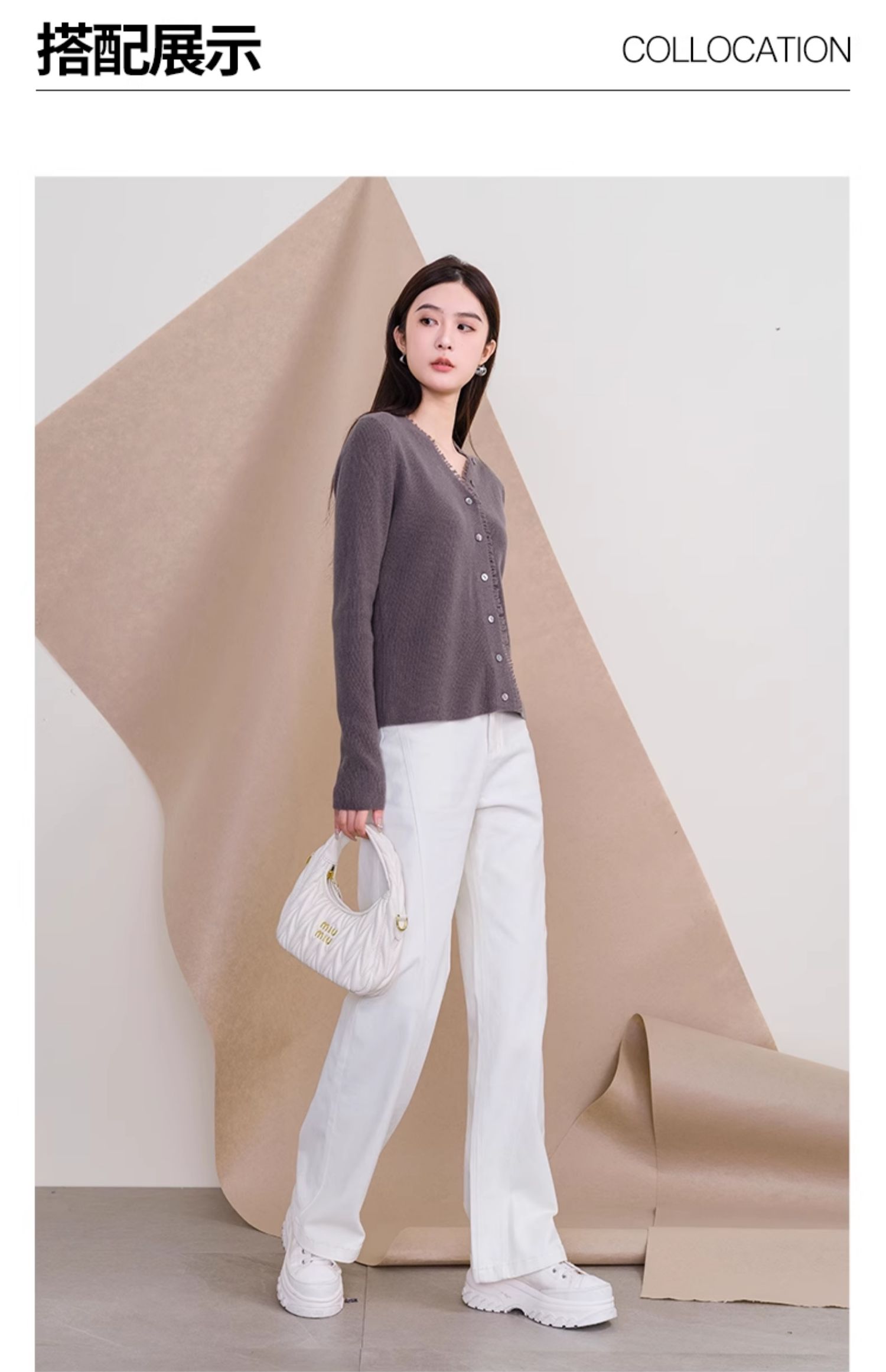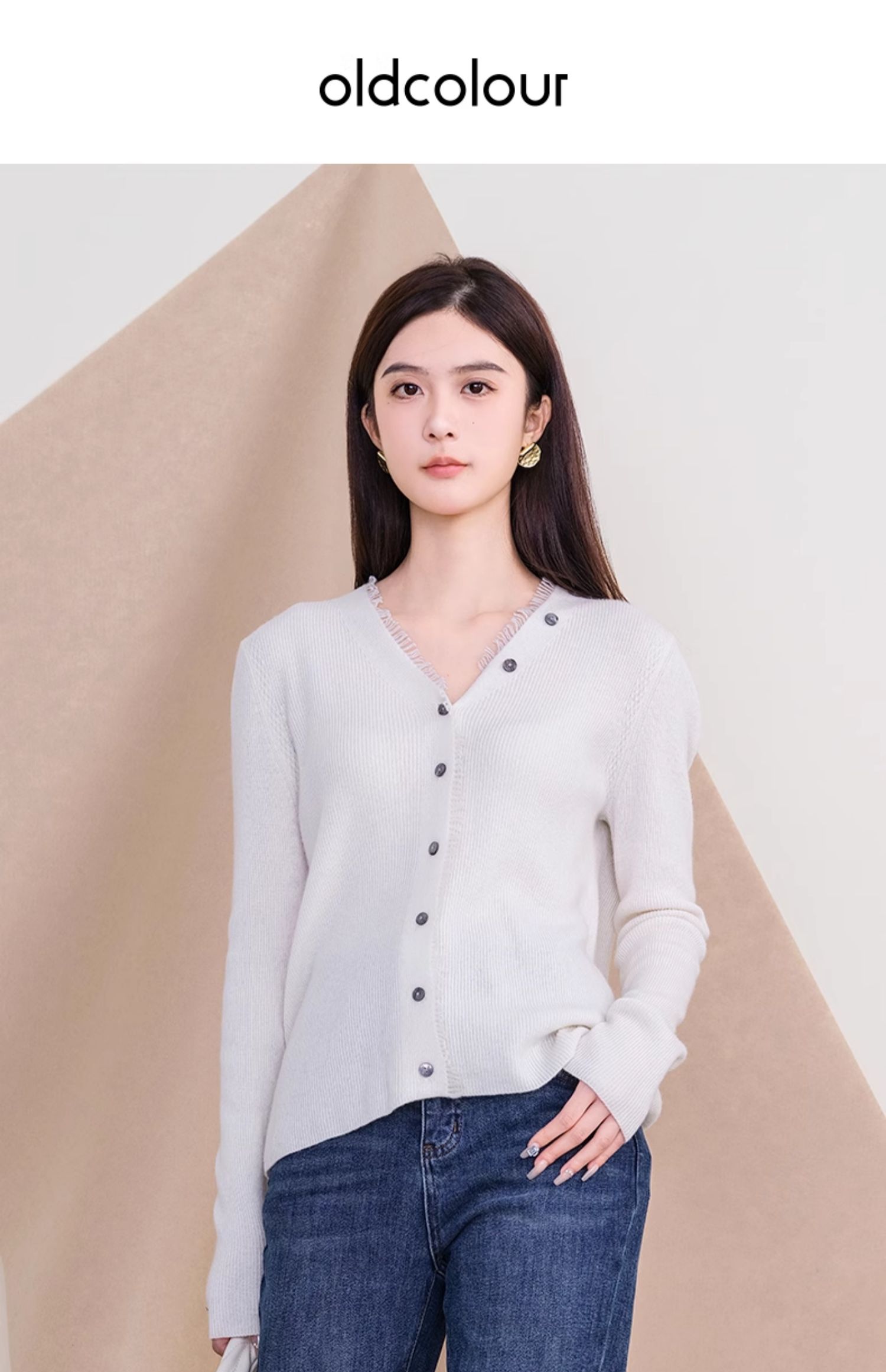oldcolour欧珂冬季新款V领长袖修身时尚毛织短外套女P430506A1